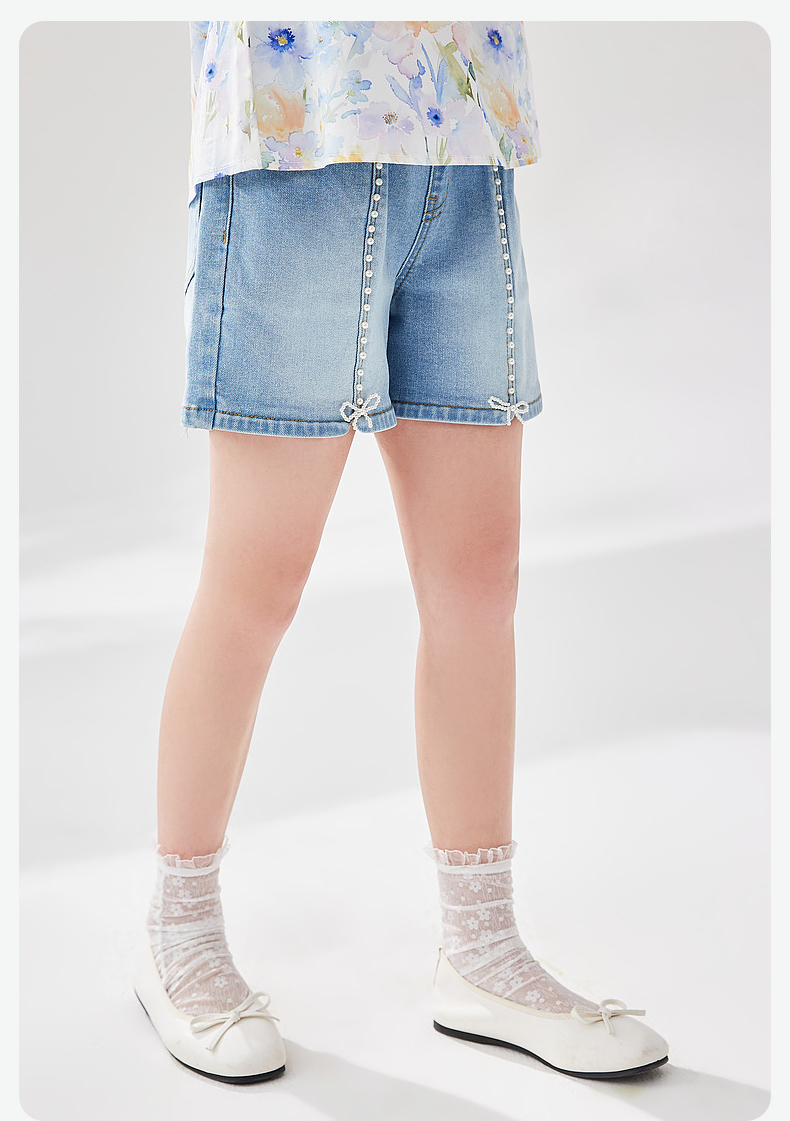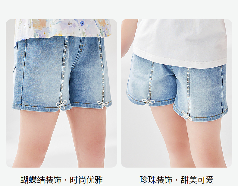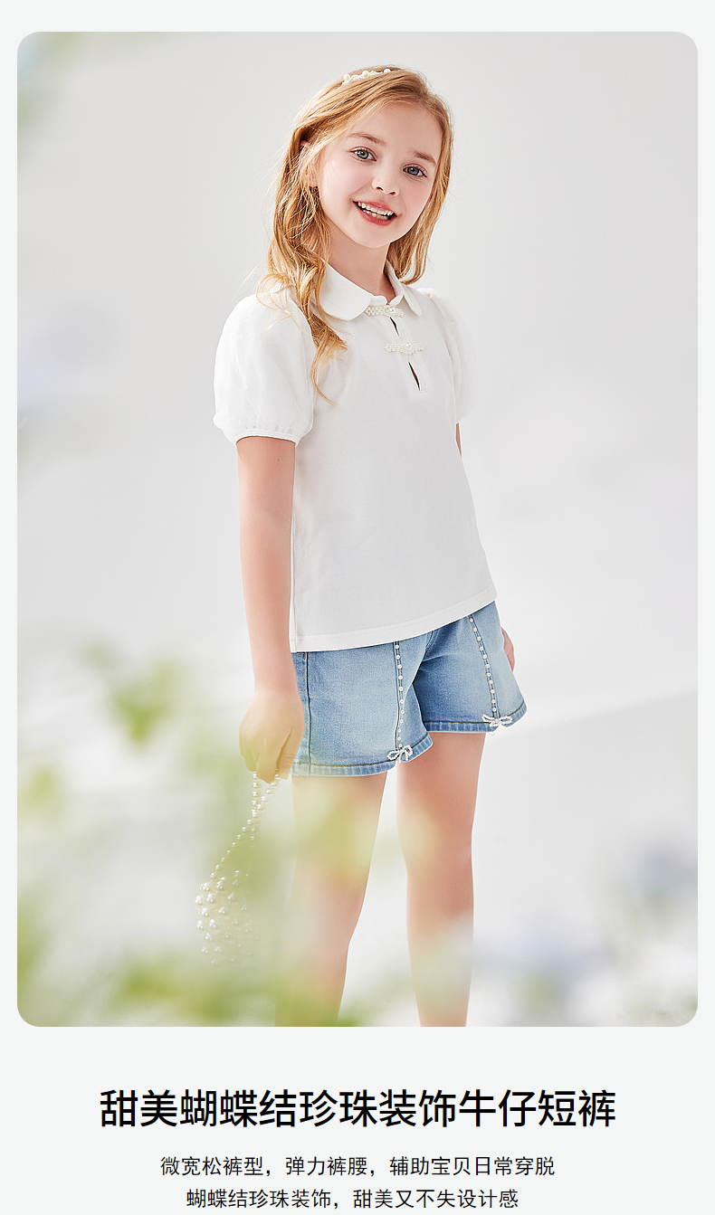 笛莎Deesha 童装女童短裤2024夏季新款甜美牛仔短裤