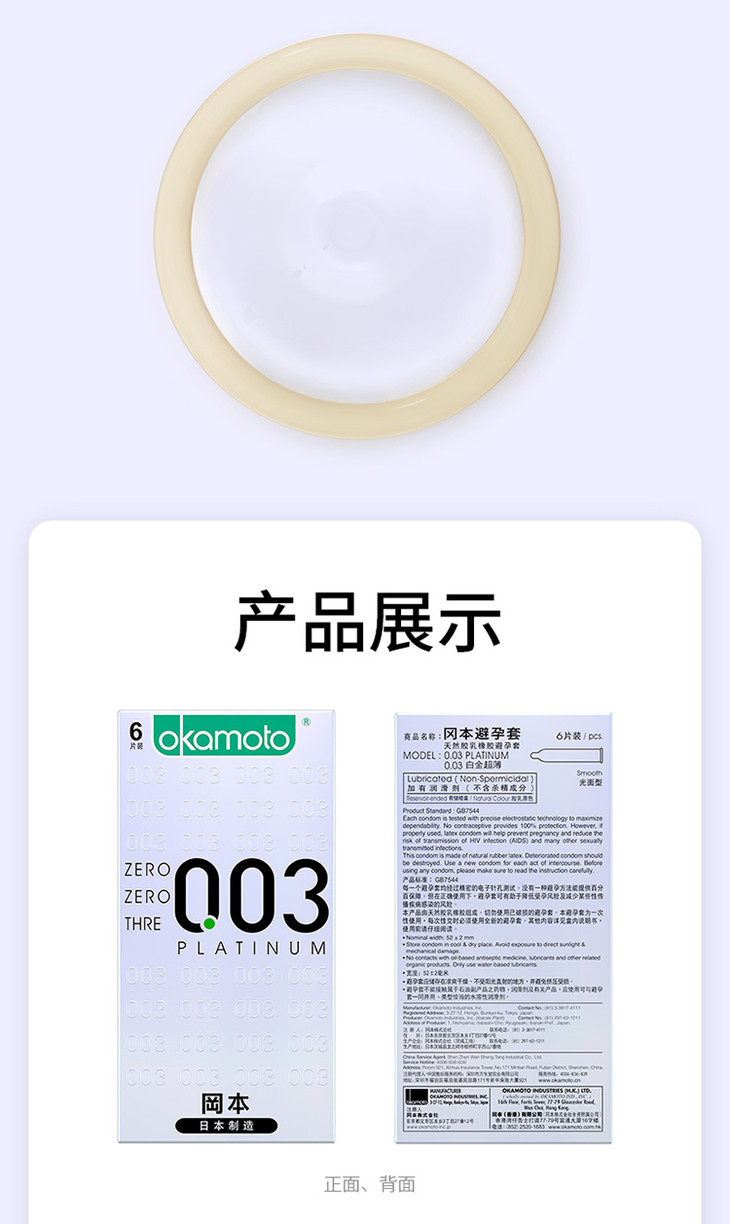 冈本003白金3只/6只/10只装 避孕套安全套