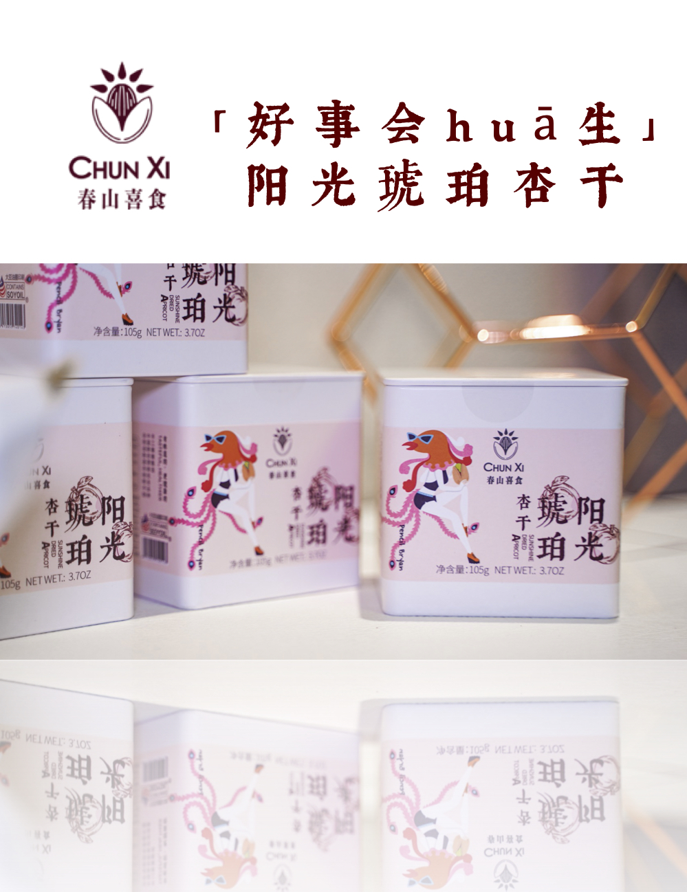 沈爷的宝贝 春山喜食阳光琥珀杏干酸甜可口 无核杏肉杏脯果脯 水果干零食 独立包装100克/袋 *3袋 105g/罐*2罐 包邮
