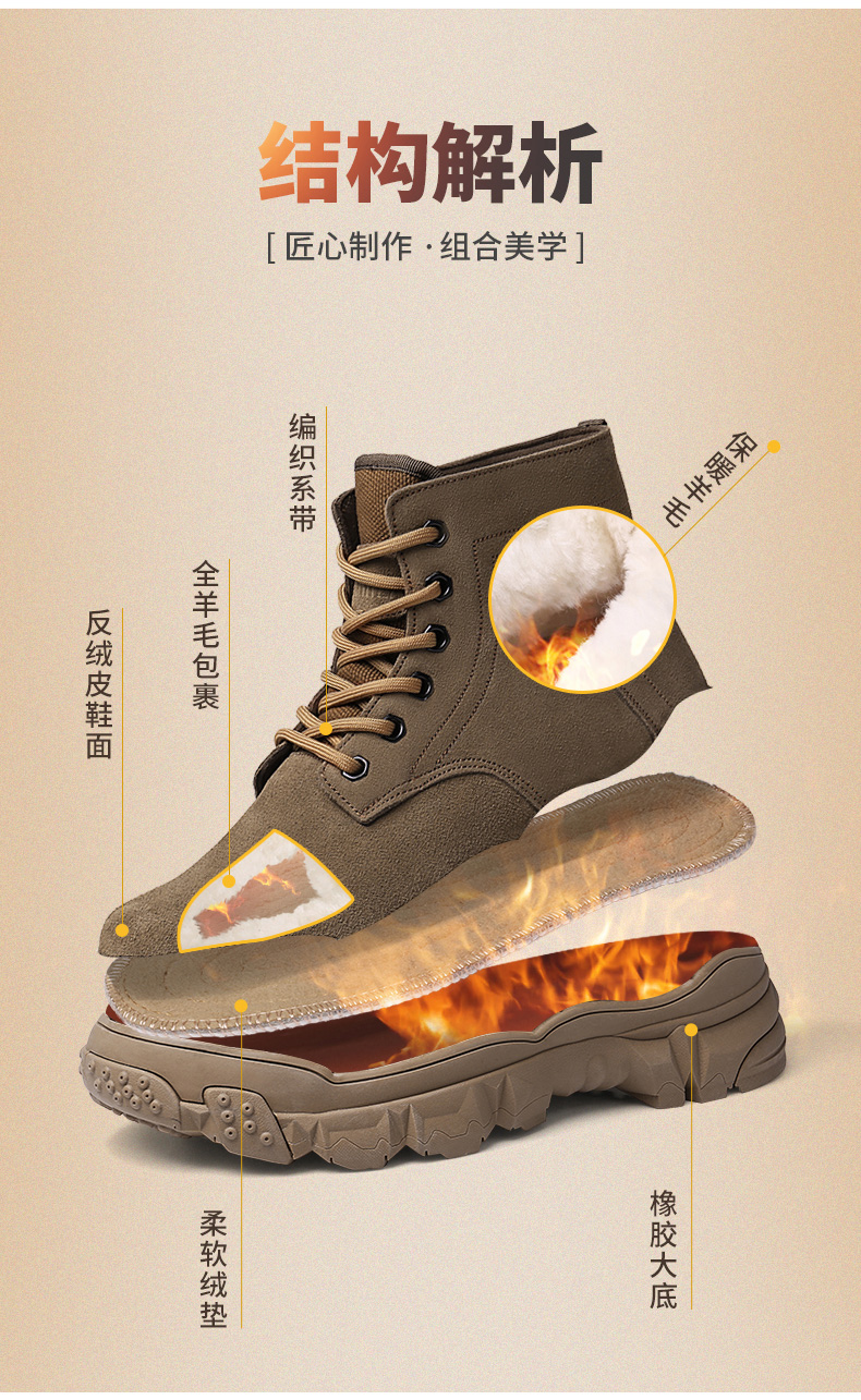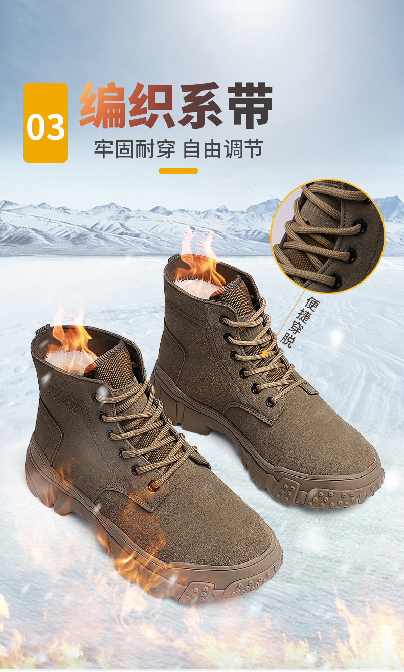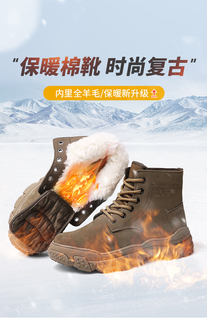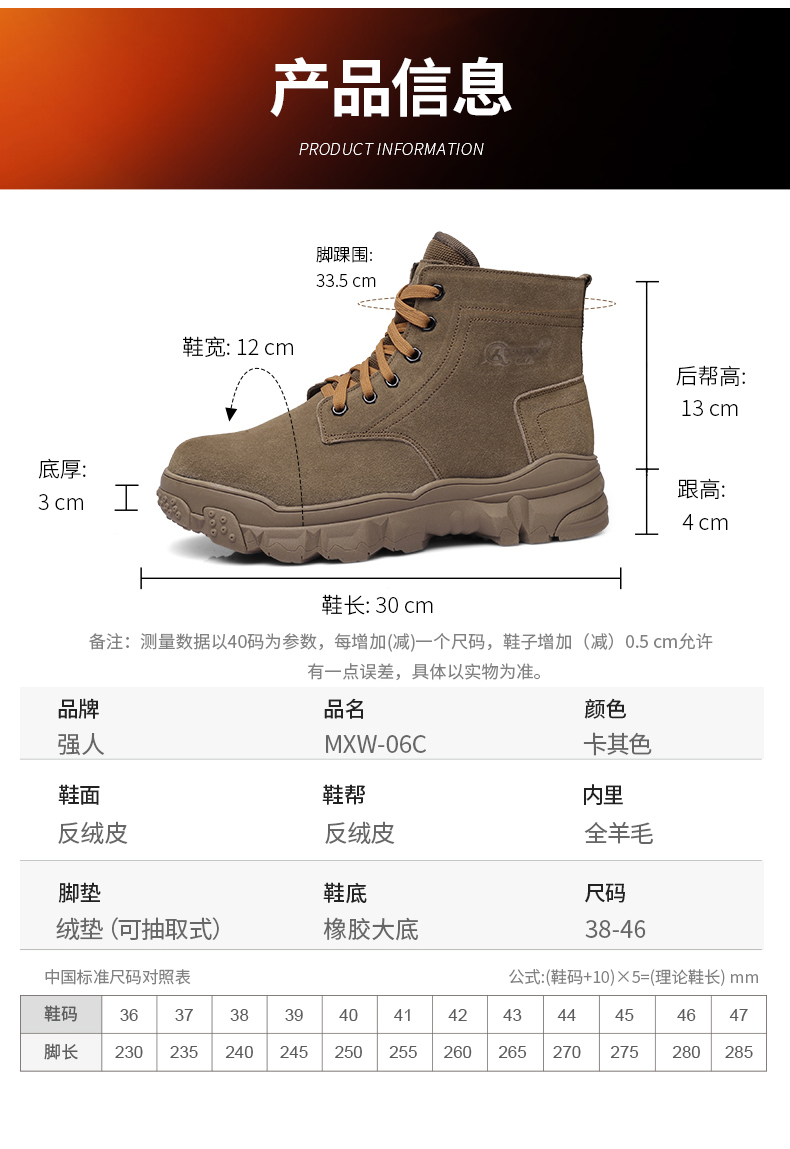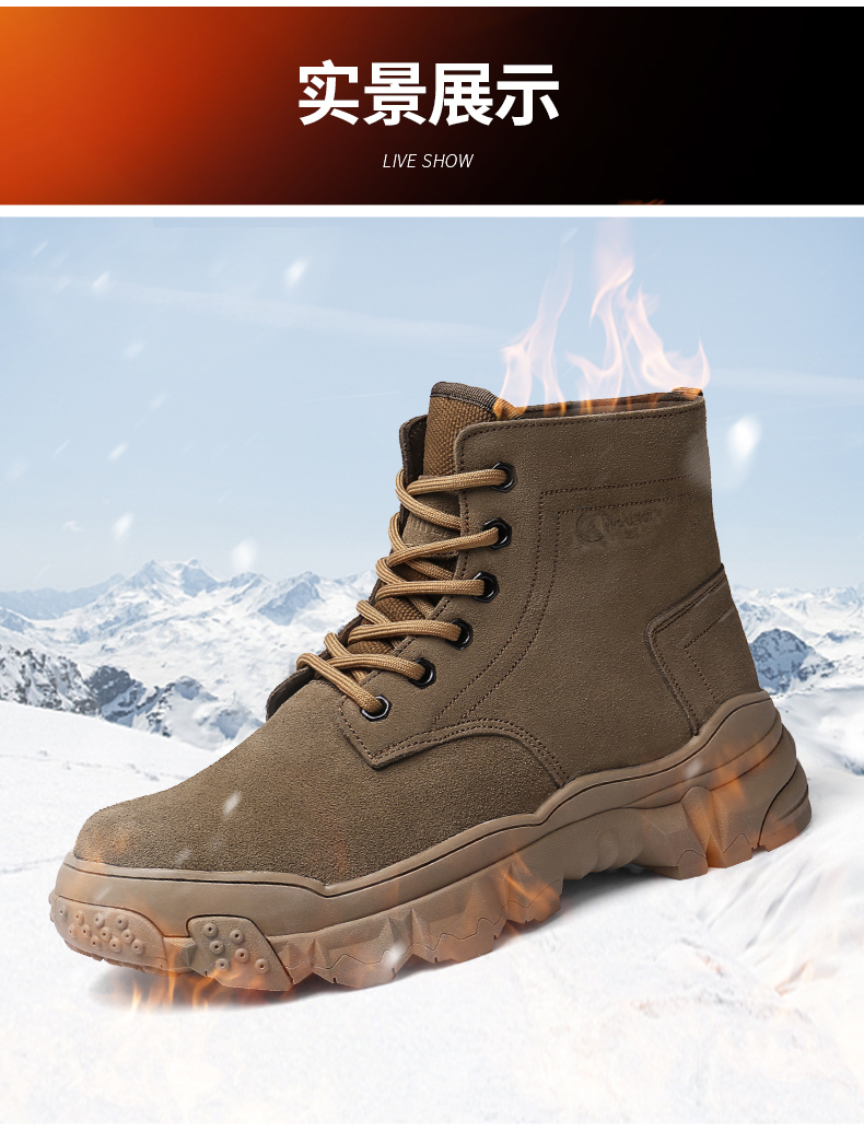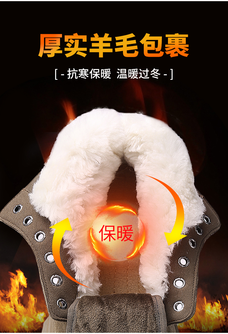 强人3515男靴冬季保暖羊毛靴户外短靴工装靴反绒高帮棉鞋加绒加厚