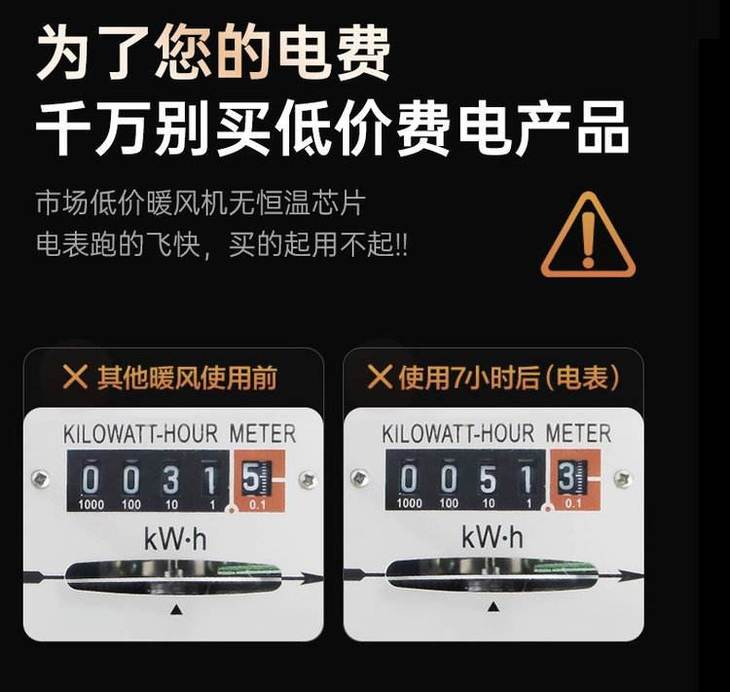 还有很多低价暖风机无恒温芯片 使用后电表跑得飞快!比开空调还要费电! 很多人直呼:买得起用不起❗