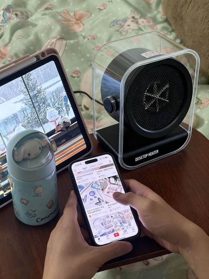 ✅一键开启,两个档位,温暖随心 ✅大广角散热,大面积供暖,可上下调节 ✅高质量发热电热丝供暖,3S升温35°C ✅智能静音降噪,夜间不扰眠 ✅金属网板,阻燃内胆+过热保护,安全有保障 ✅对流直线风道设计,速暖不干燥 ✅小巧精致,做工精细,满满设计感 可以摆在办公桌上,还可以放在地面暖脚 小小的一个,也不会很占地方 冬日的寒冷都被驱散,让你安心工作/娱乐~
