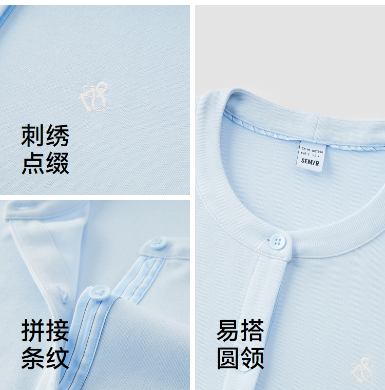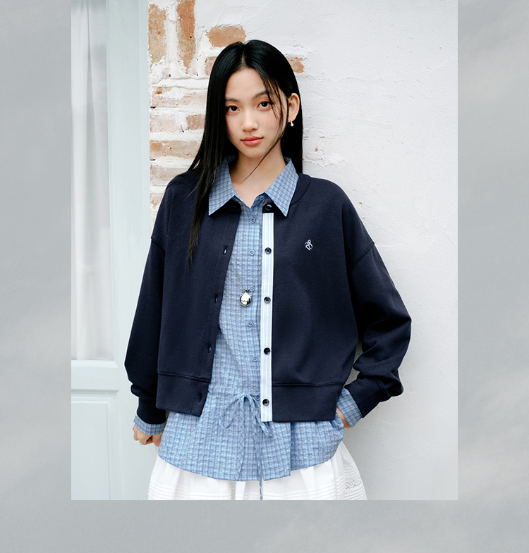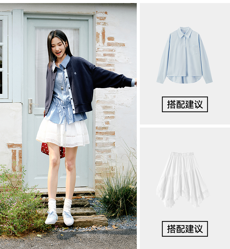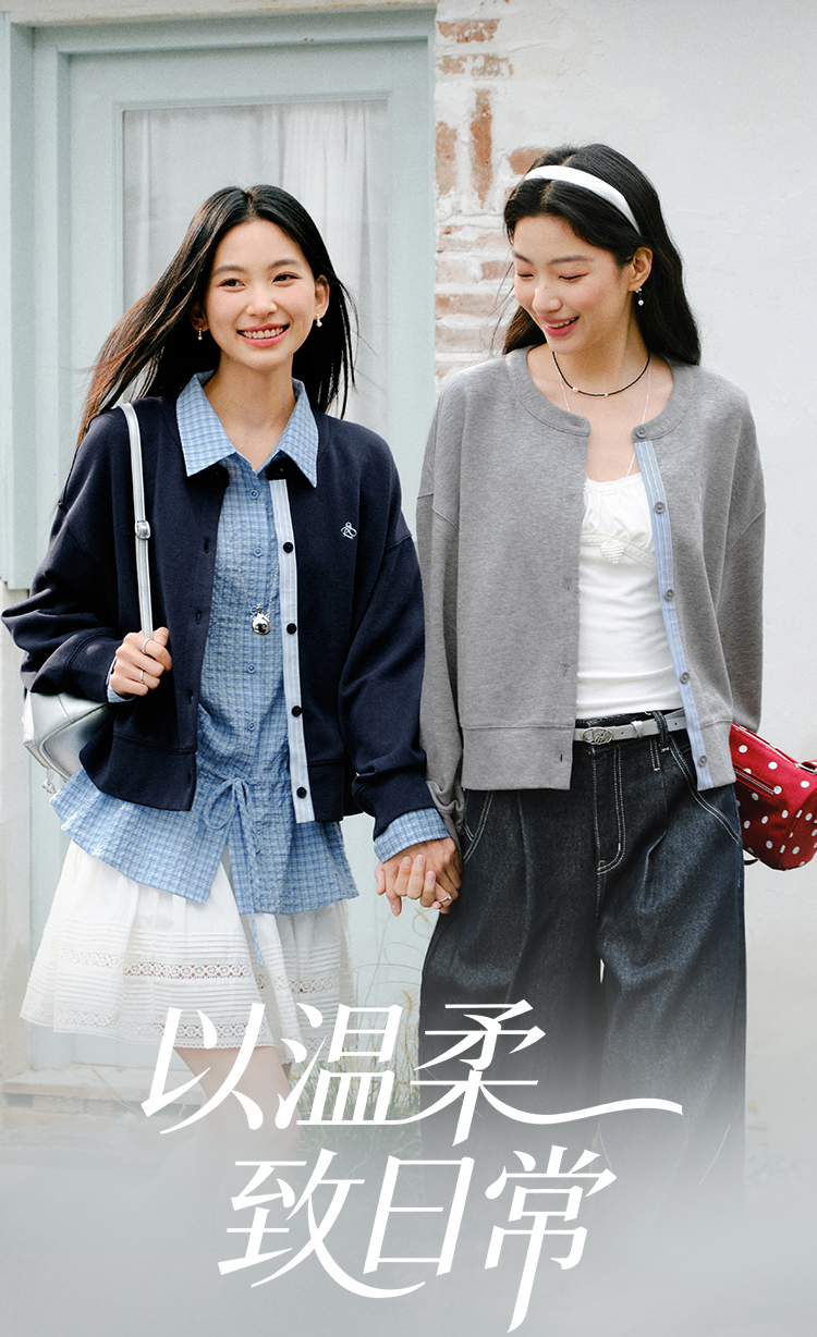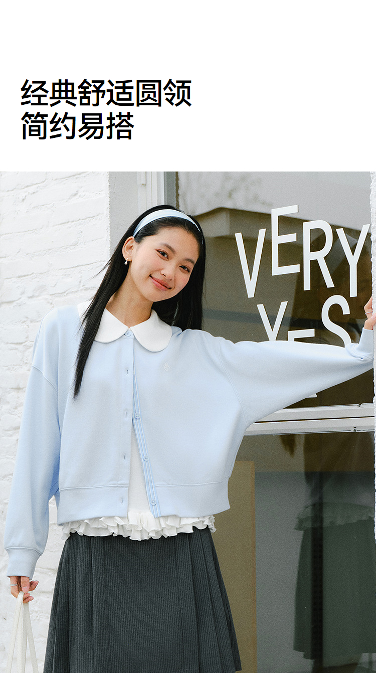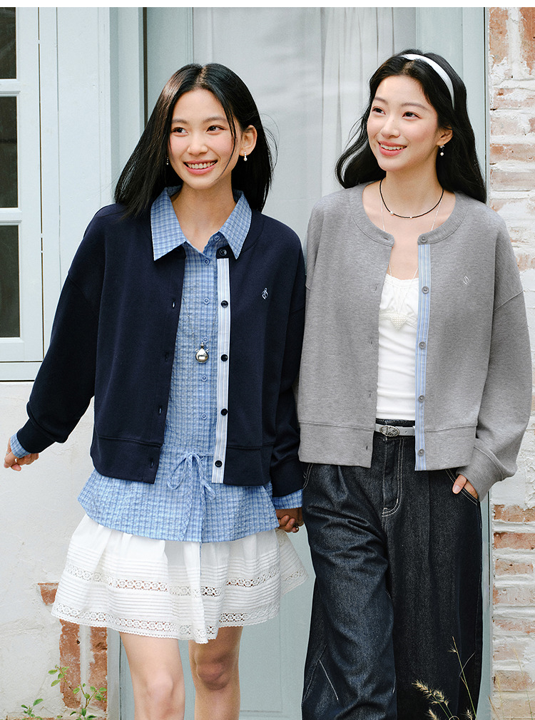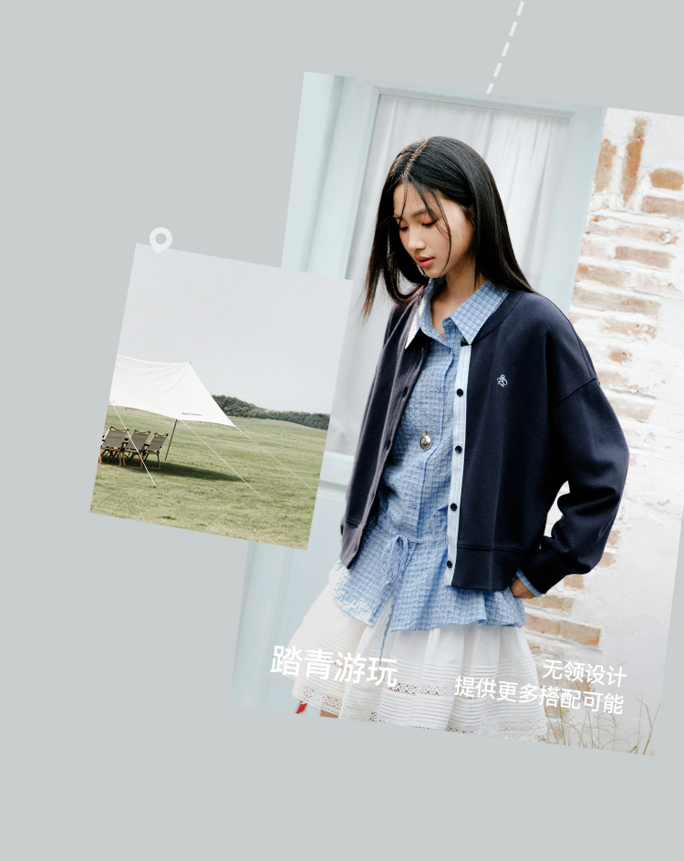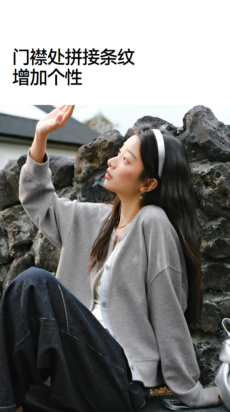 森马外套女春短款圆领拼接条纹宽松落肩刺绣内搭2026新款叠穿夹克