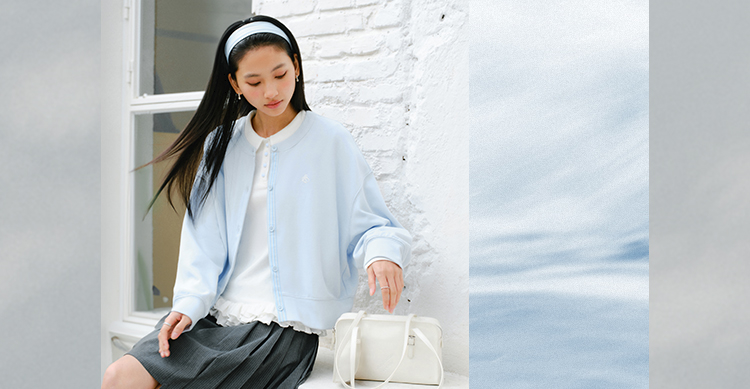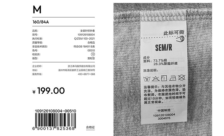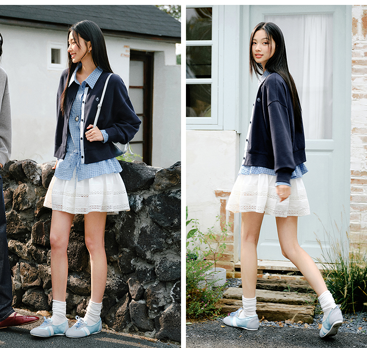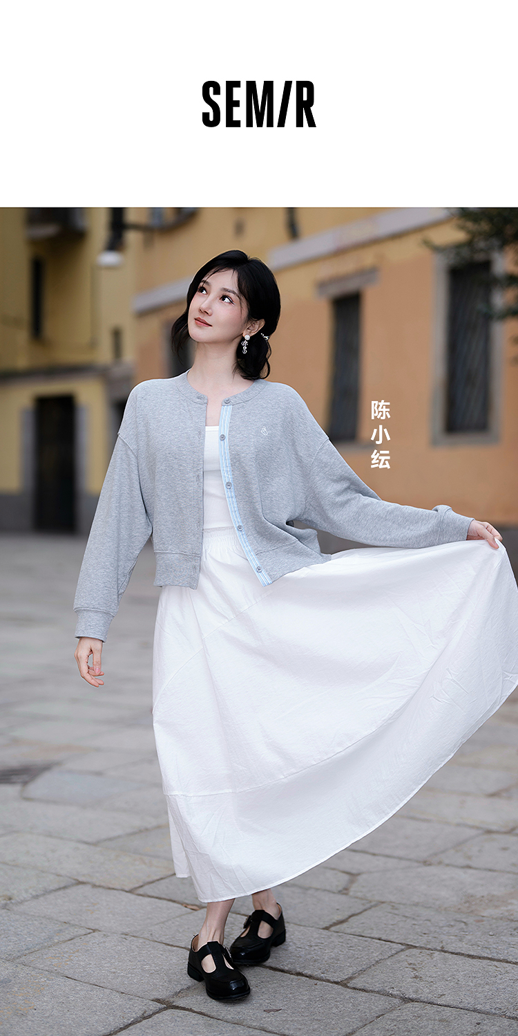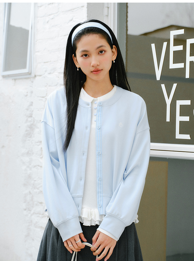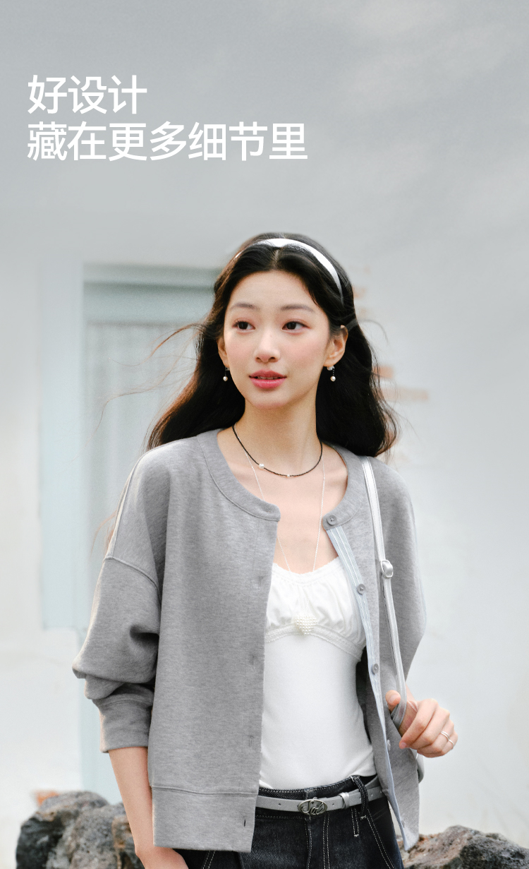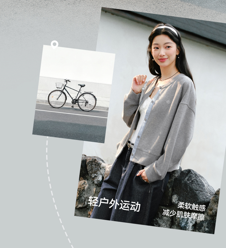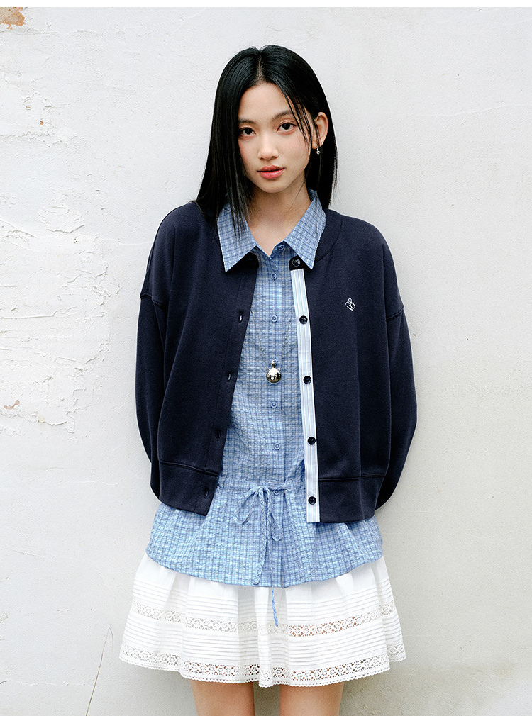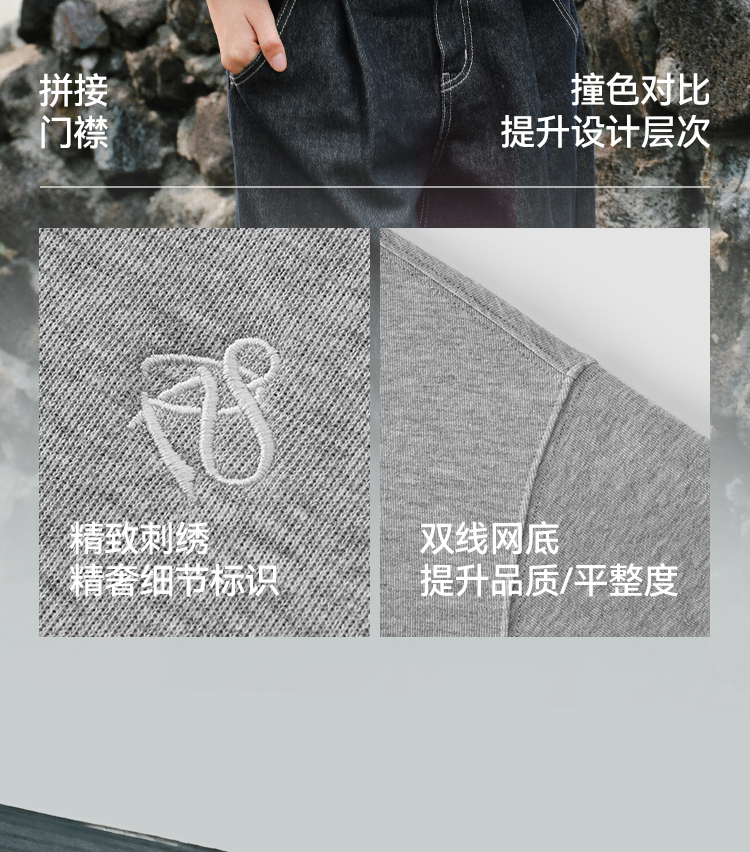 森马外套女春短款圆领拼接条纹宽松落肩刺绣内搭2026新款叠穿夹克
