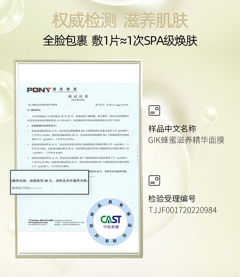 【爆款超低价预售 急单慎拍】GIK蜂蜜滋养精华滋润嫩肤提亮面膜补水润肤韩国学生面膜
