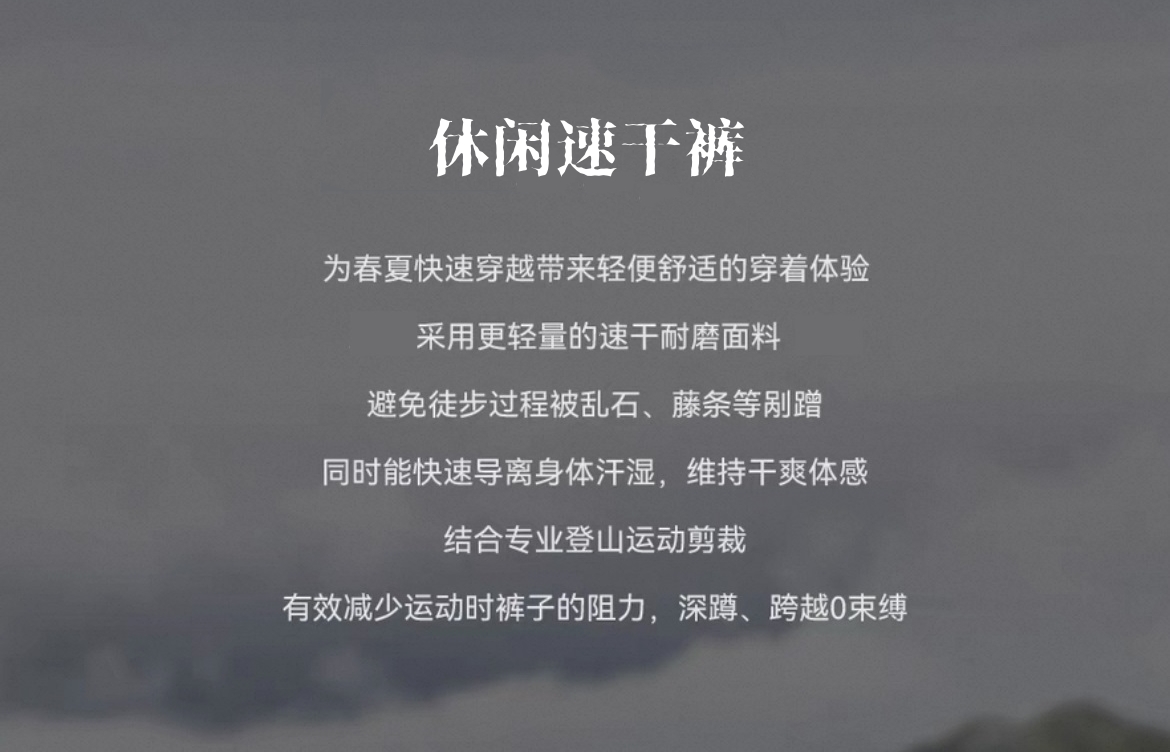 凯家同款户外防泼水速干裤 人体工学四角裆部设计穿着更舒适 速干科技面料加网眼设计加倍透气减少闷热感 细节满满助力探险