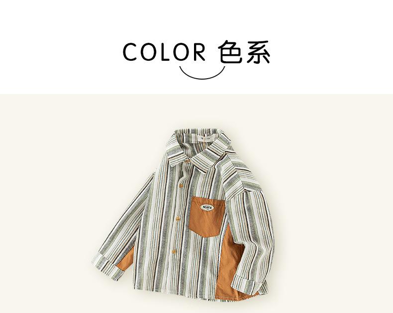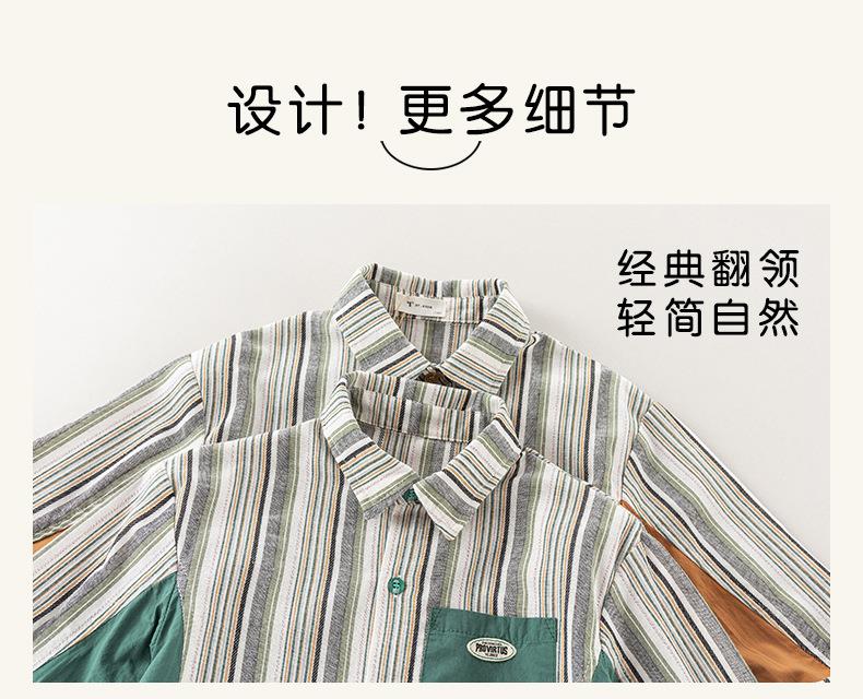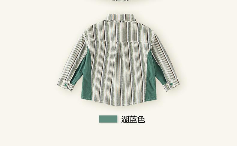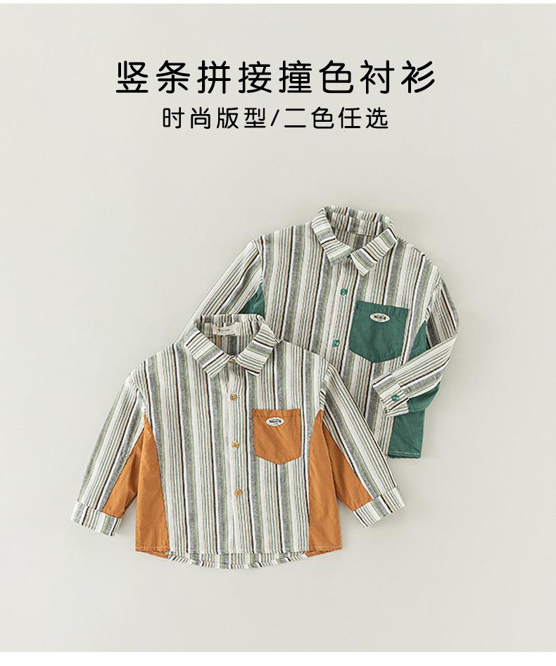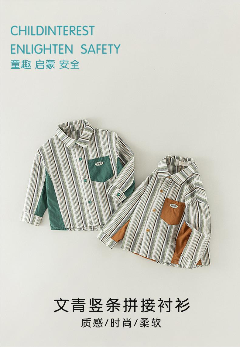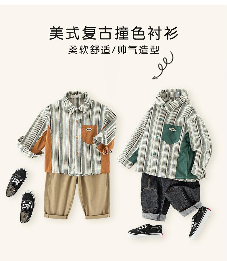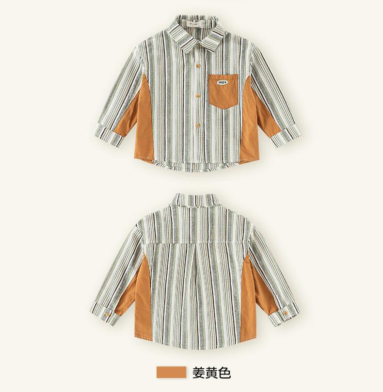 男童衬衫春季宝宝条纹上衣小童翻领拼接撞色外套春装复古儿童衬衣