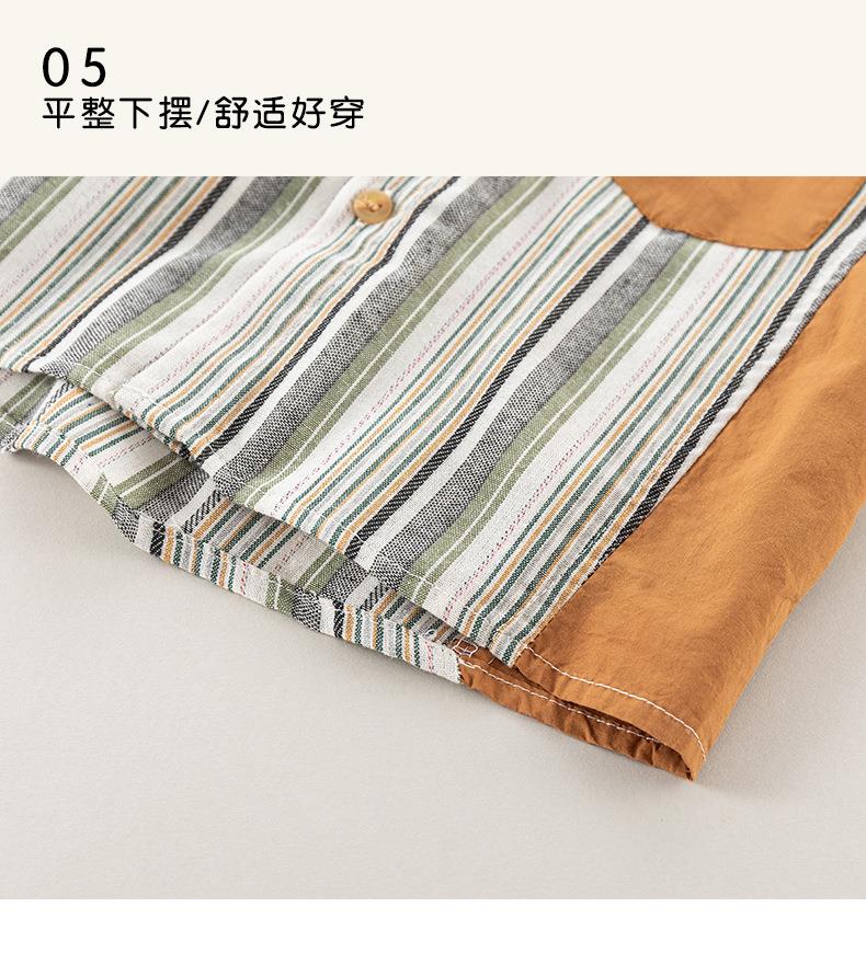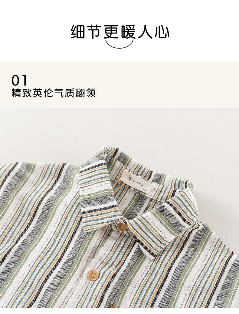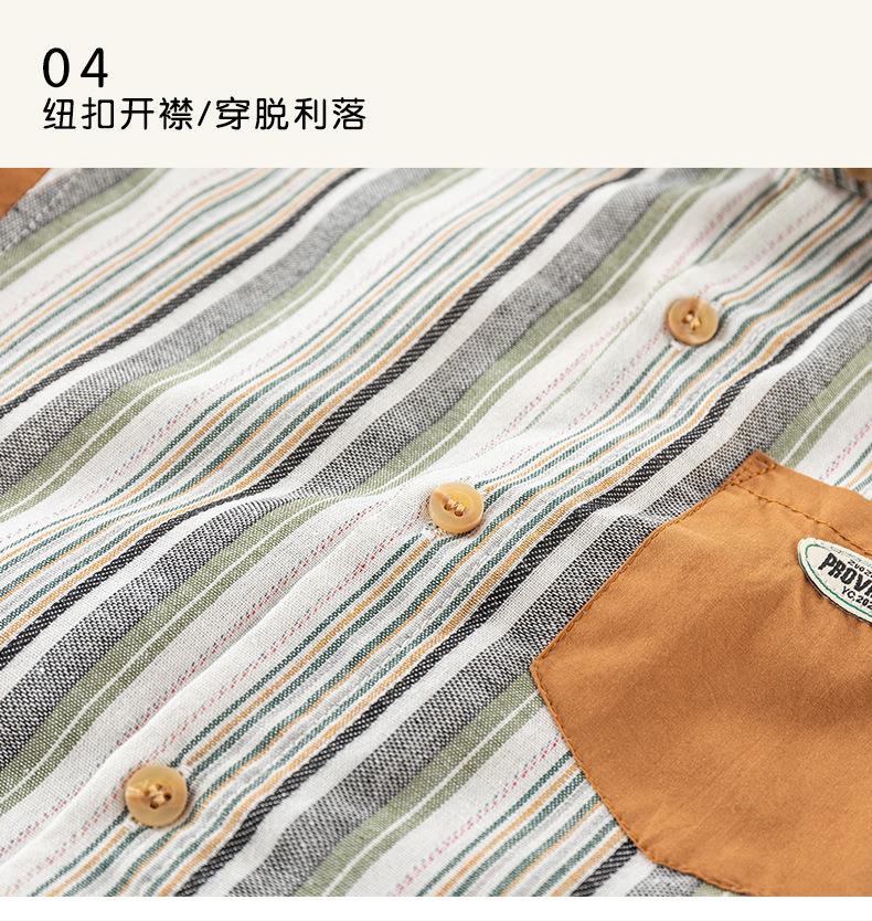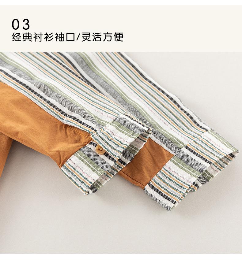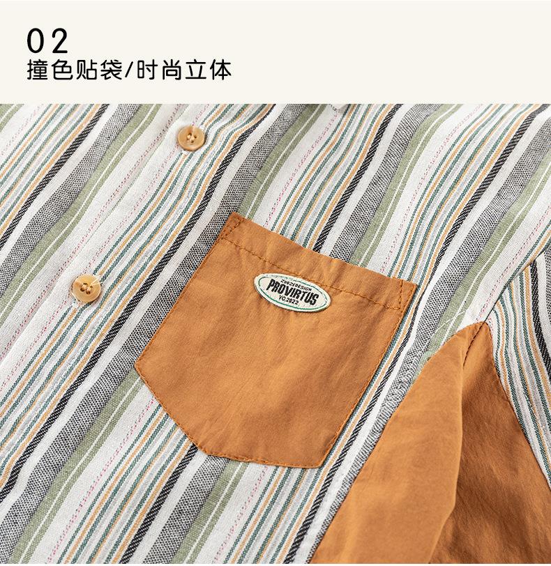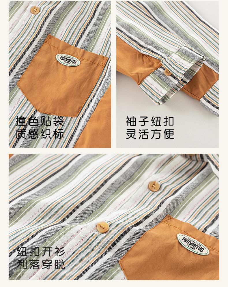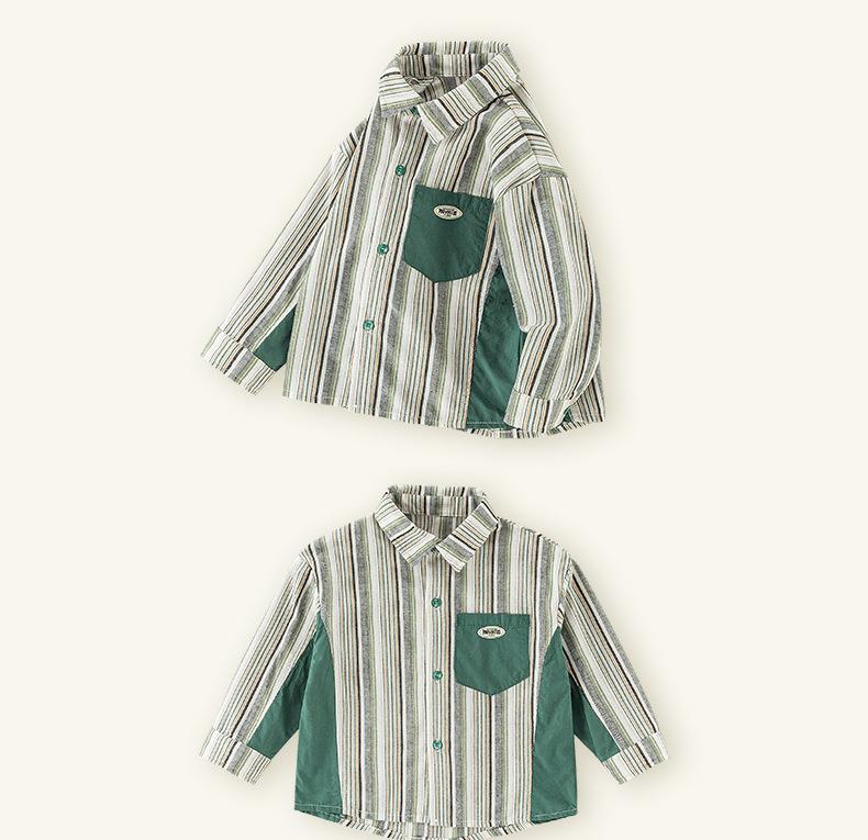 男童衬衫春季宝宝条纹上衣小童翻领拼接撞色外套春装复古儿童衬衣
