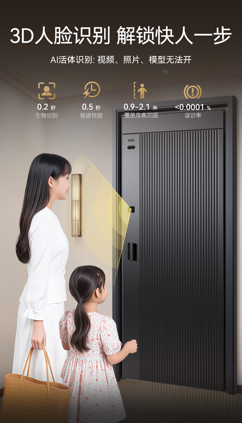 亚太天能双面铸铝智能门H9一体化全自动AI双摄监控防盗入户门家用进户门大门
