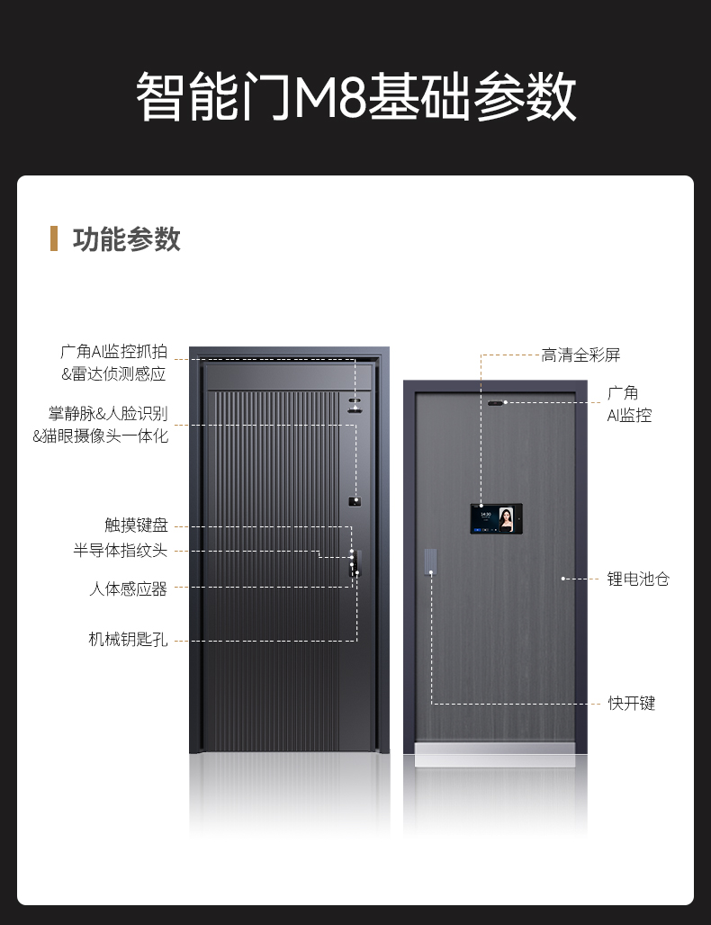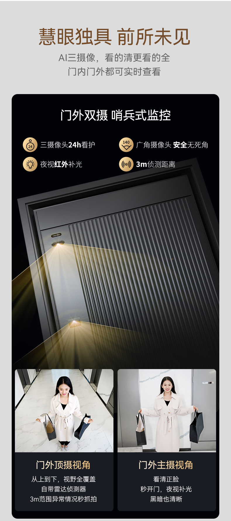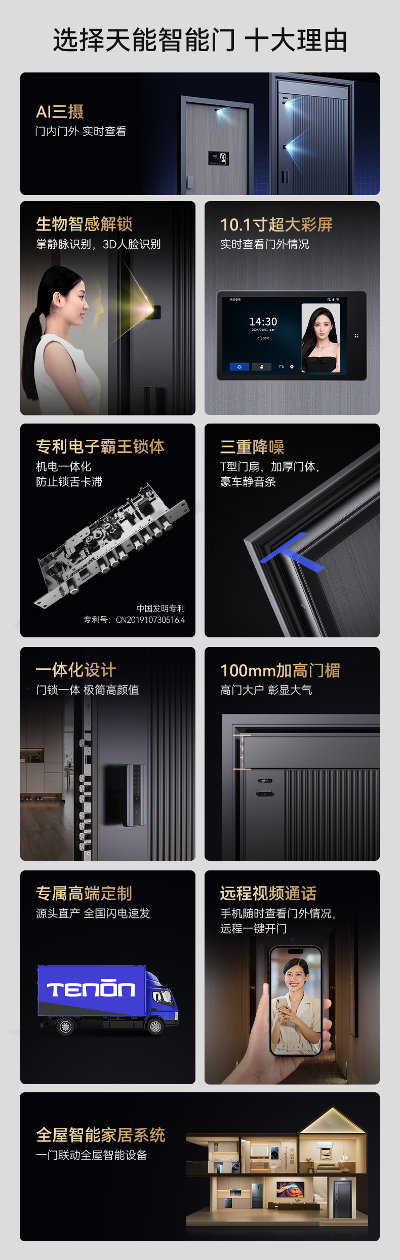 亚太天能精雕铸铝智能门H8pro一体化全自动AI三摄监控防盗入户门家用进户门子母大门