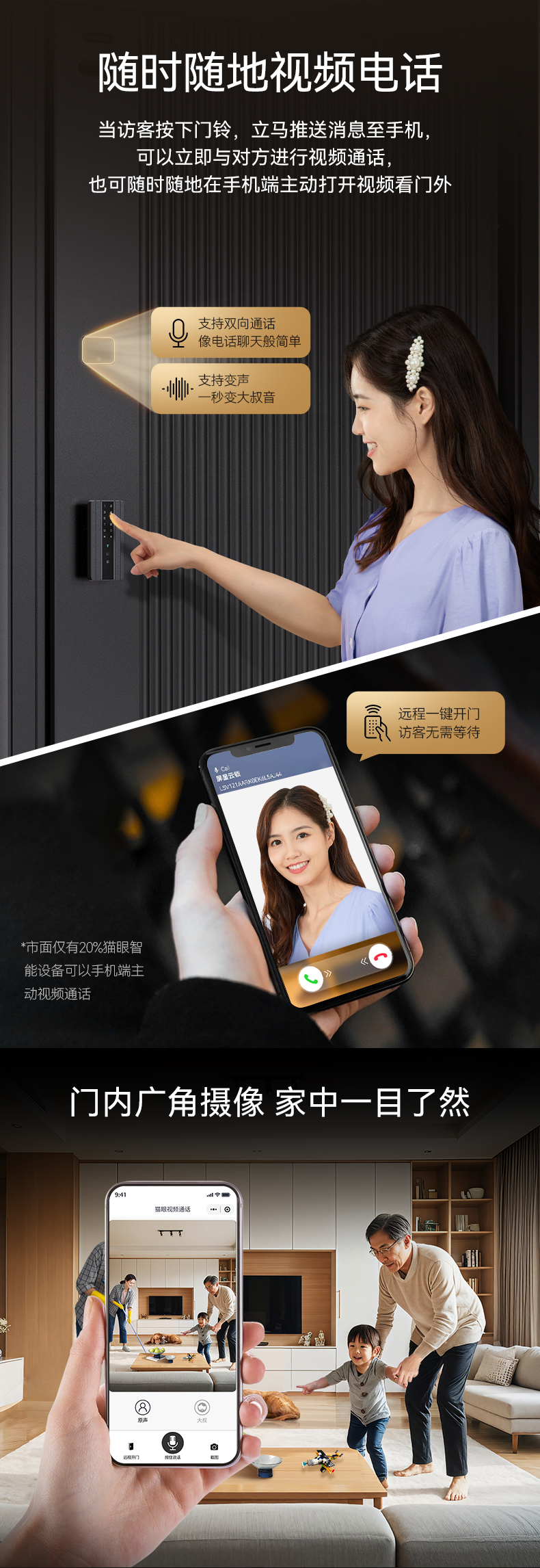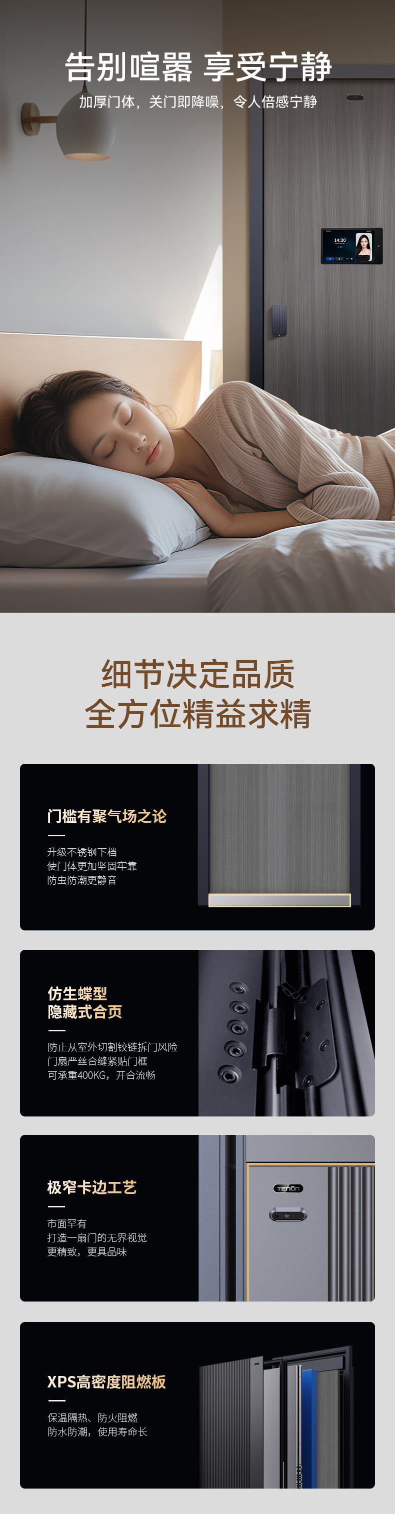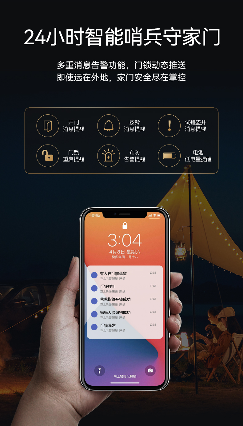 亚太天能精雕铸铝智能门H8pro一体化全自动AI三摄监控防盗入户门家用进户门子母大门