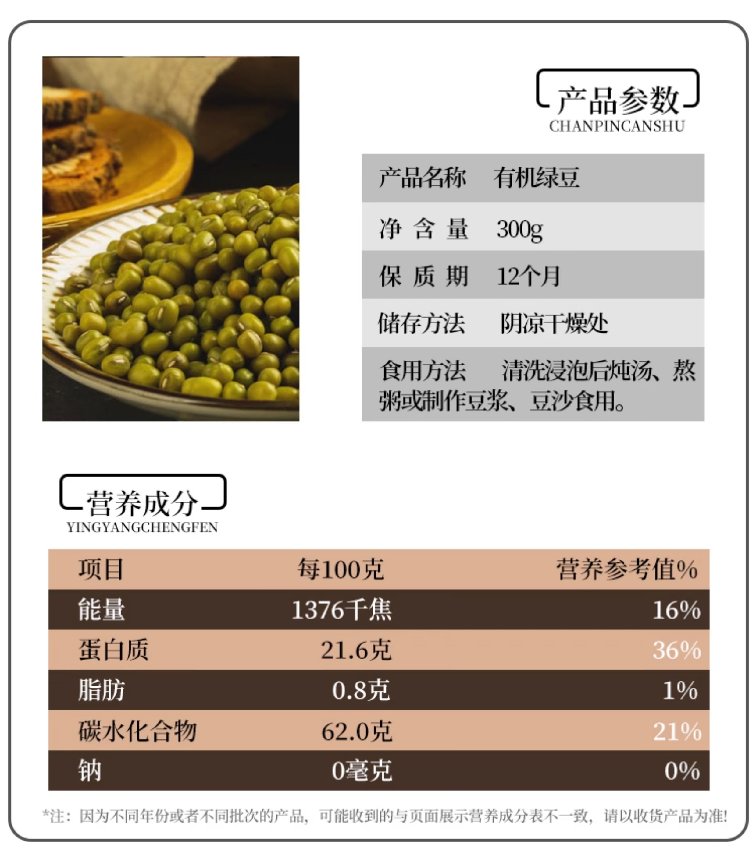人民 有机绿豆300g
