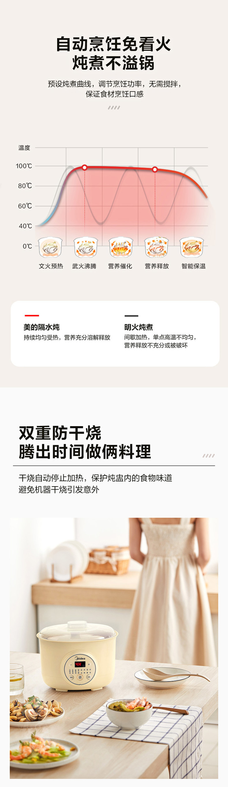 美的(509261)电炖盅电炖锅煲汤锅1.6L燕窝炖盅一锅三胆隔水炖TZS16Y