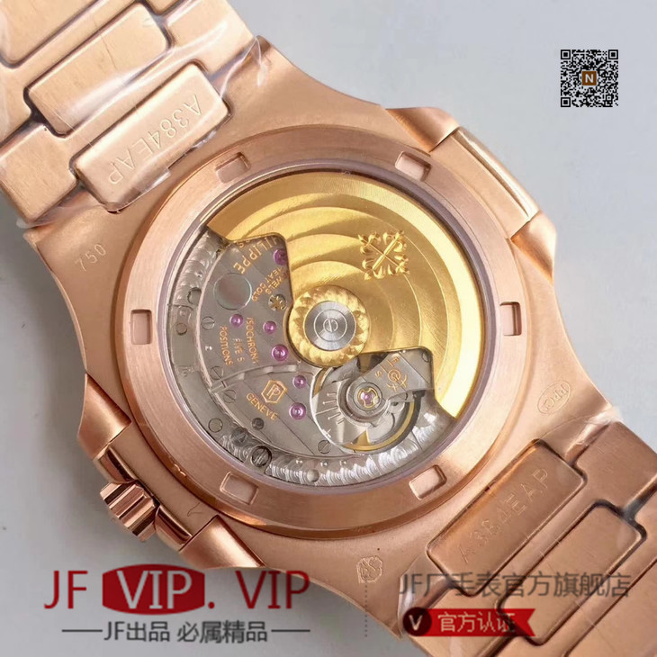 台湾镶钻工艺打造百达翡丽 鹦鹉螺满钻铂金版5719/1G-001 A级壳套,底部蚀字按正品,四个角分别是:狗头印记,750字样,天平图案