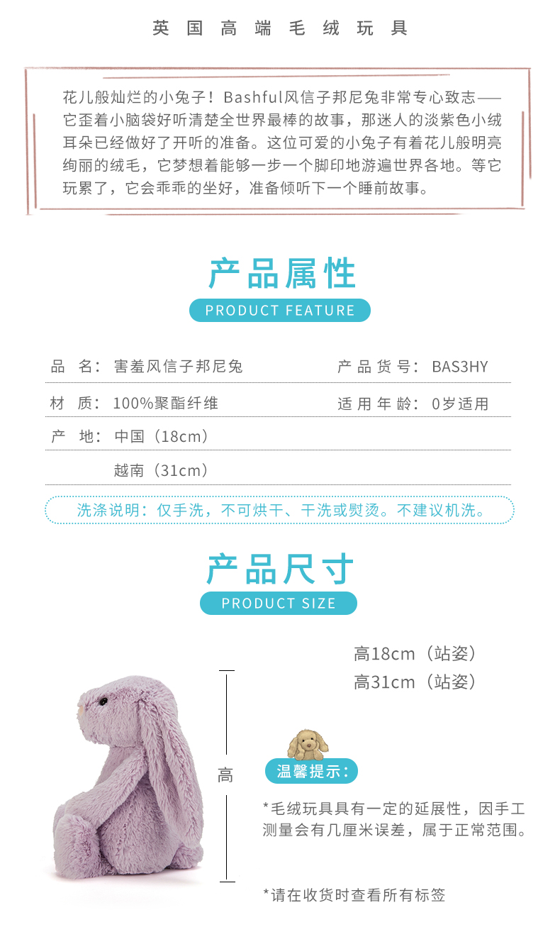Jellycat 害羞系列 邦尼兔 风信子 31cm