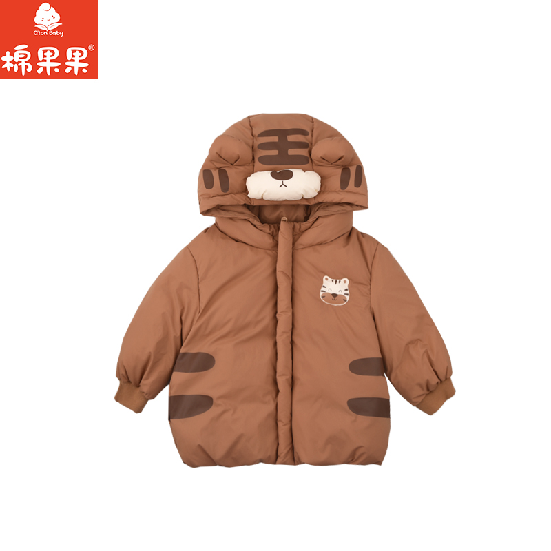 棉果果冬季新品男童涤丝纺羽绒保暖加厚三防面料卡通可爱小老虎短款羽绒服M412102925615