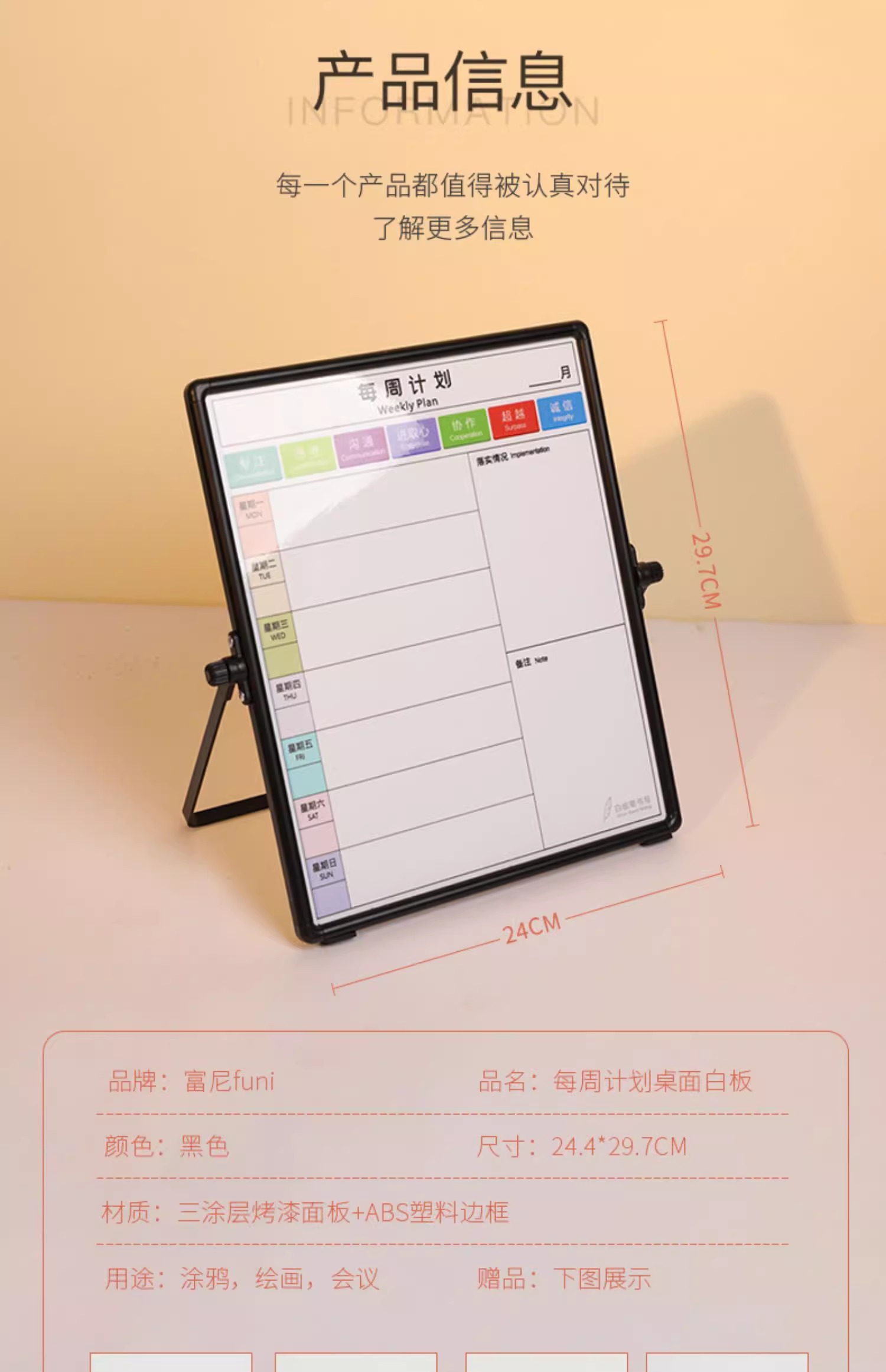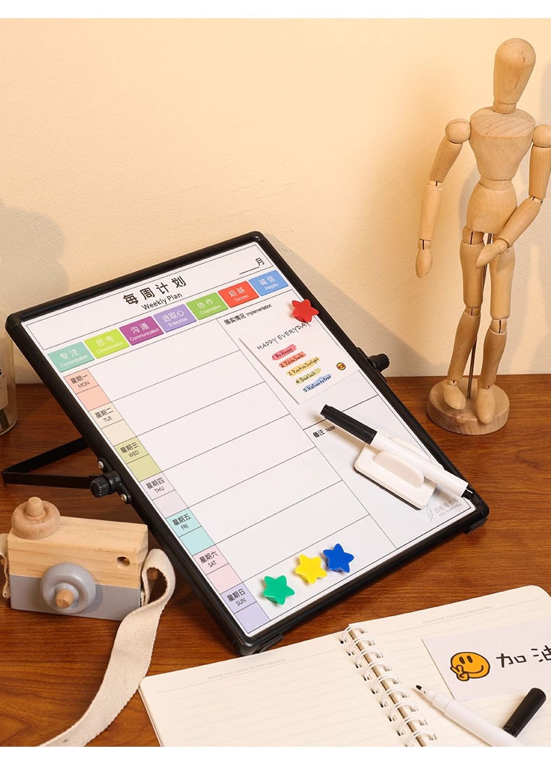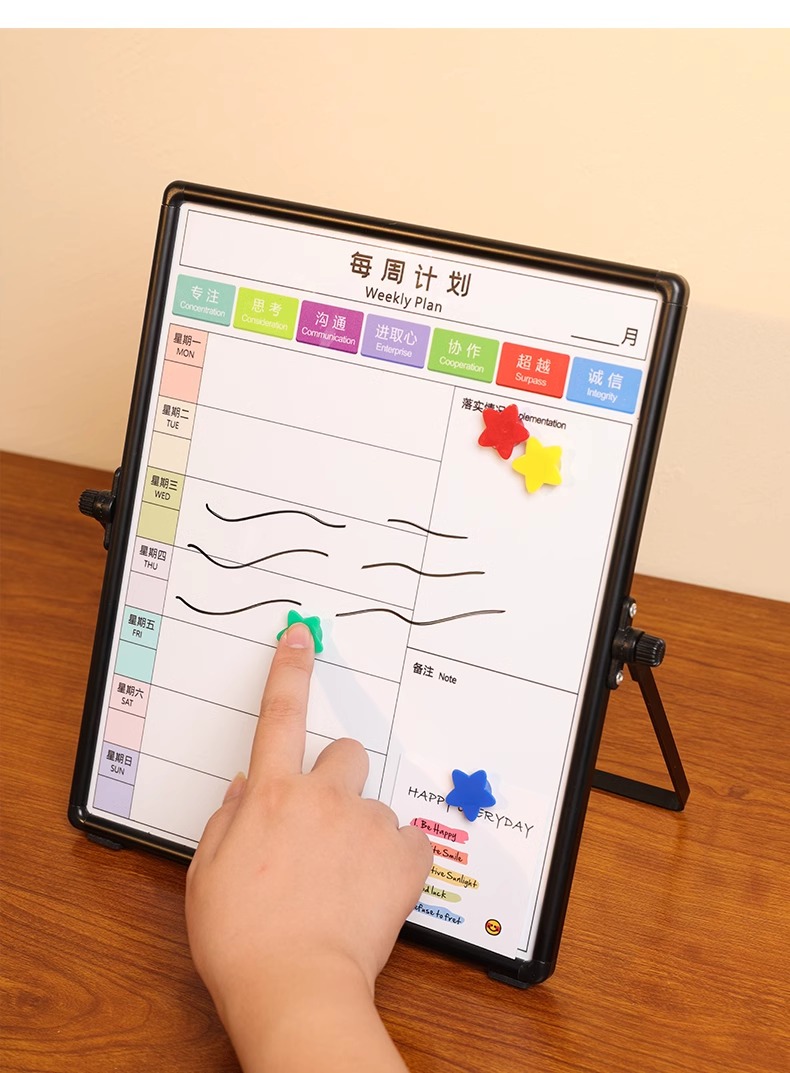 富尼每周计划磁性挂式支架式双面小白板工作安排每周事项提示板双面挂墙写字板办公儿童家用黑板留言板可擦写