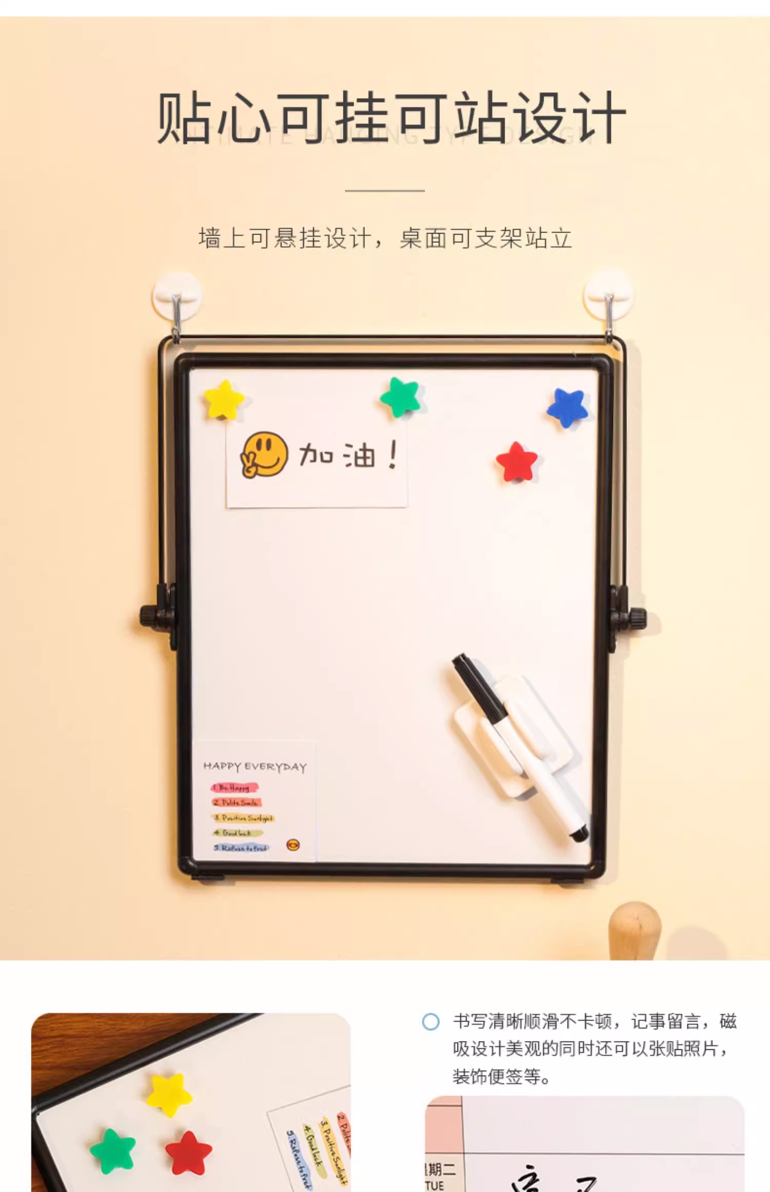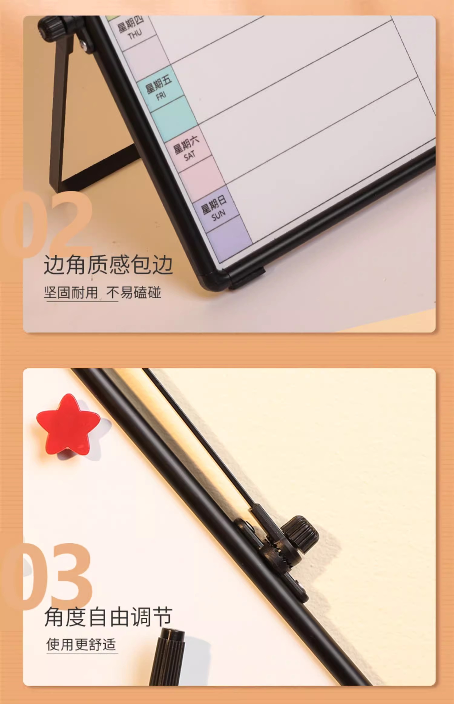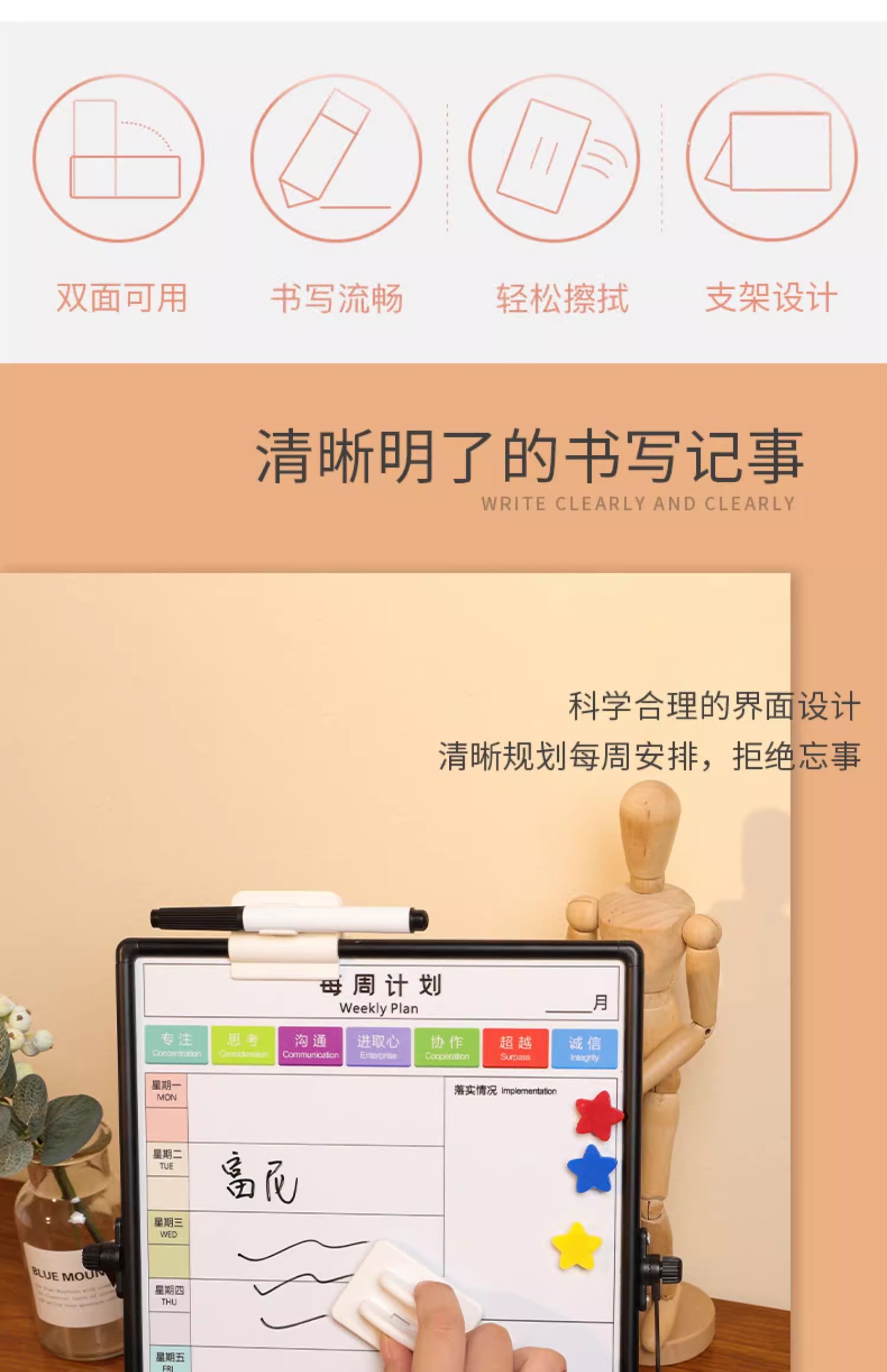 富尼每周计划磁性挂式支架式双面小白板工作安排每周事项提示板双面挂墙写字板办公儿童家用黑板留言板可擦写