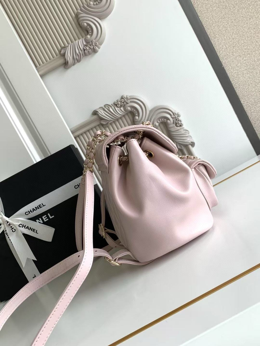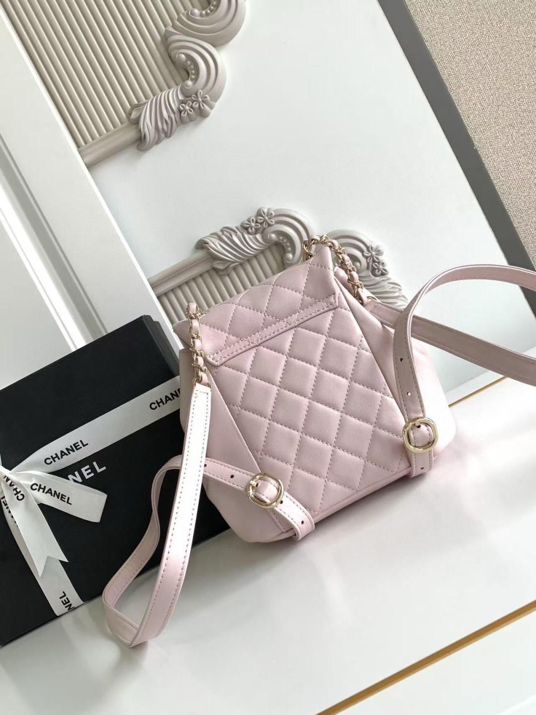 夏季特惠💰1180 原单香奈儿22A系列AS2908羊皮DUMA双肩小背包 女款背包 一眼爱上这个羊皮,这个白不用担心了,耐脏喔!容量超感人~夏天的花洋装搭这个一定无敌仙女!重点来了:视觉上体积只比方胖大一点点,背在身上超小巧可爱,容量却这么感人,手机、短夹、水瓶、伞,还有其他零碎小东西通通都可以超轻松装进,前面的磁扣可以放卡夹跟钥匙护唇膏,又仙又实用! 尺寸:18×18×12cm