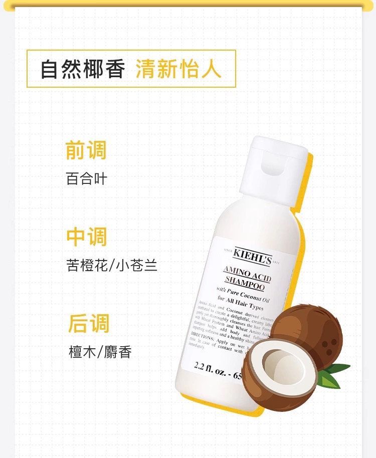 【专柜小样】美国 Kiehl's科颜氏 氨基酸椰香洗发水 / 护发素 65ml *2
