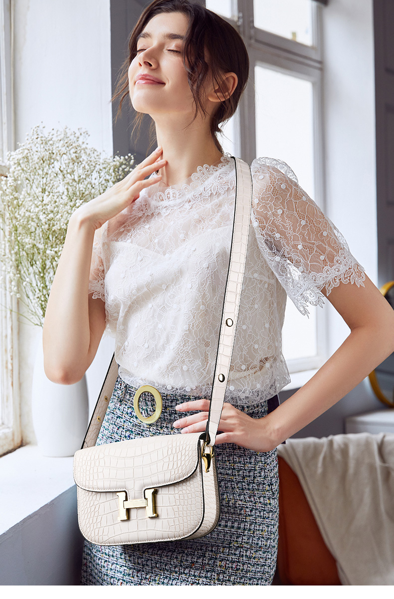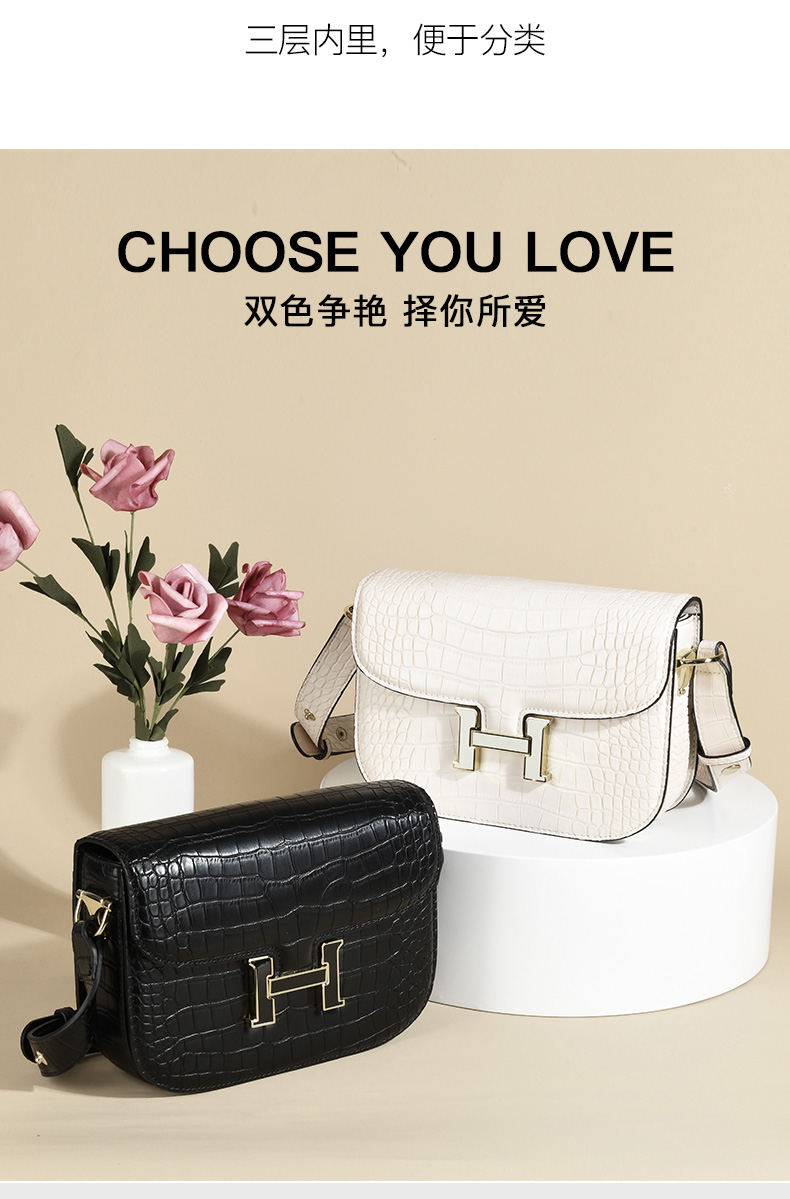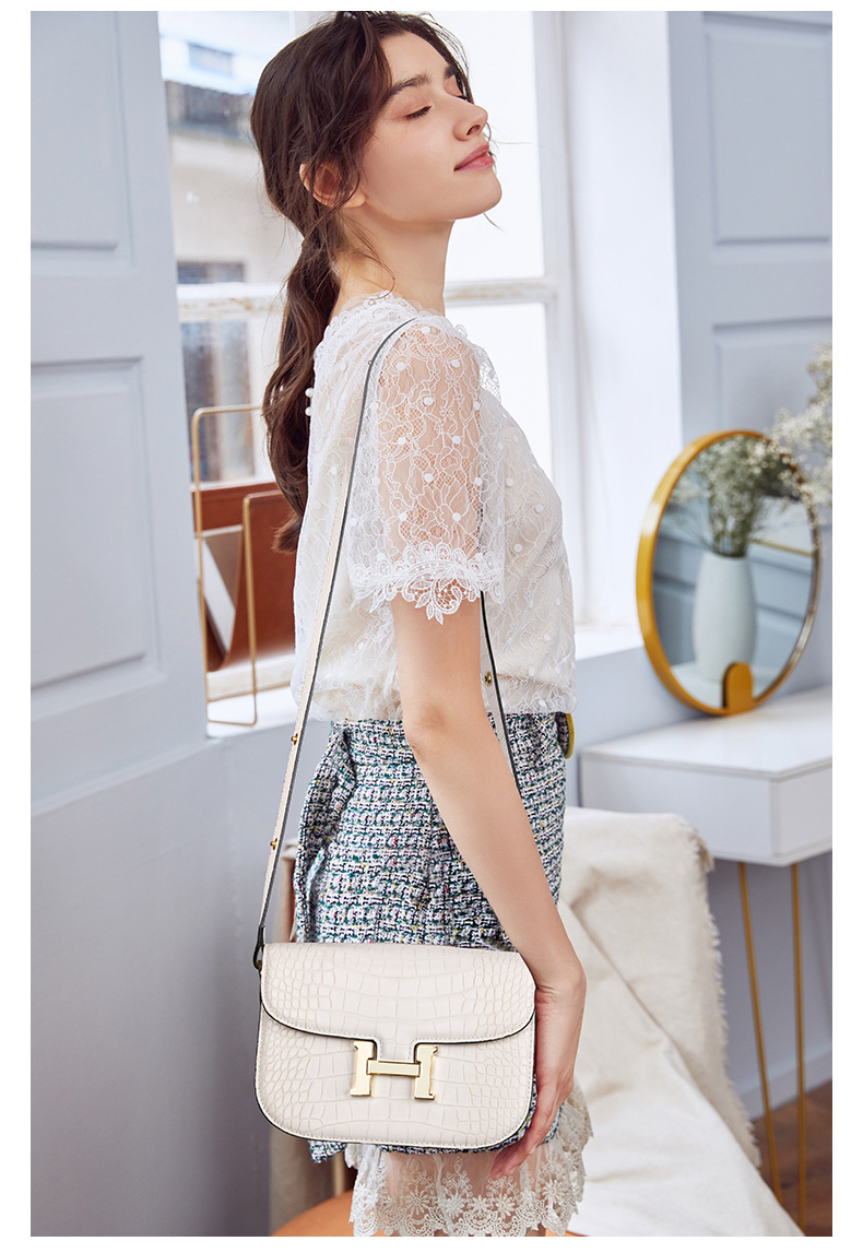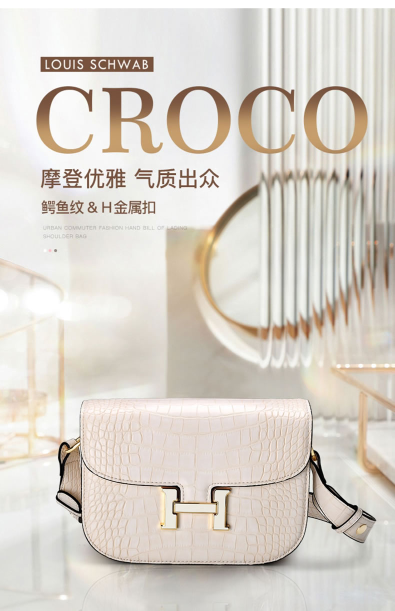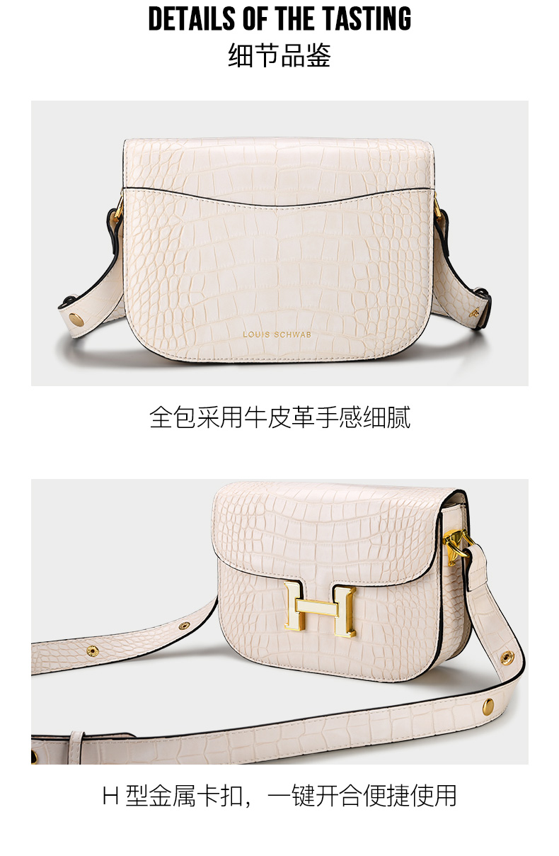 LS/路易施瓦布斜挎女包大气H扣小方包