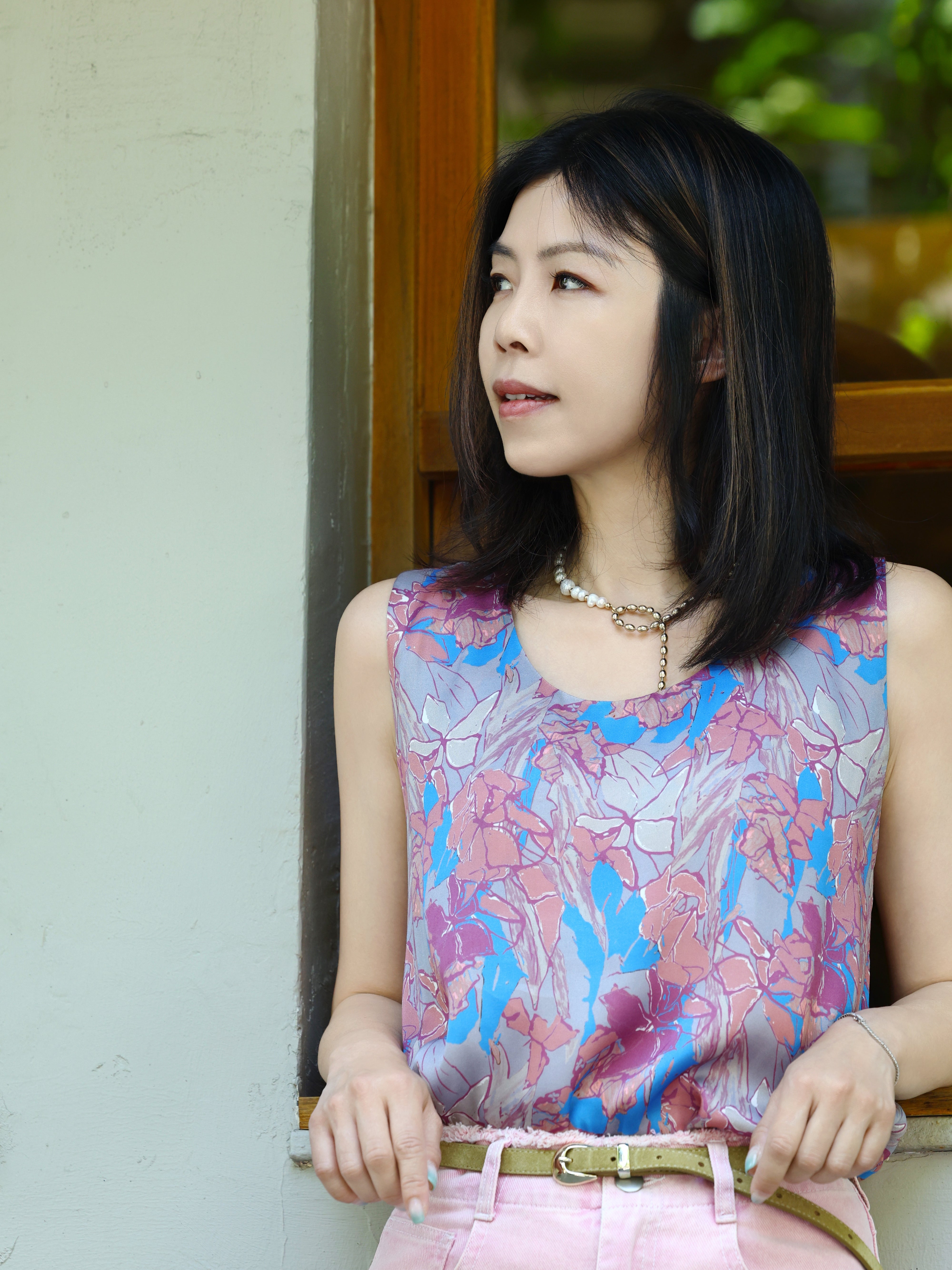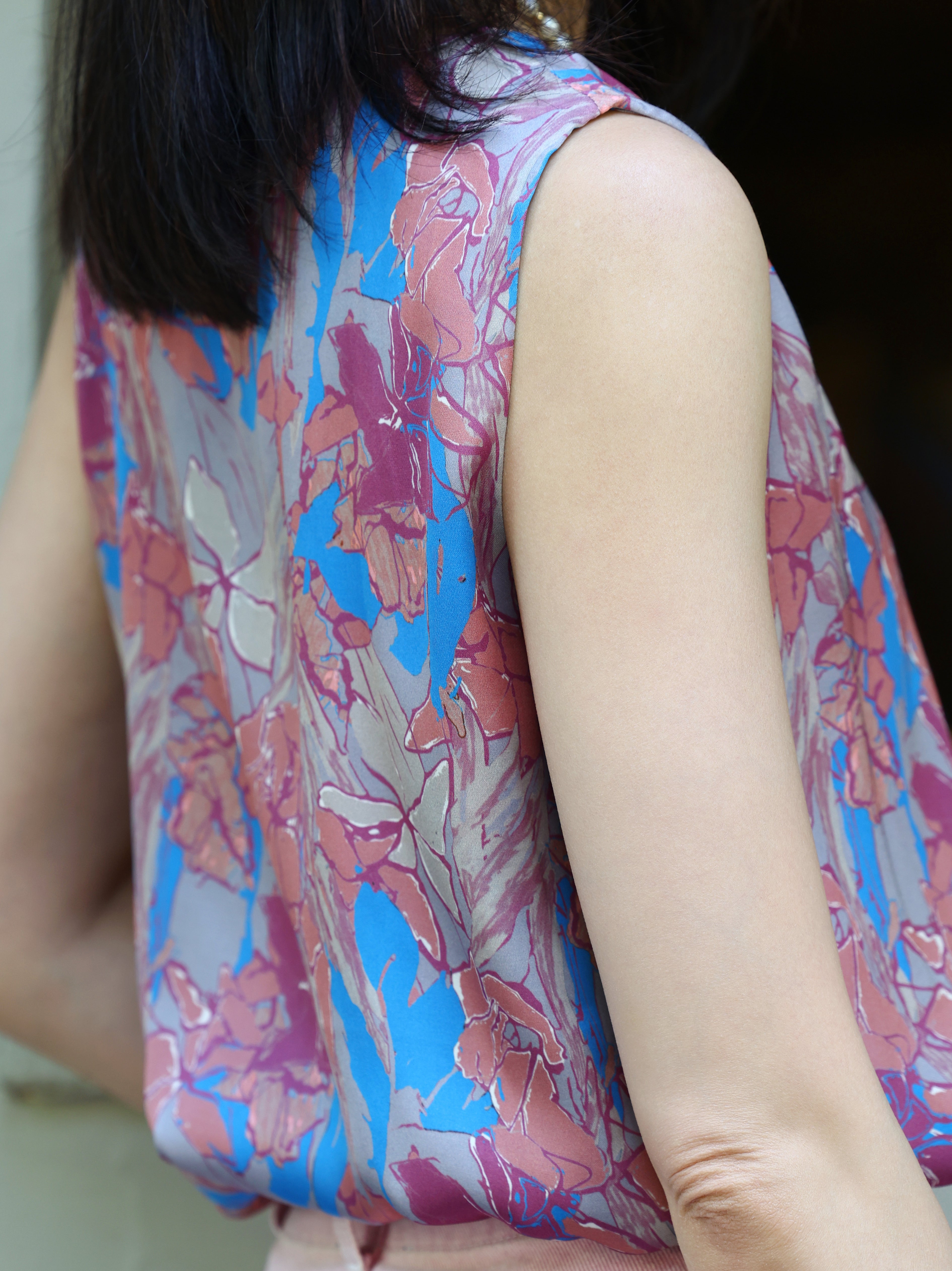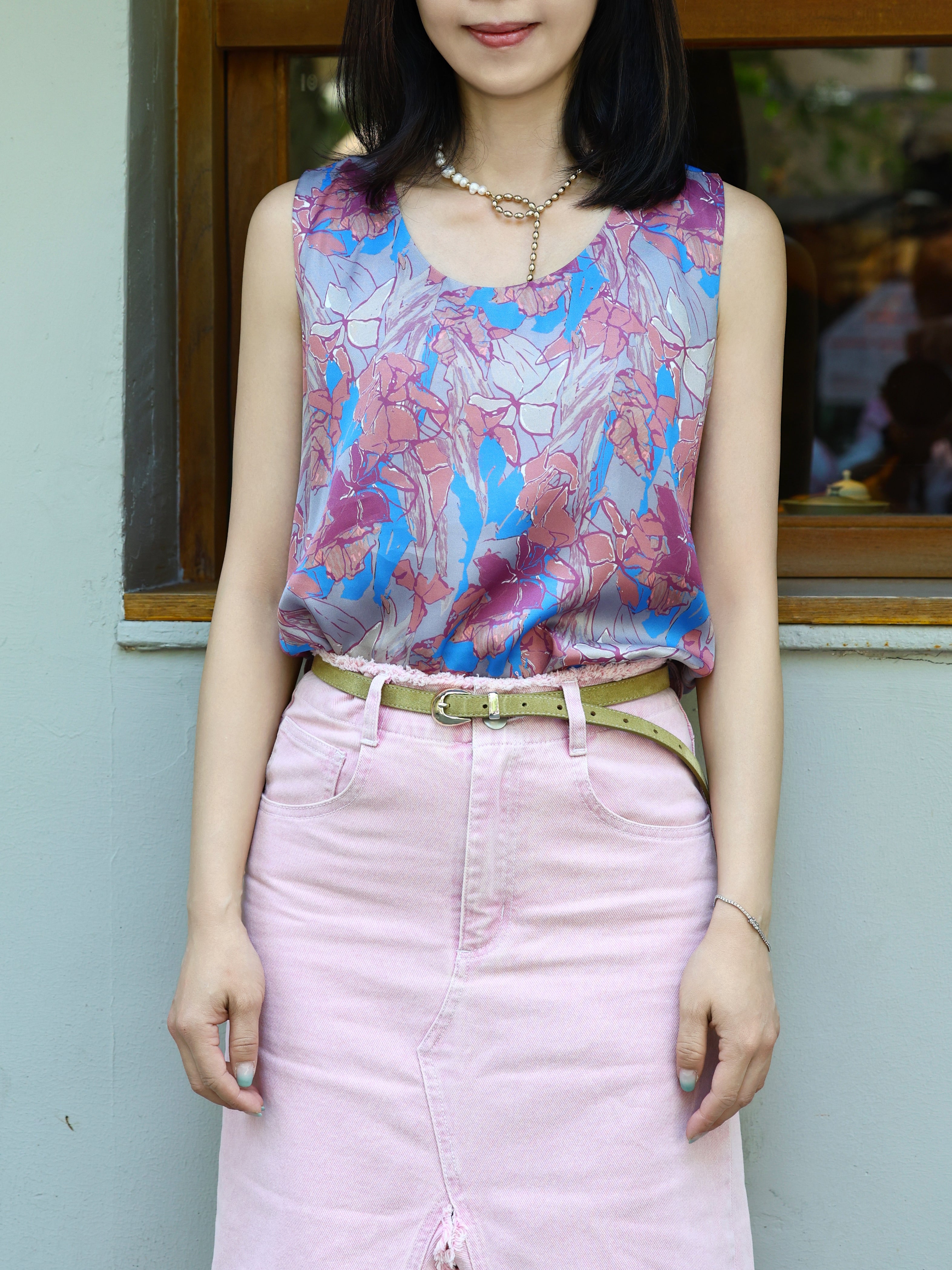 TYNVIE 圆领真丝背心-蓝色花卉