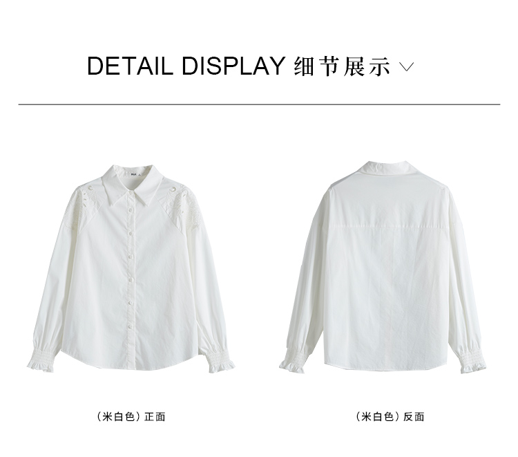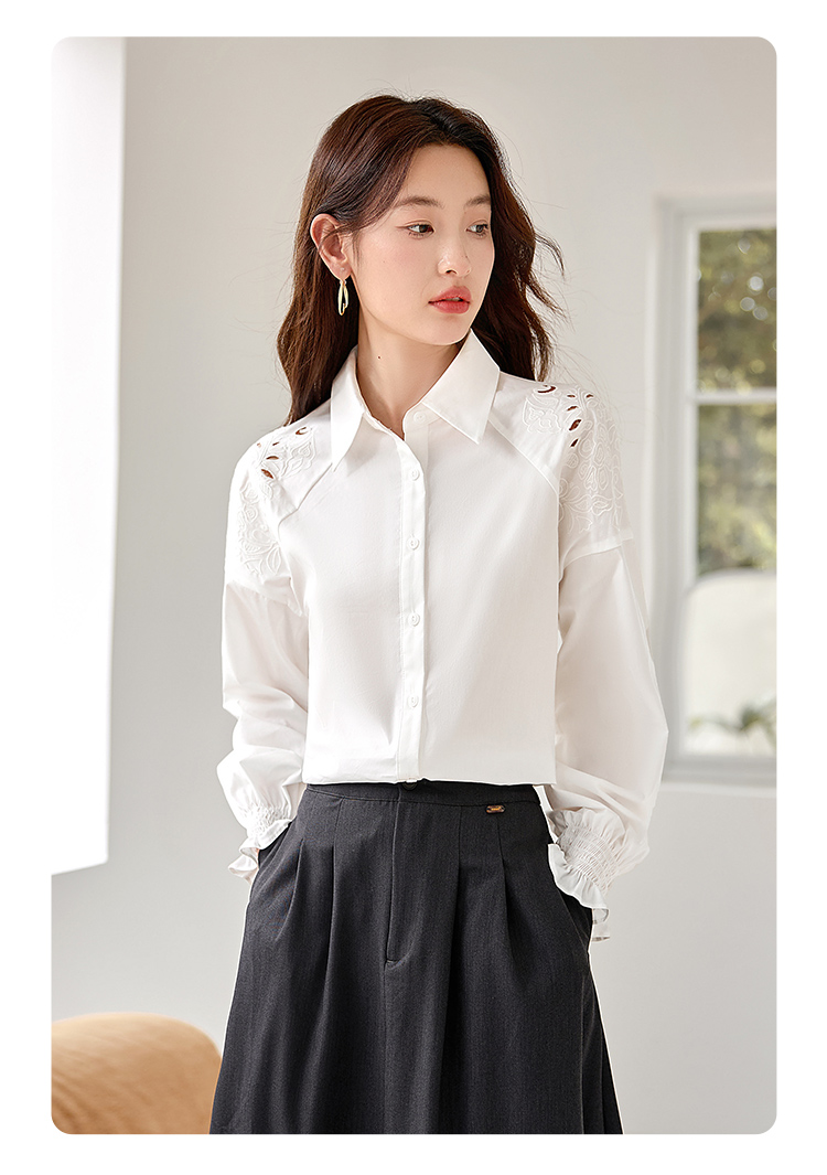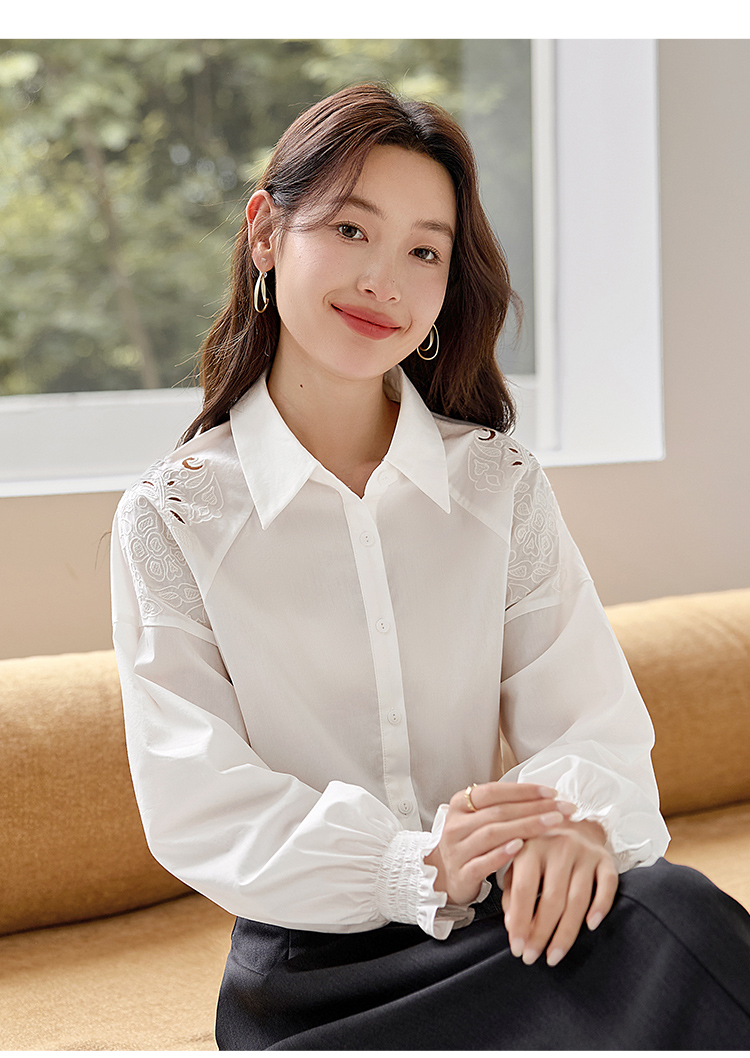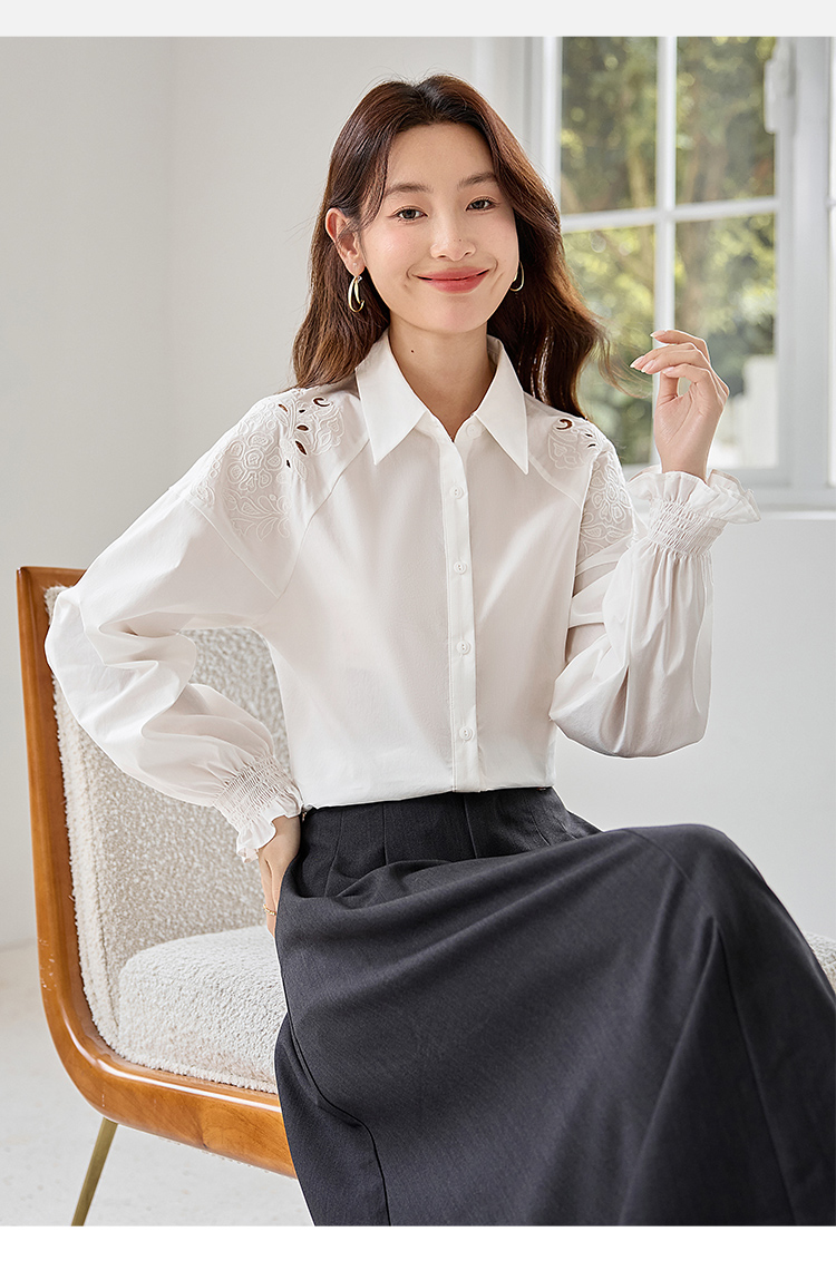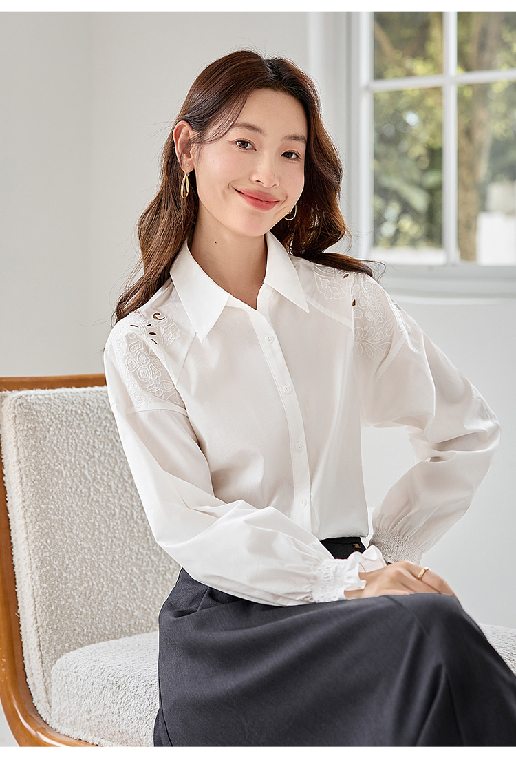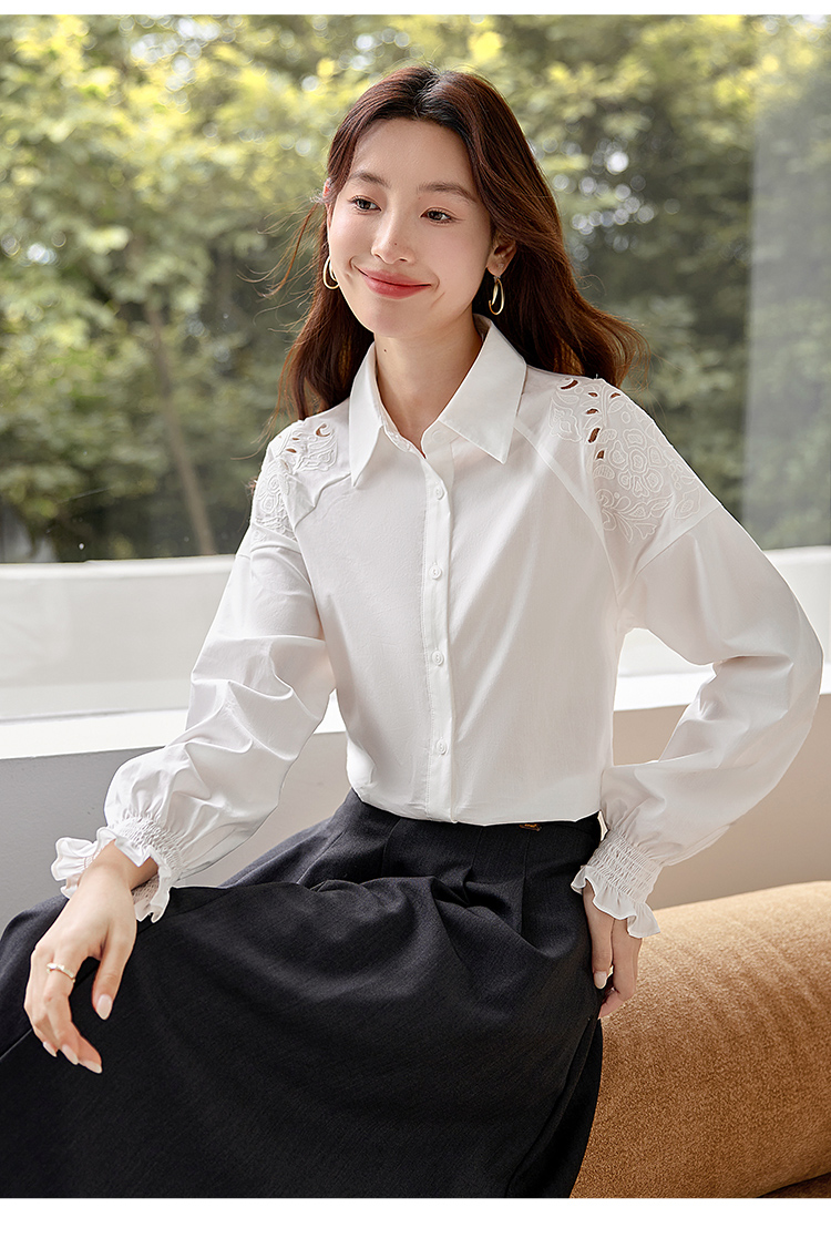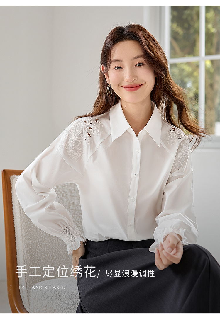 【年终特卖】熙世界白色衬衫长袖2025早秋新款宽松法式衬衣重工镂空刺绣上衣