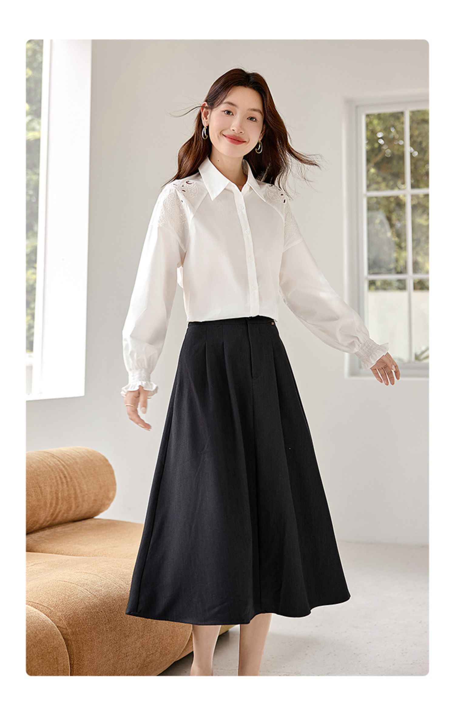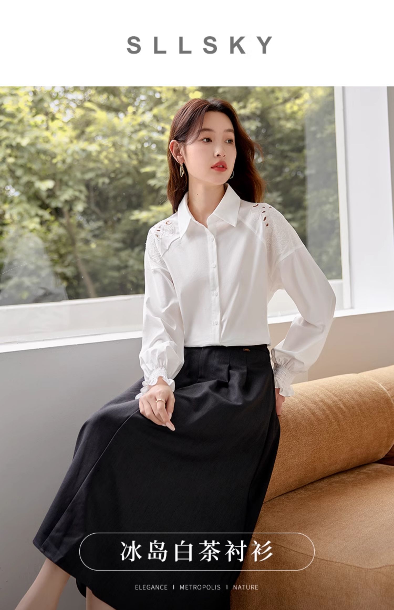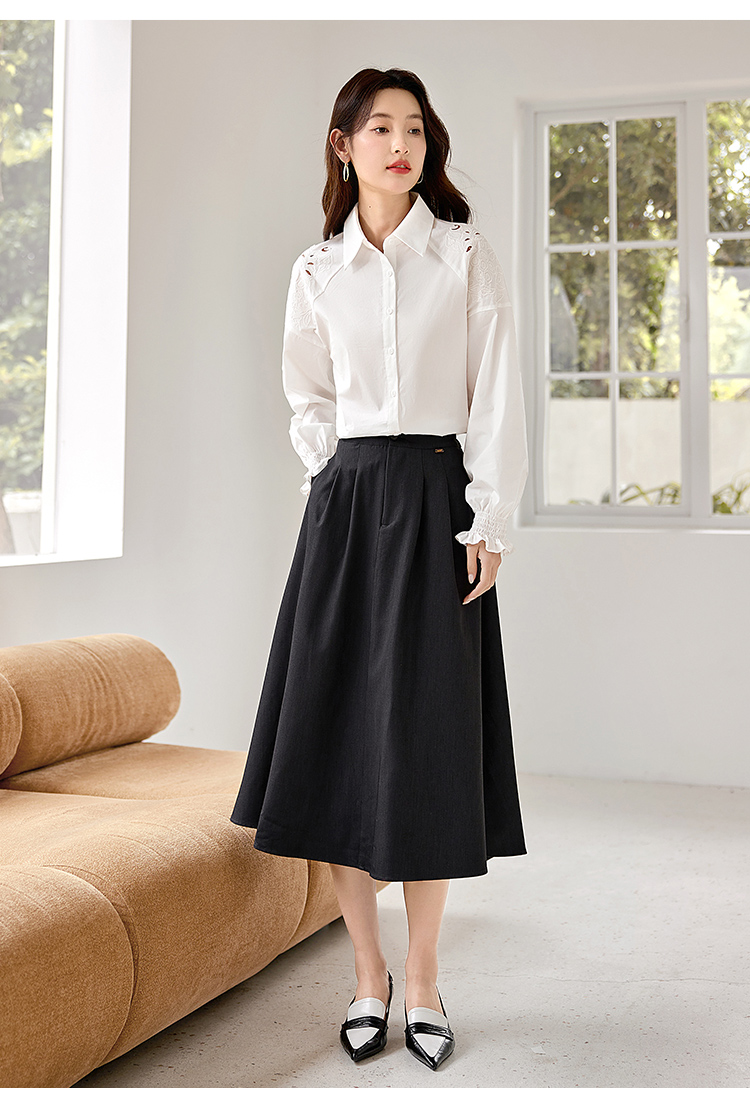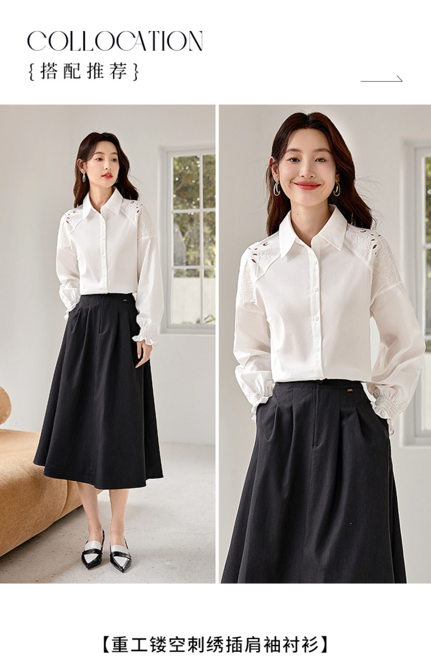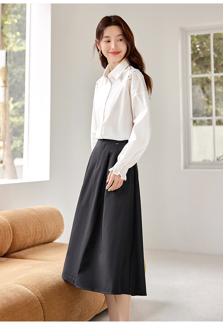 【年终特卖】熙世界白色衬衫长袖2025早秋新款宽松法式衬衣重工镂空刺绣上衣