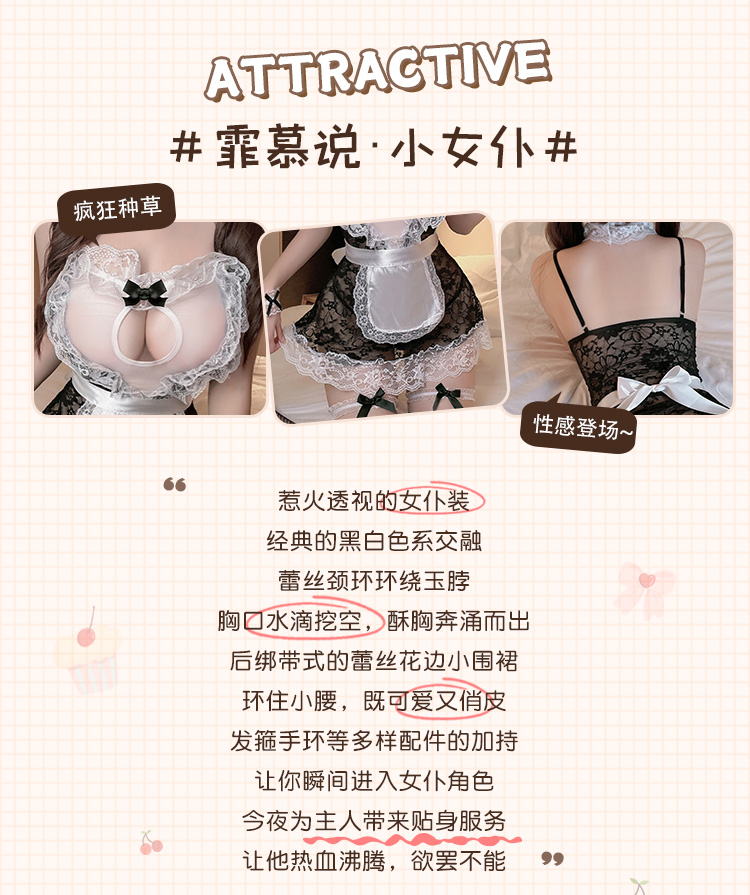 【情趣内衣】透视蕾丝女佣套装