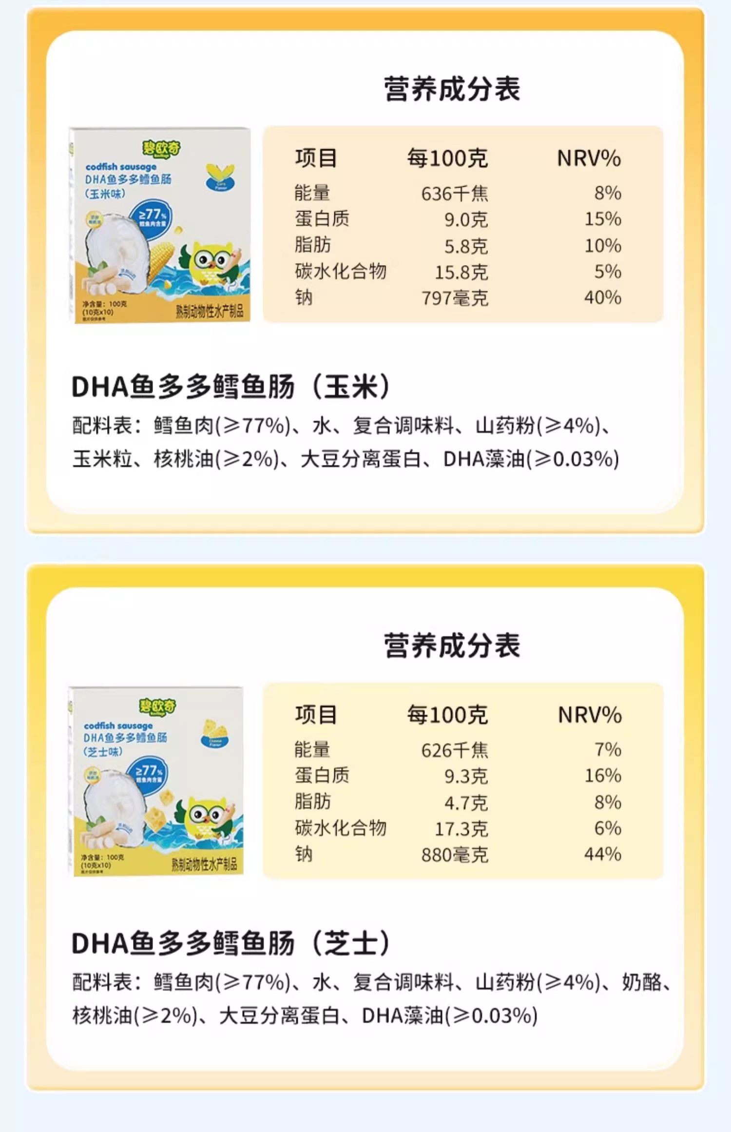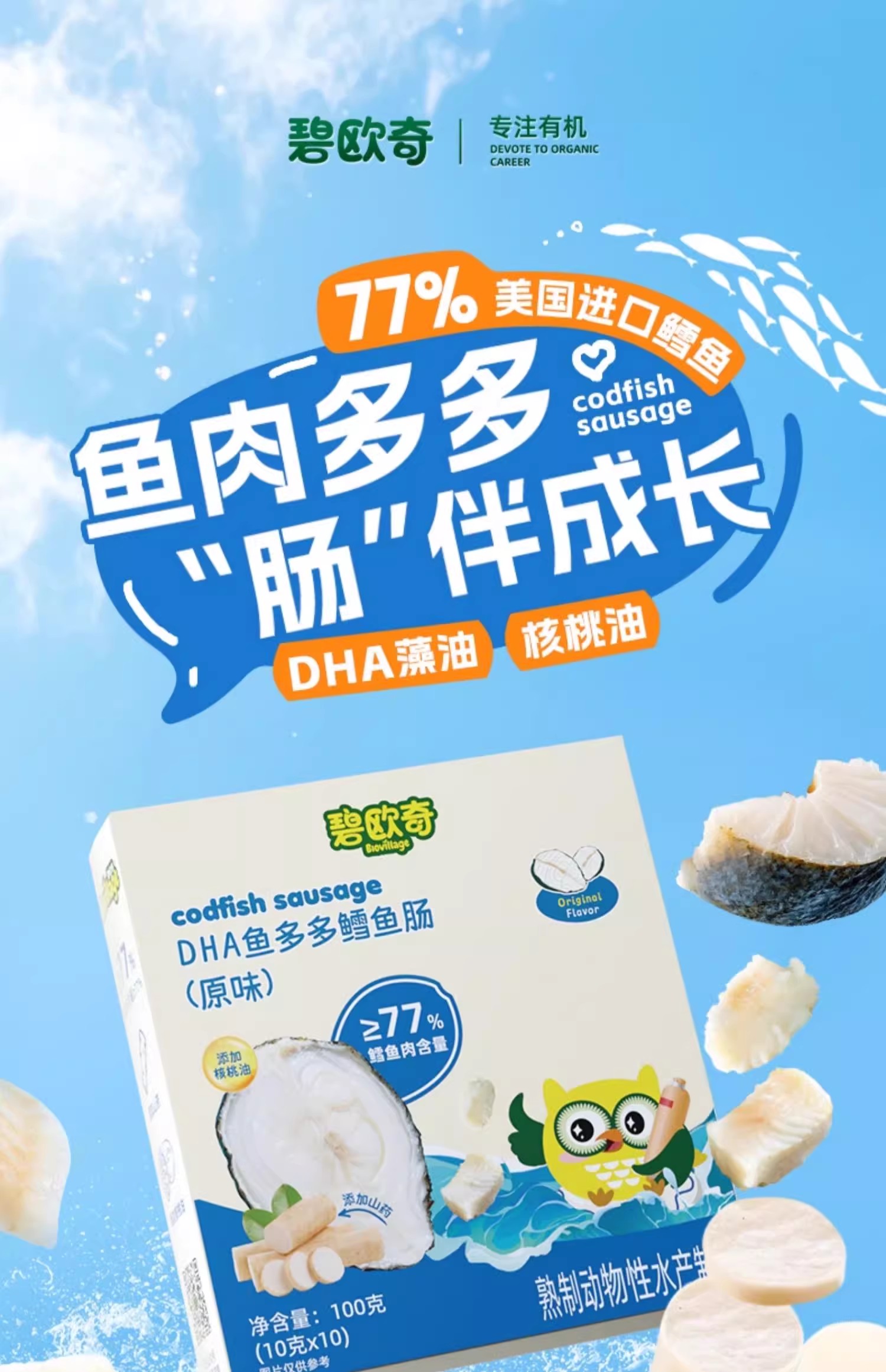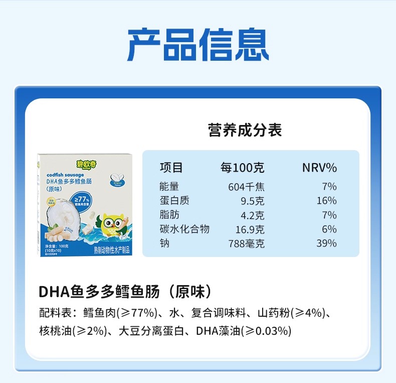 碧欧奇DHA鱼多多鳕鱼肠100g