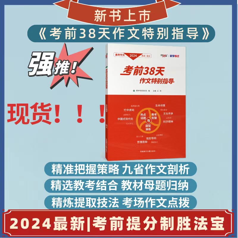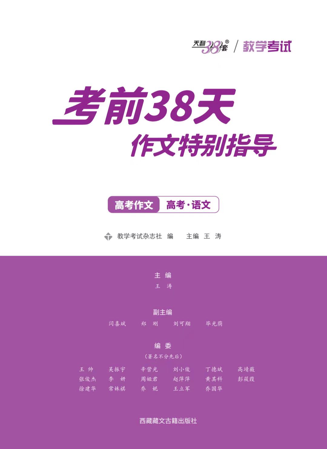 24版 《考前38天作文特别指导》 教学考试杂志社 编 王涛 主编 考前提分制胜法宝 精准把握策略 九省作文剖析 精选教考结合 教材母题归纳 精炼提取技法 考场作文点拨