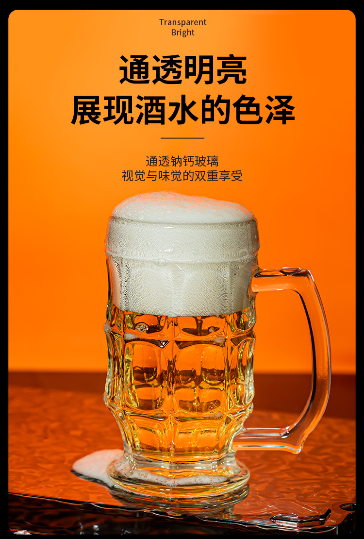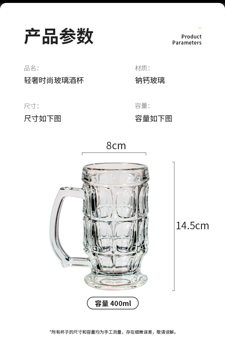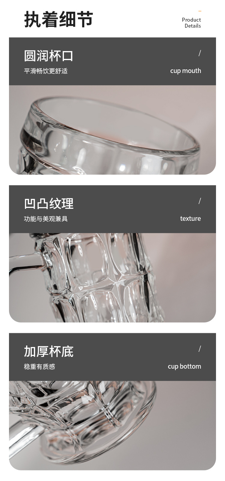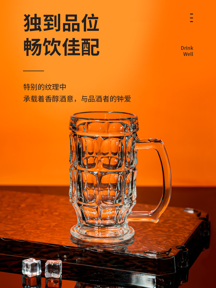 「品饮生活!莫吉托啤酒杯」加厚玻璃啤酒扎啤杯大容量带把酒吧烧烤饭店加厚酒杯大号玻璃茶杯餐饮用具