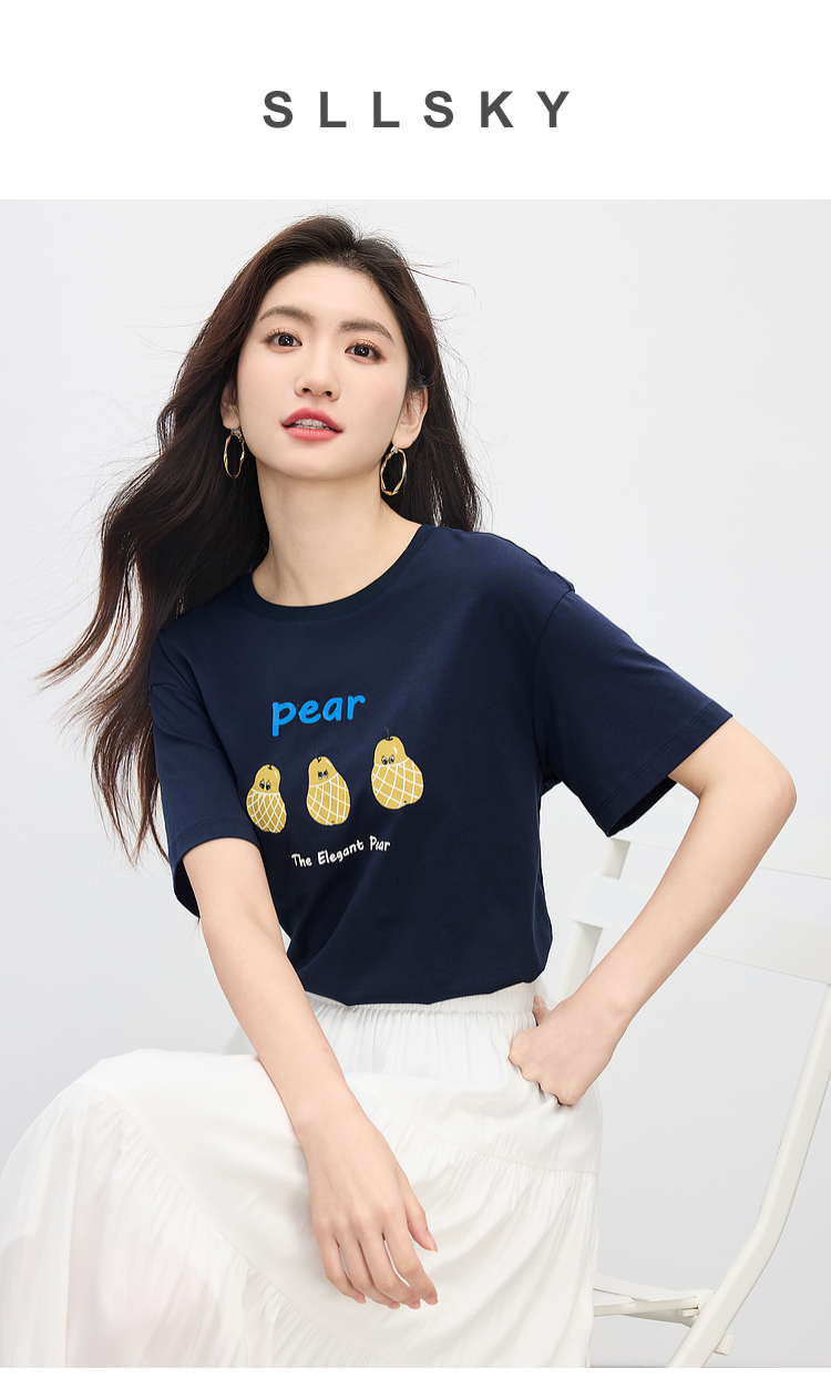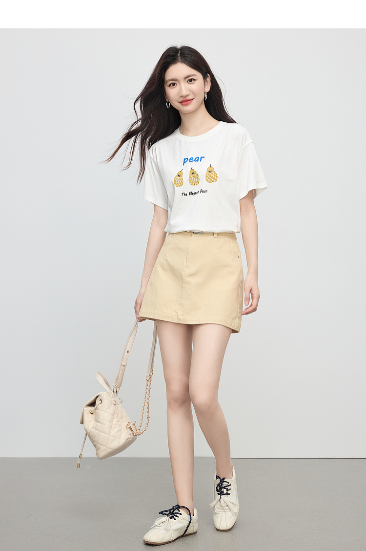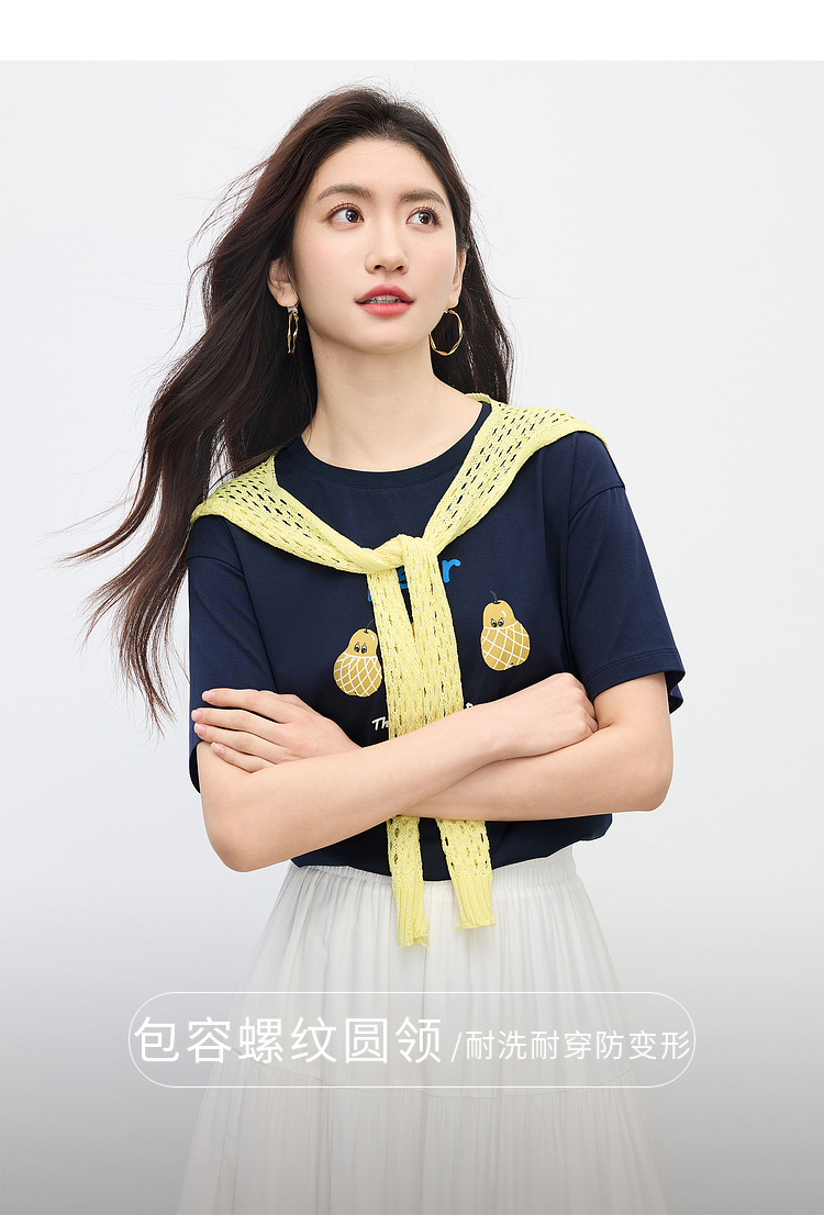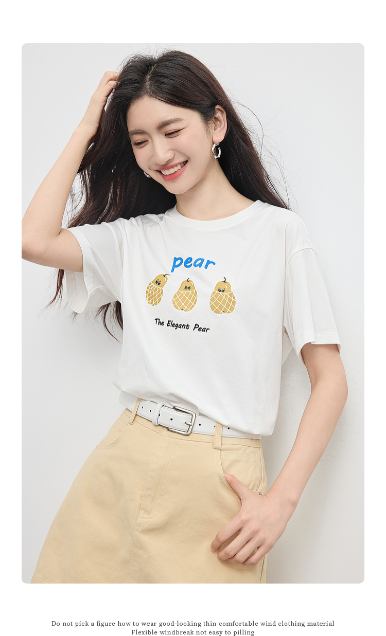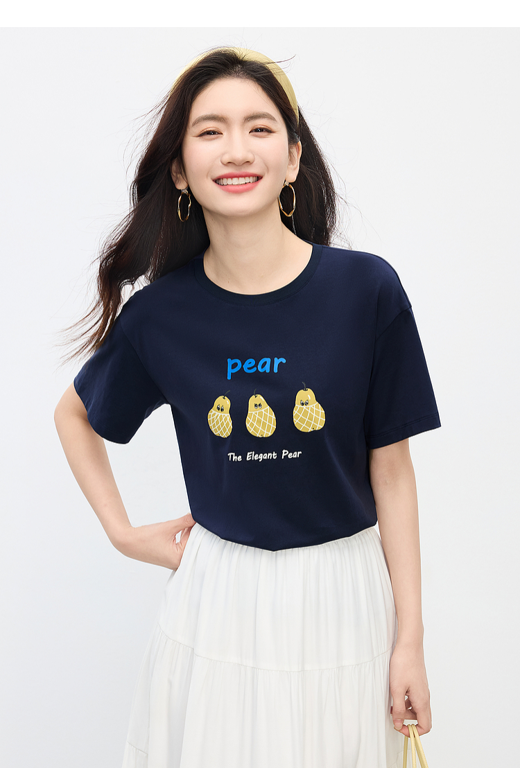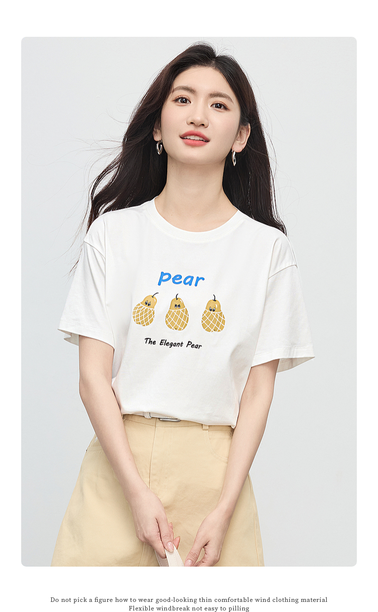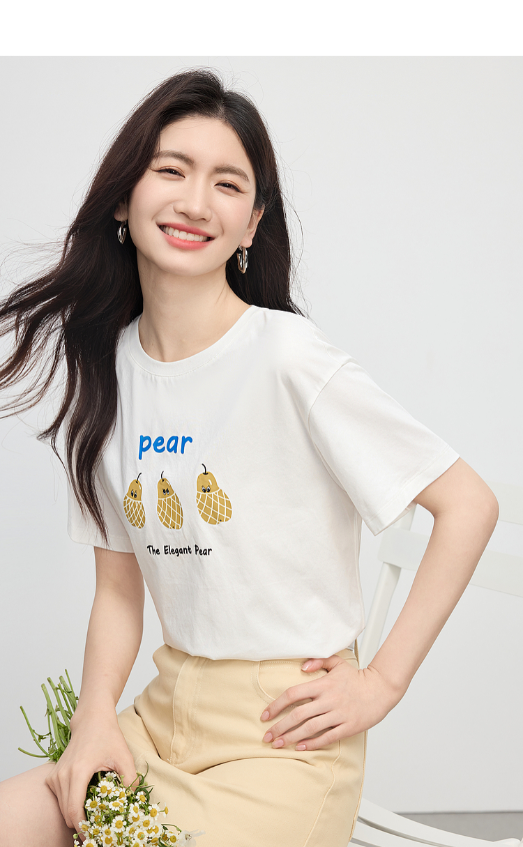 【专属特价】熙世界趣味减龄雪梨印花T恤女短袖2025夏季新款休闲圆领正肩上衣