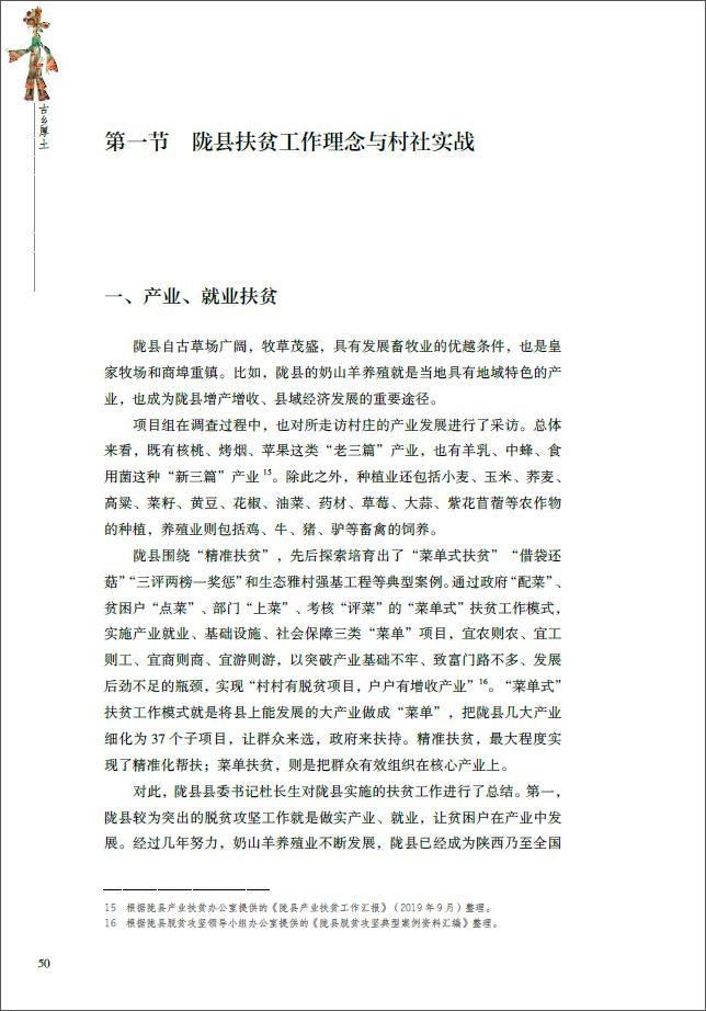21世纪是中国农耕文明几千年来前所未有的转型时代,也是中华民族复兴的时代。农民人口在这个新的100年中会逐渐减少,村庄也将不断蜕变为常见于城市和城镇的生活社区。书稿就是以陇县为驻点,自2018年8月起,陇县驻点调研创作项目组一行5人6次到陇县做调研与回访调查,走访了20多个村庄,深度采访了20多个乡村第一书记、村委会主任和村干部,也采访了陇县县委书记,并一同走访调研了乡村扶贫工作中的典型个案。