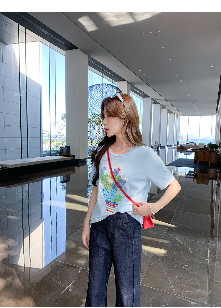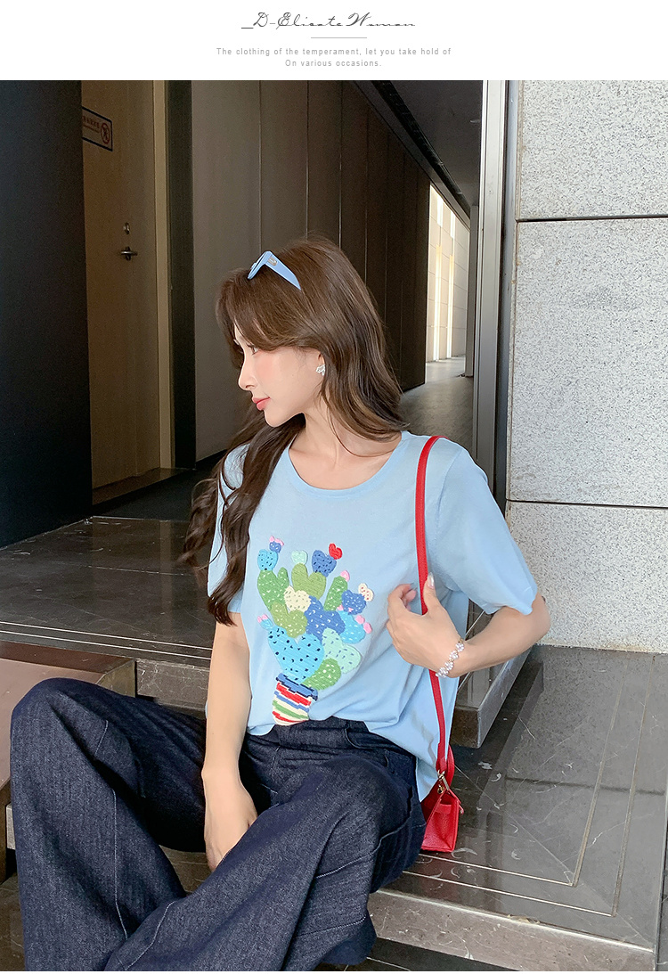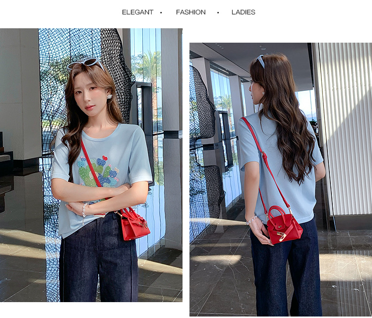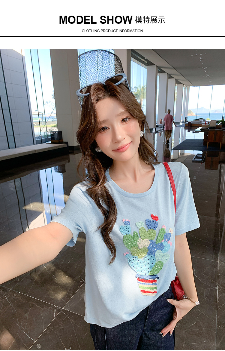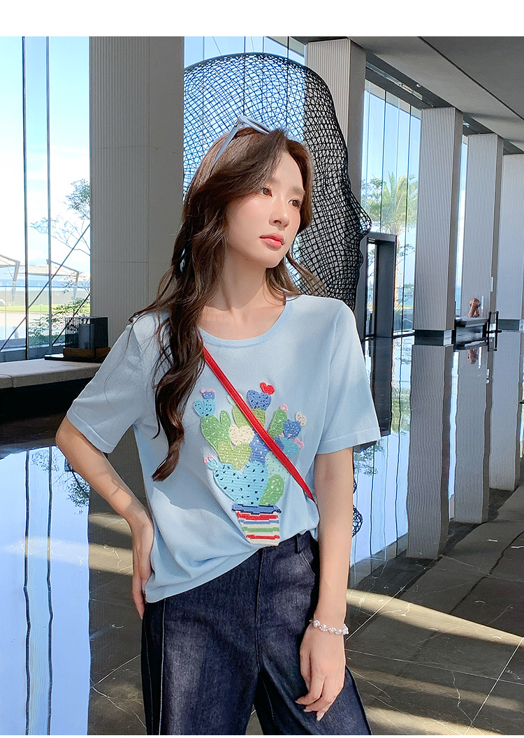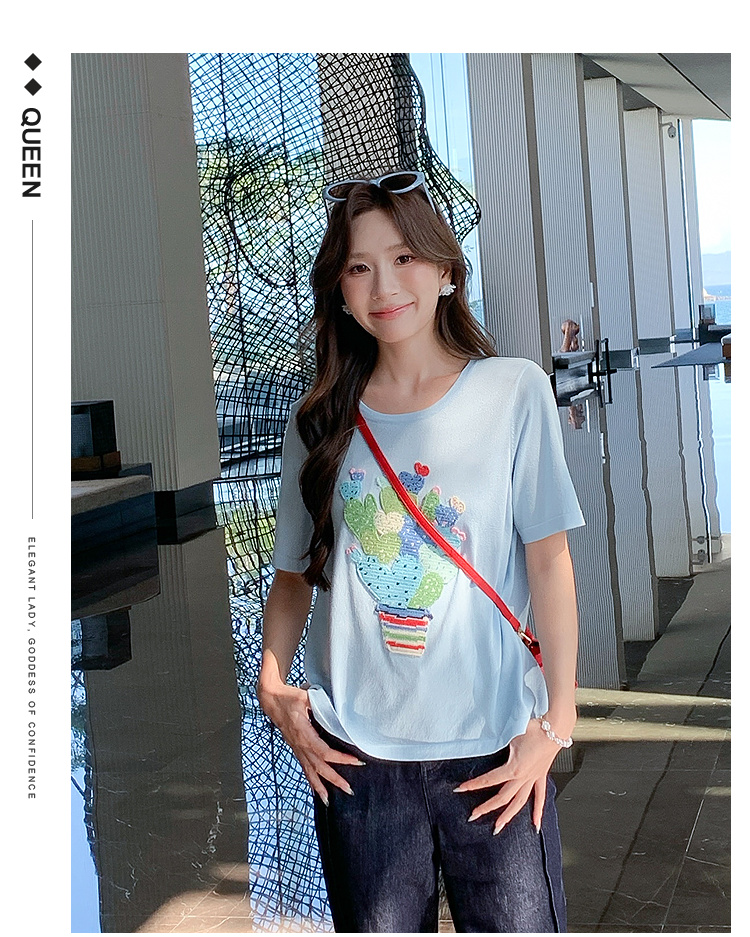 奢姿大码女装2025夏季气质圆领衬衫胖妹妹时尚图案装饰毛织上衣9552690503