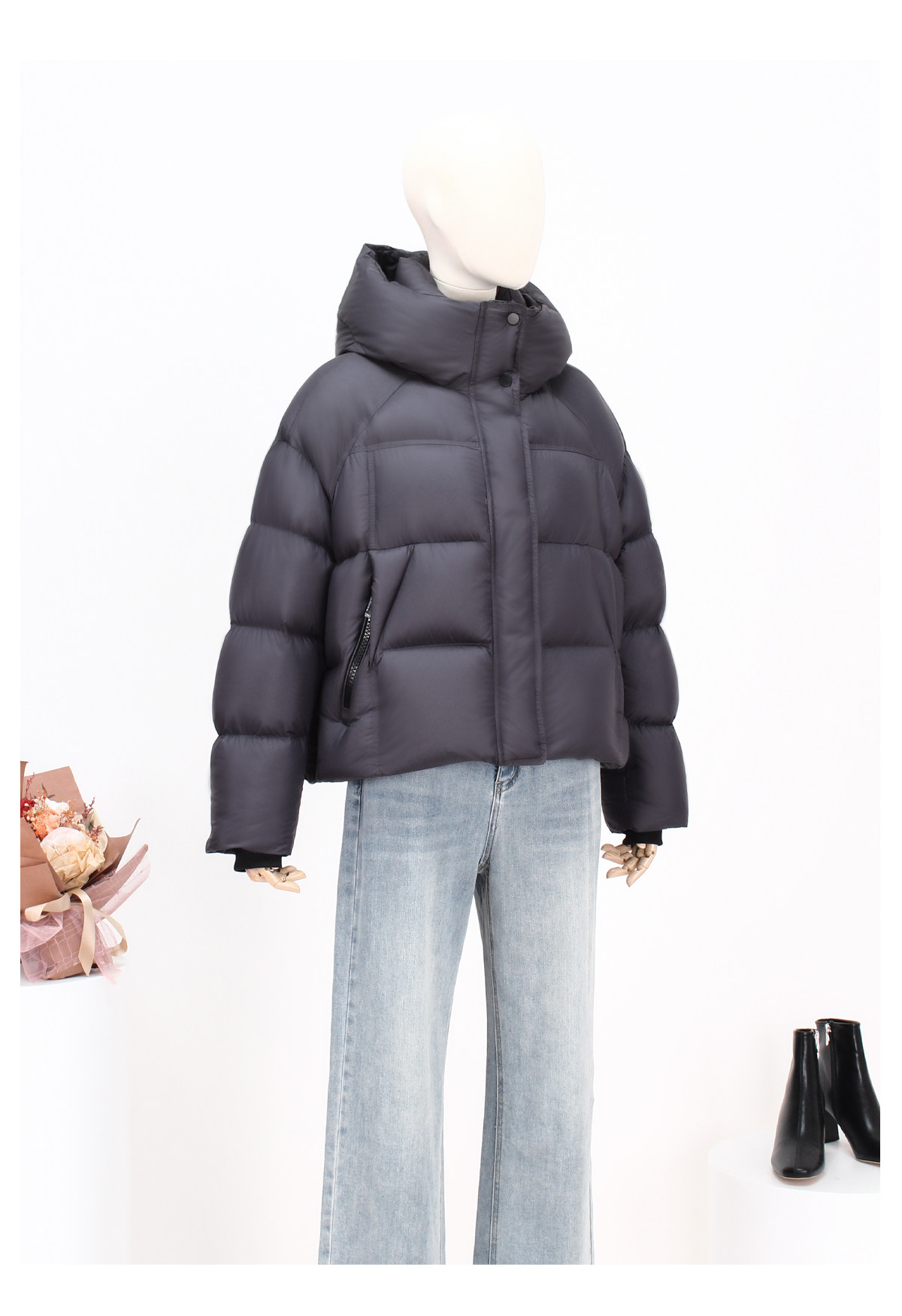 FOCALS新款时尚休闲泡芙白鸭绒短款羽绒服外套FRW8D072ZN