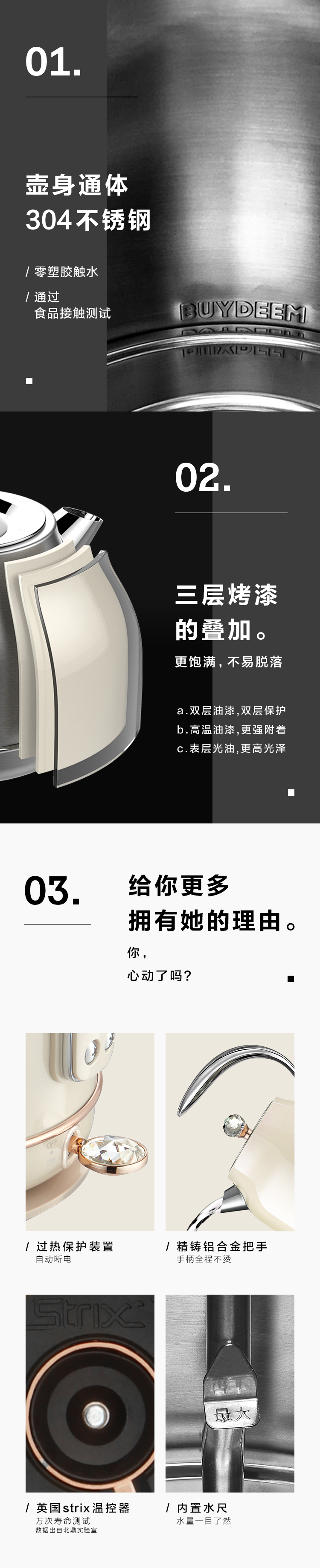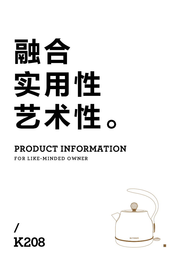 Buydeem/北鼎 K208 进口不锈钢自动断电智能电热水壶礼盒装