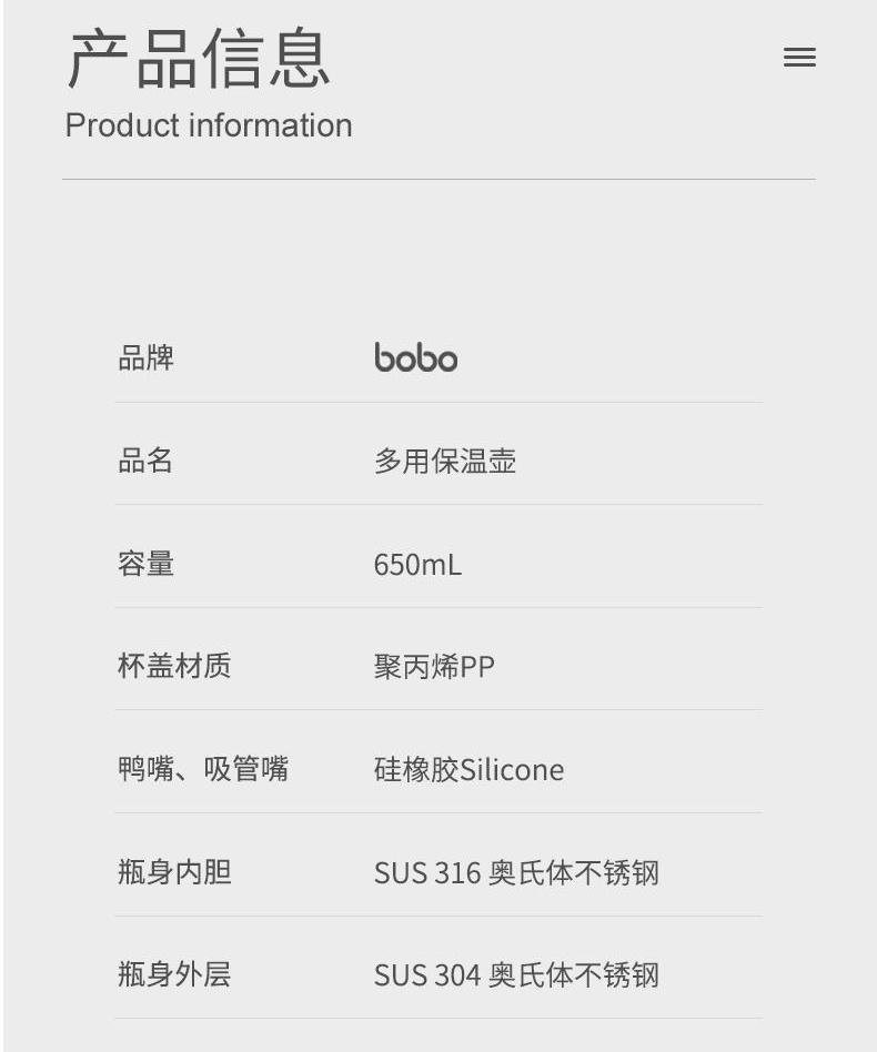 bobo 保温杯吸管杯 一杯两盖 650ml