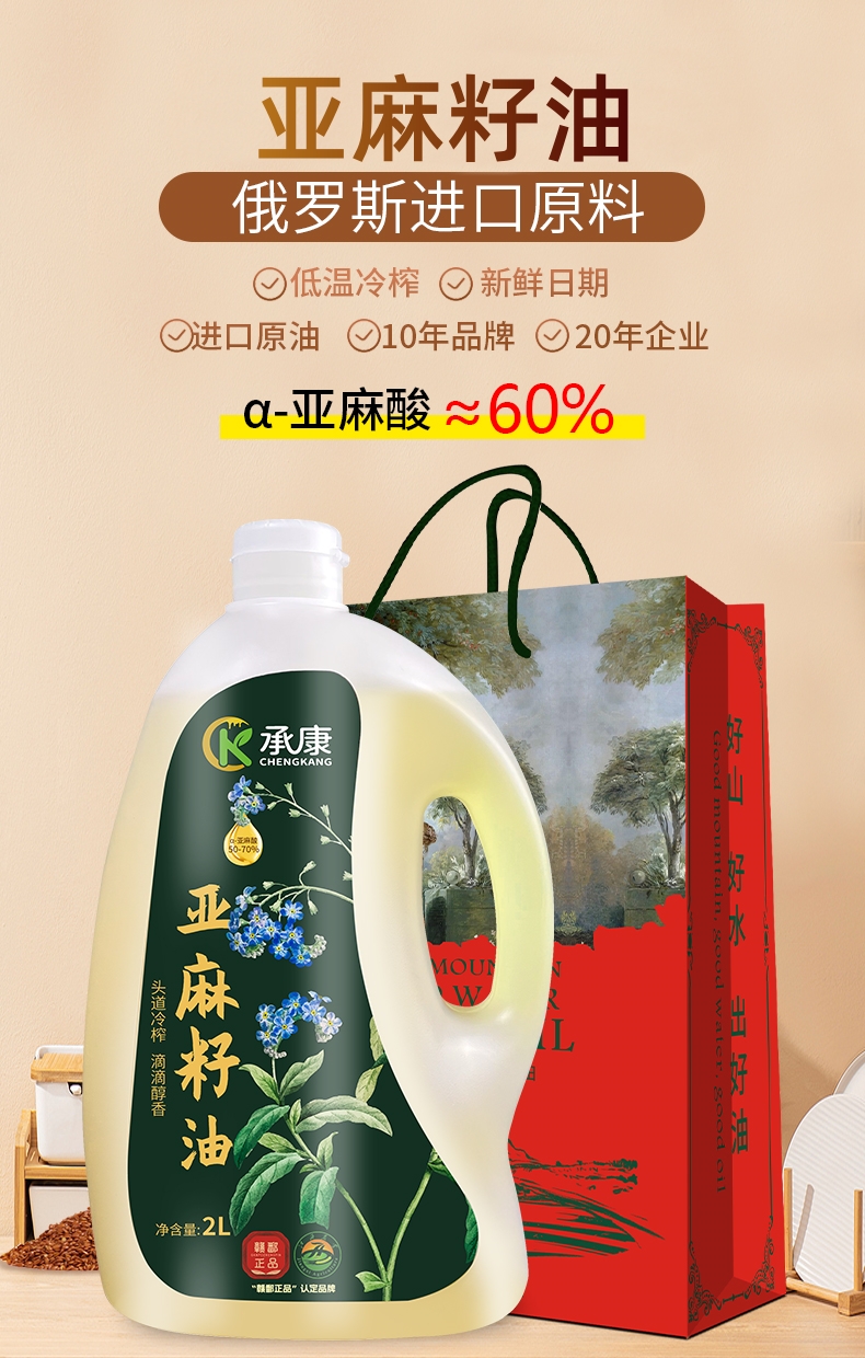 【承康 纯亚麻籽油】营养又健康 俄罗斯进口原油 一级亚麻籽油2L 高亚麻酸 浓郁的亚麻籽油 油质清透 饱满口感