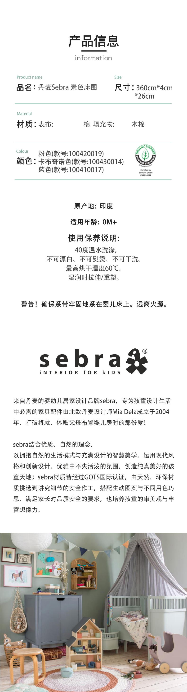 丹麦 Sebra 床围趣味图案亲肤棉品婴儿床配件360cm*4cm*26cm