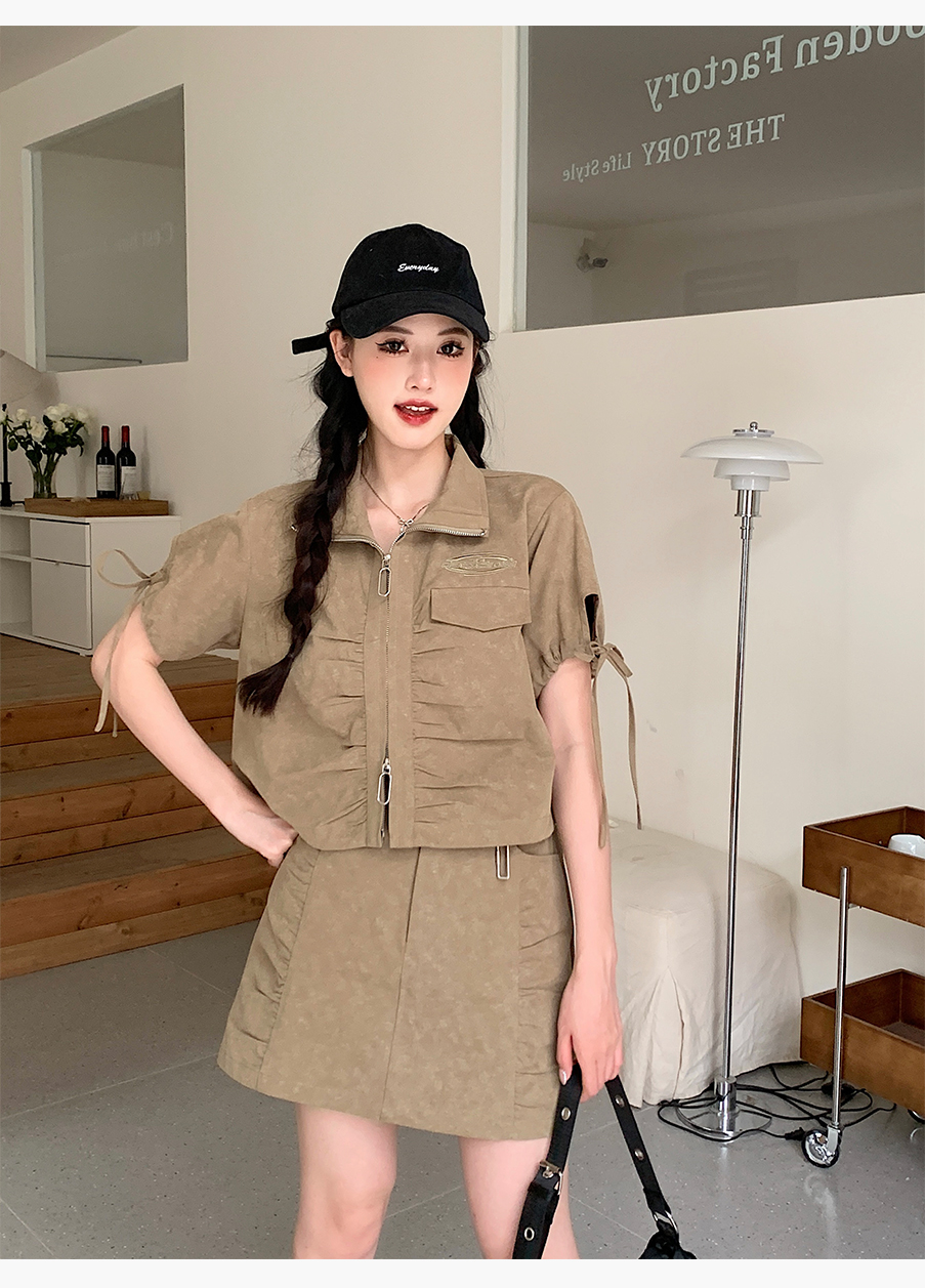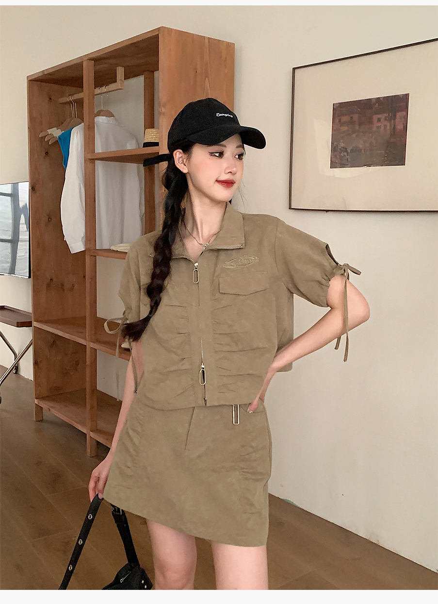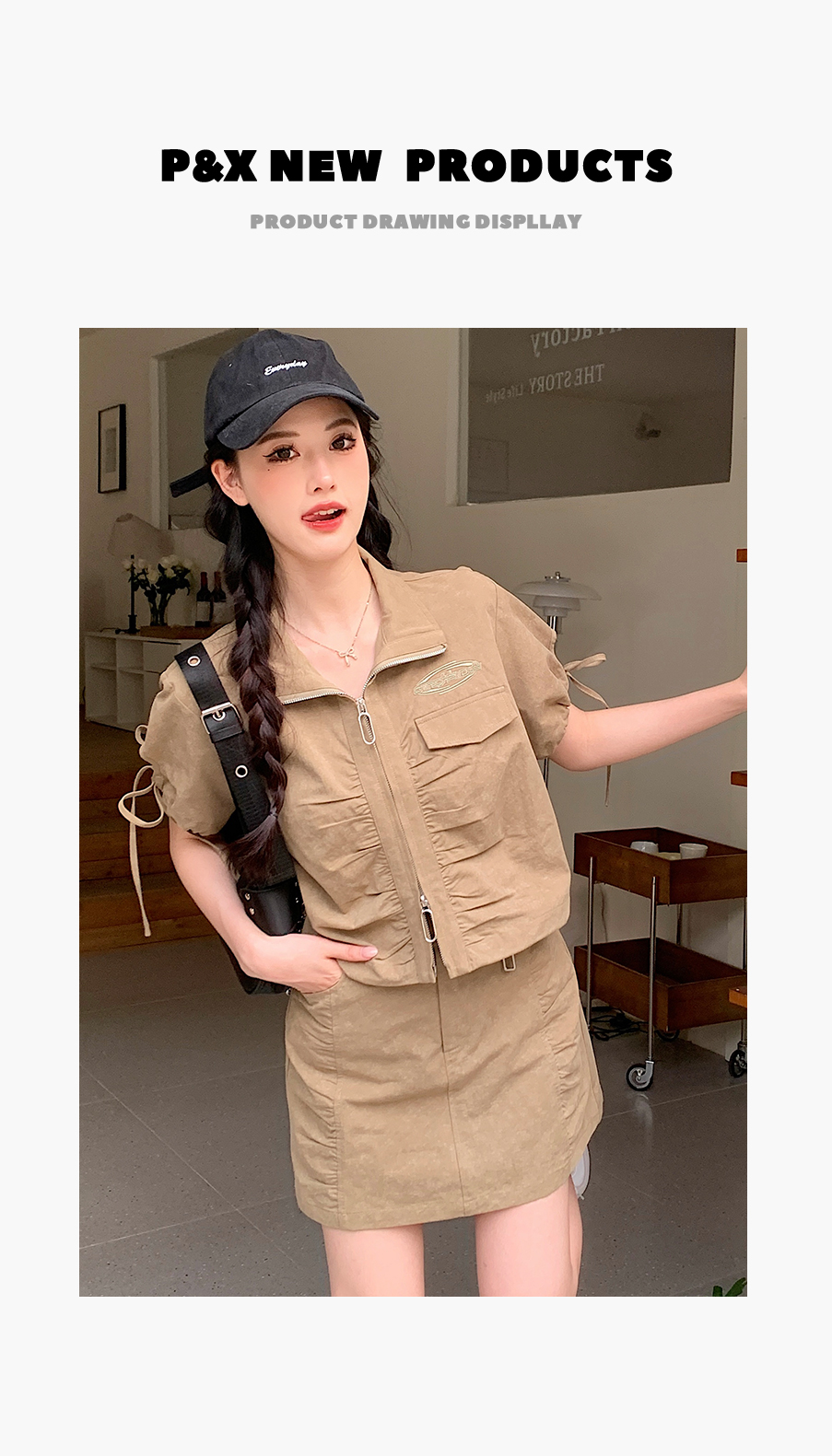P&X设计师女装夏季短袖小个子套装短裙824214268 军绿