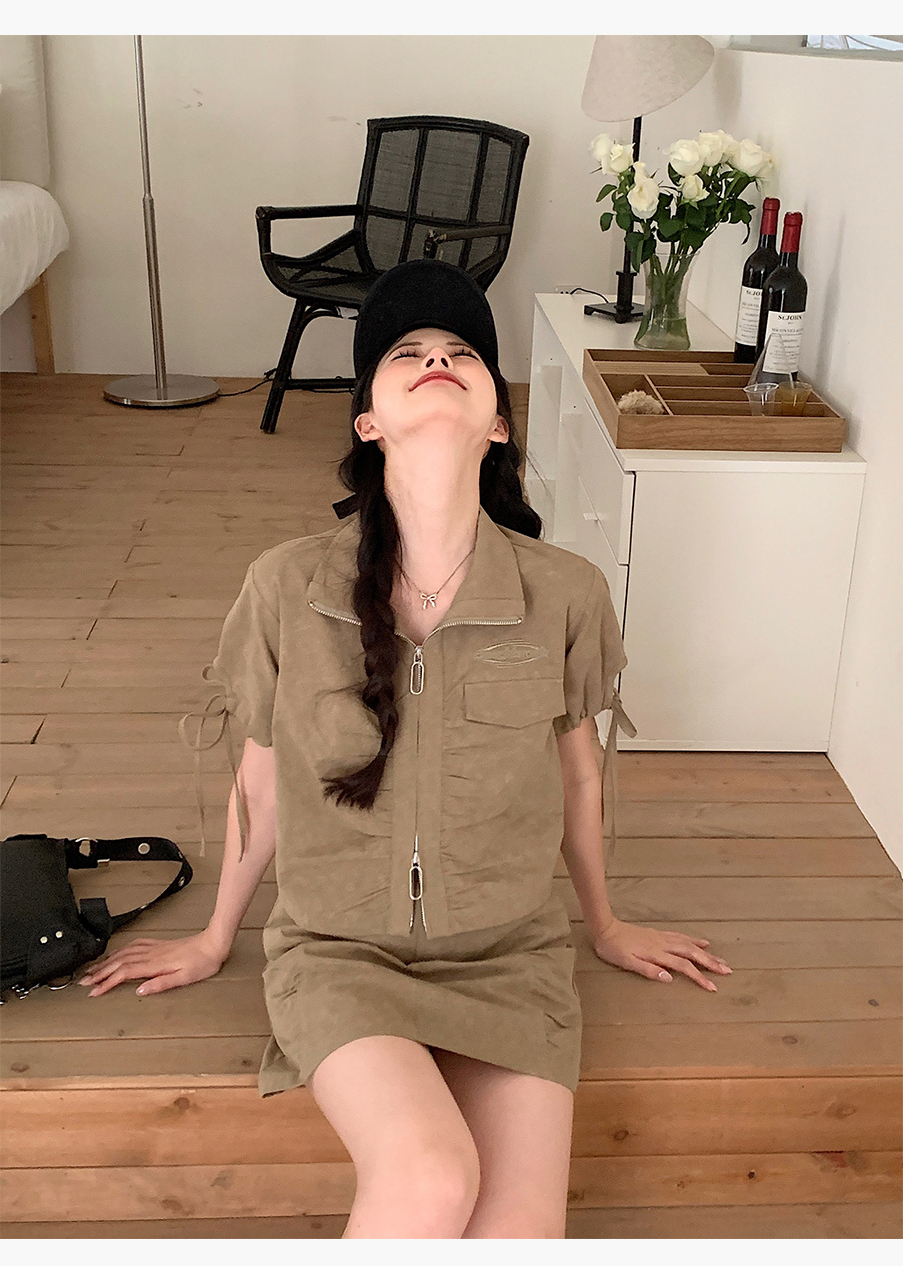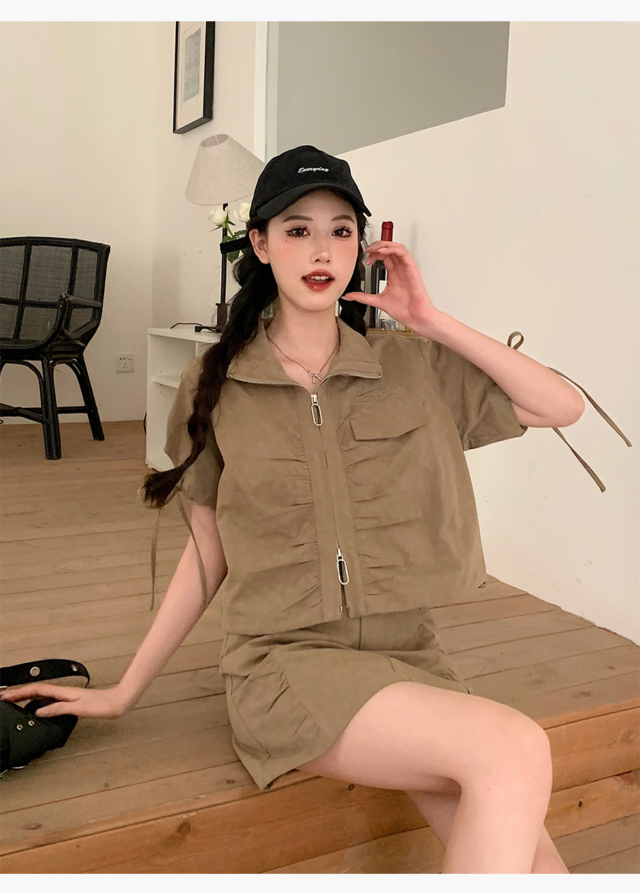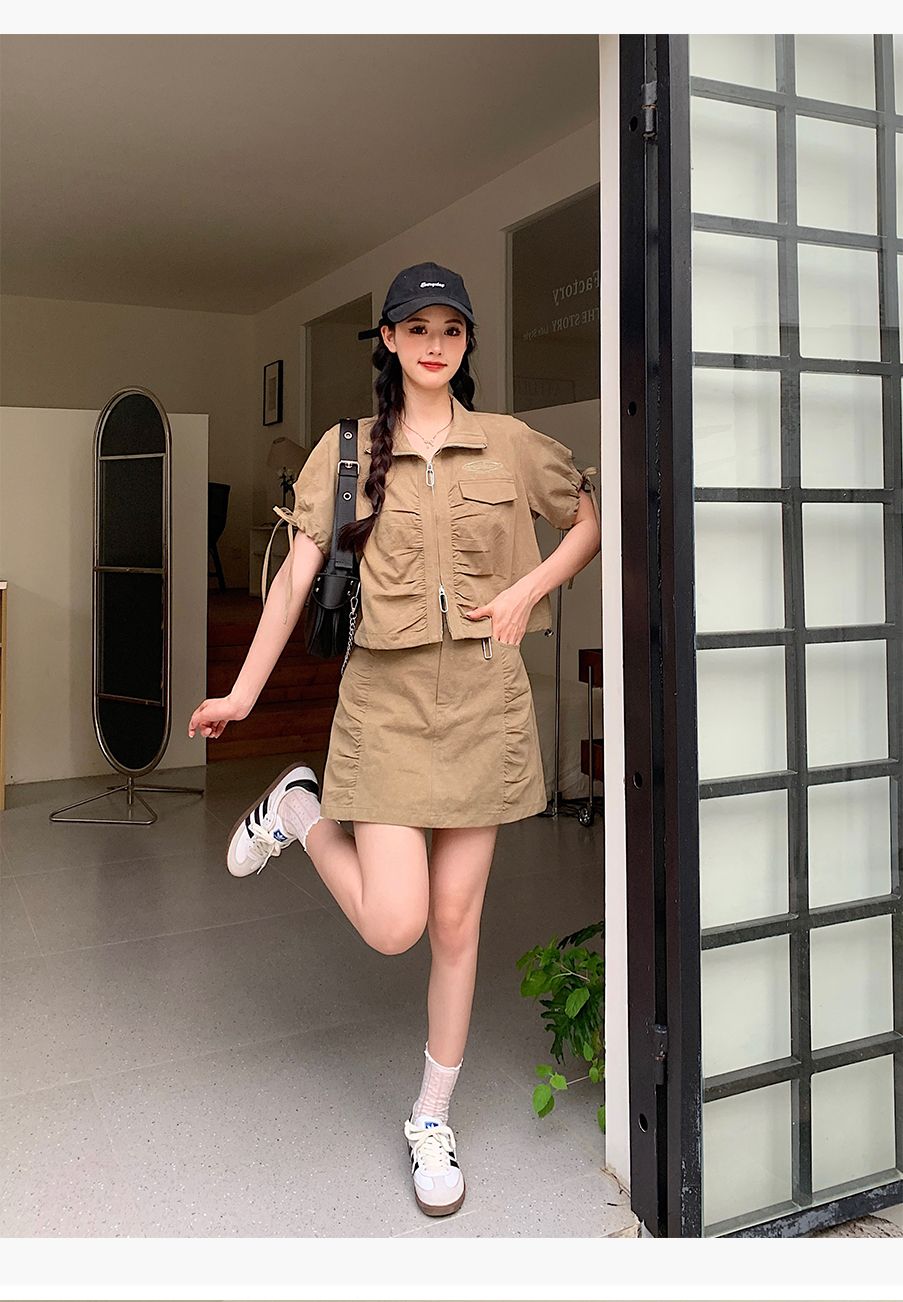 P&X设计师女装夏季短袖小个子套装短裙824214268 军绿