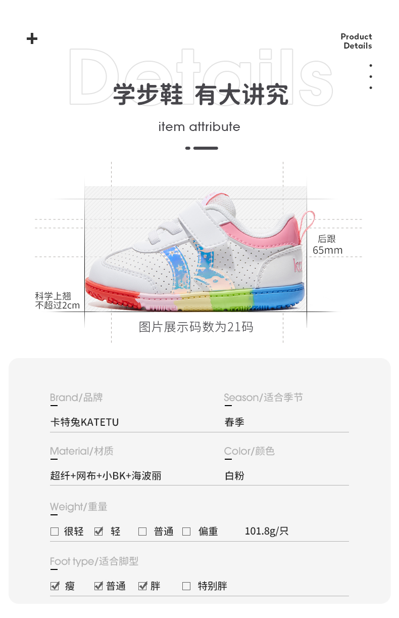 卡特兔婴儿鞋女宝宝学步鞋春季小白鞋婴童鞋软底小童鞋幼儿鞋皮鞋