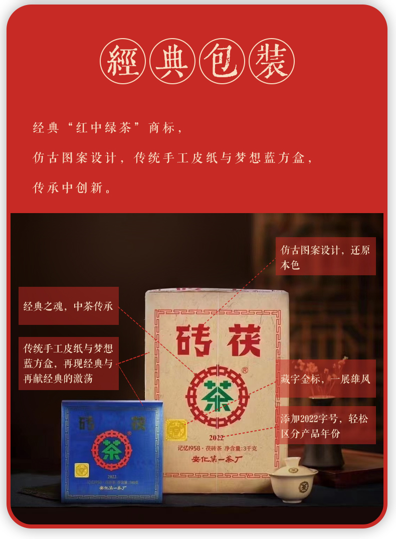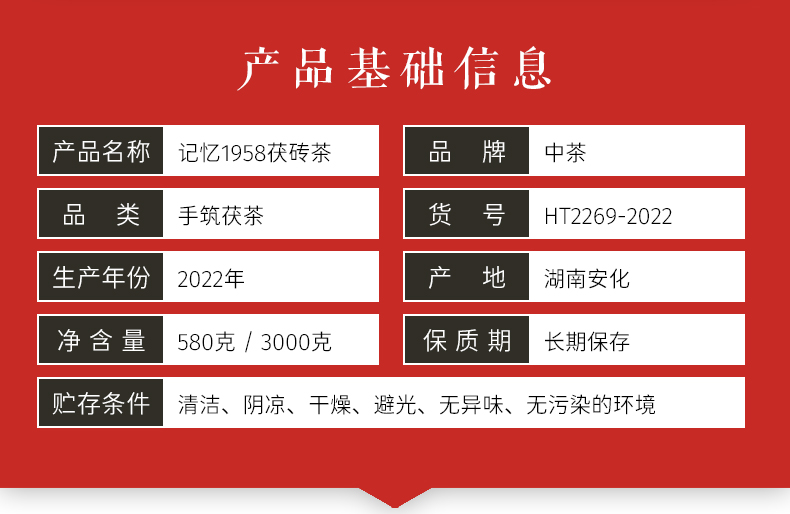 黑茶丨中茶 2022年 中茶记忆1958 580g