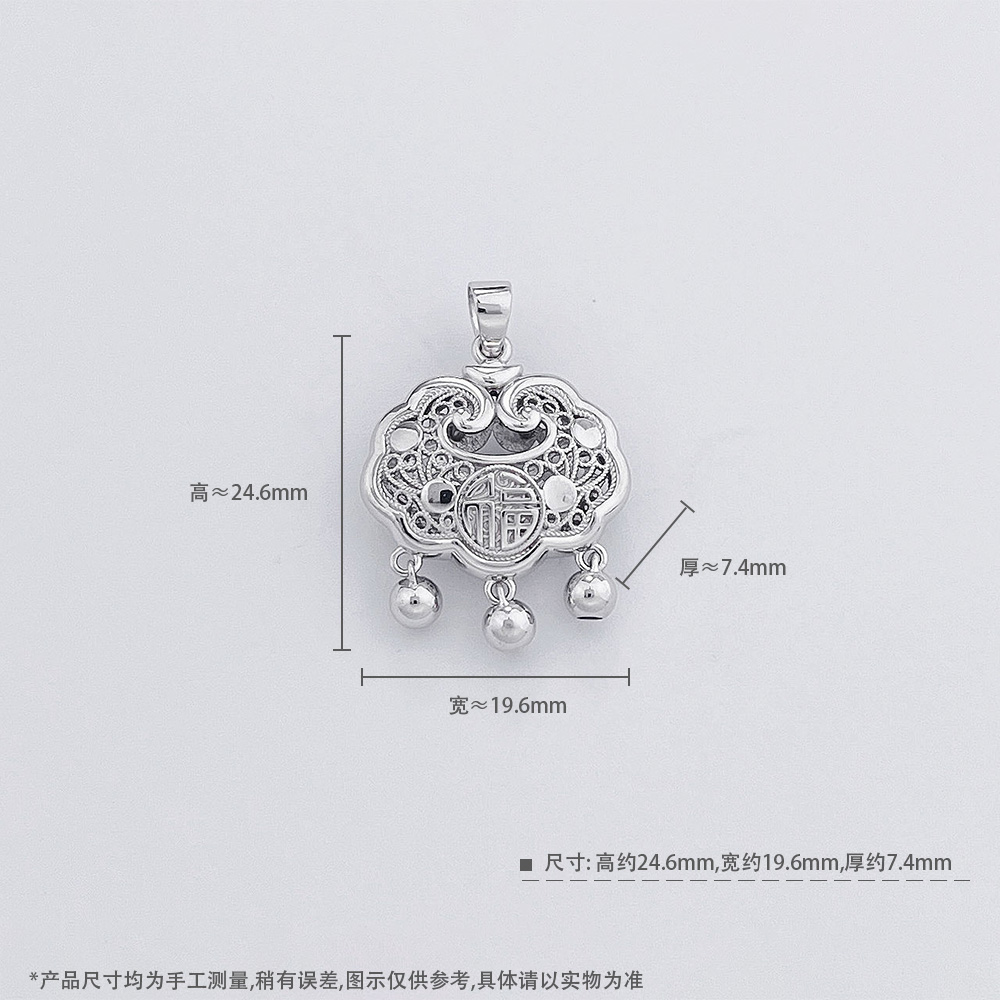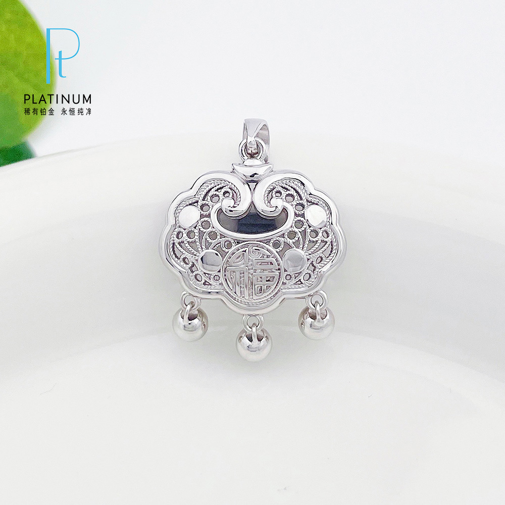 【限时8.8折】【线上铂金馆】PT950 【国际铂金协会】铂金双面镂空福字铃铛如意福字锁包吊坠网红锁包吊坠(BDZ00146)预售产品下单后不退款不退货不换货不补差价)