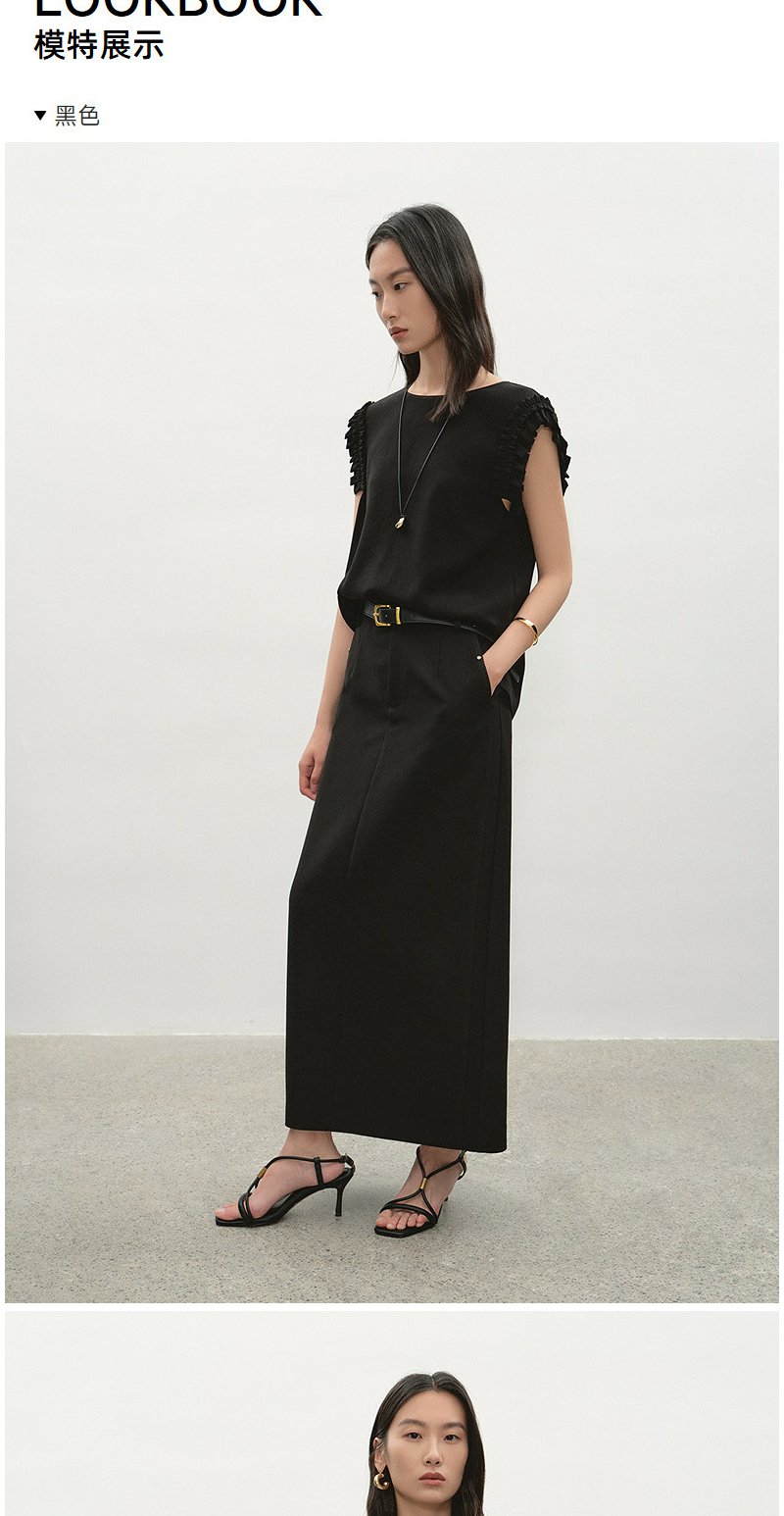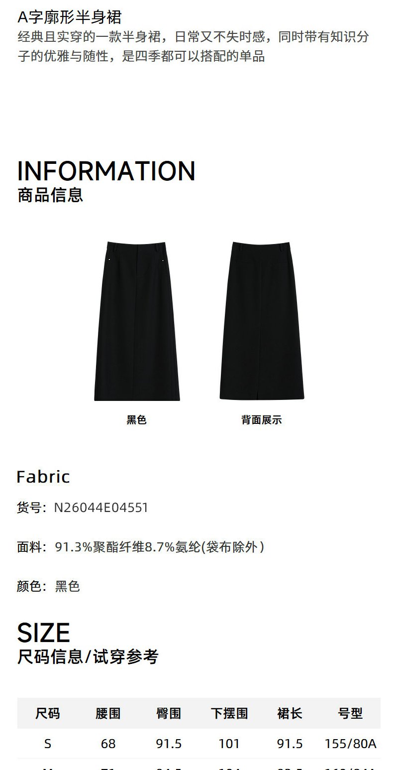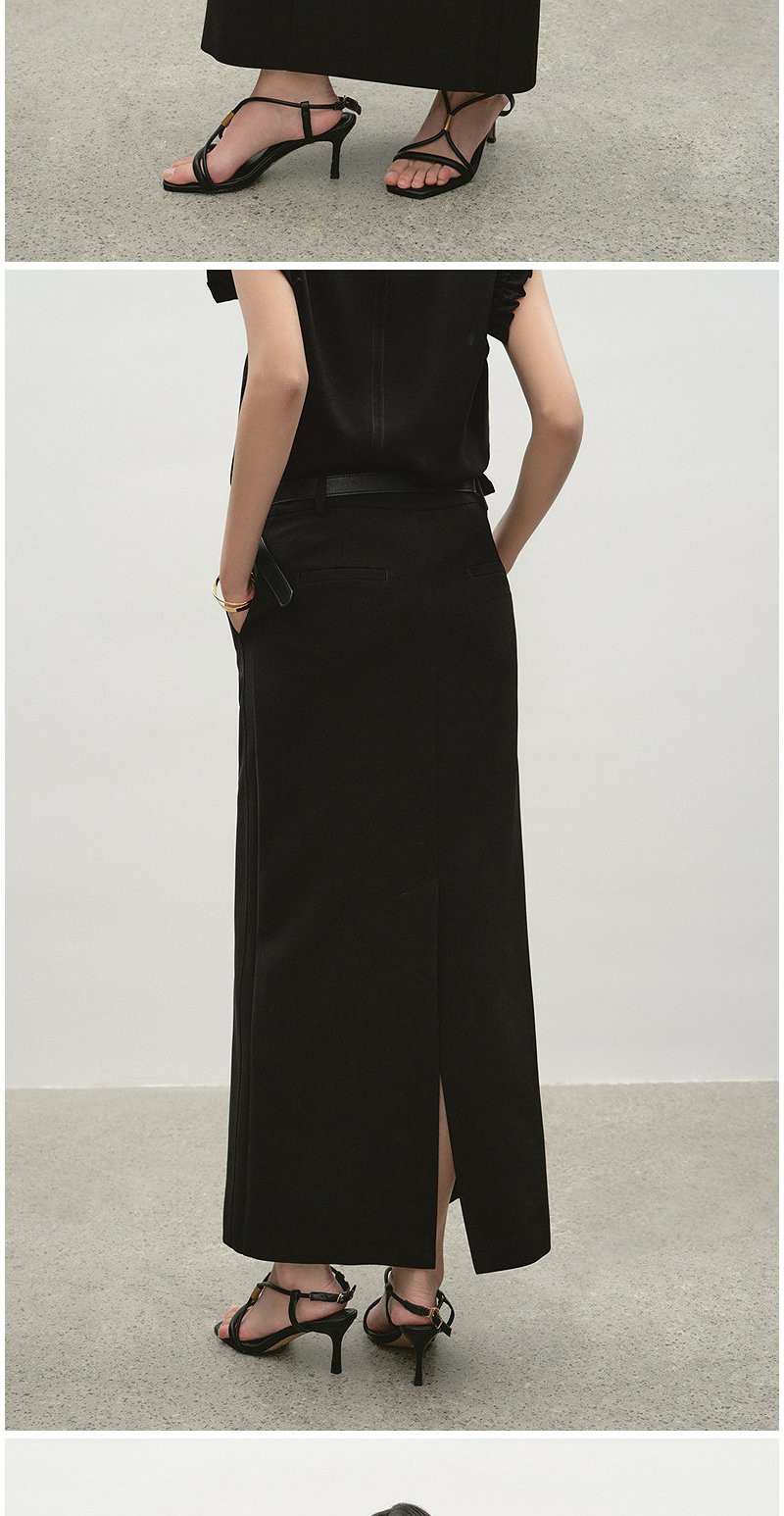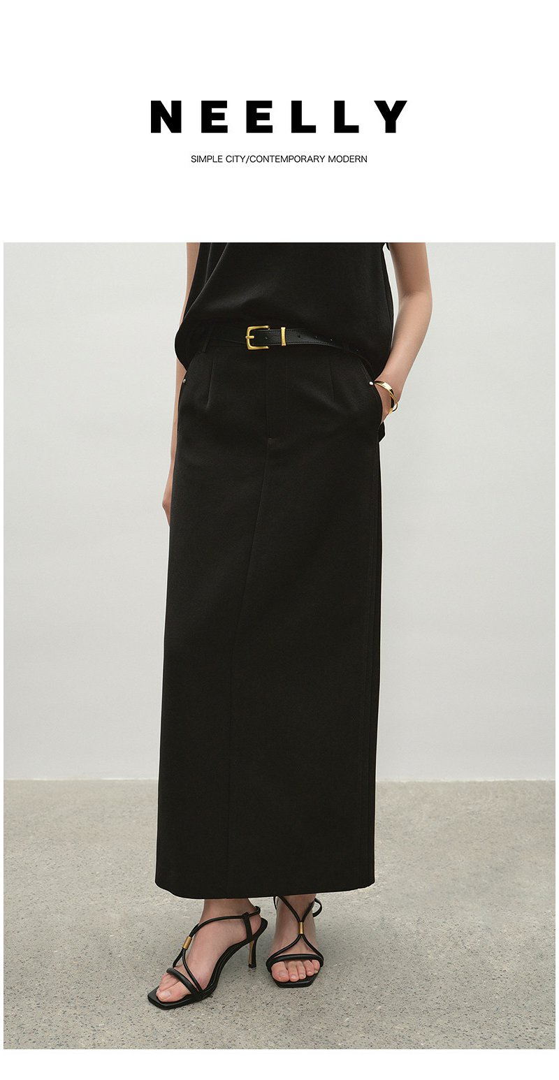 NEELLY纳俪商场同款夏新款简约廓形半身裙女通勤后开叉直筒A字裙N26044E04551