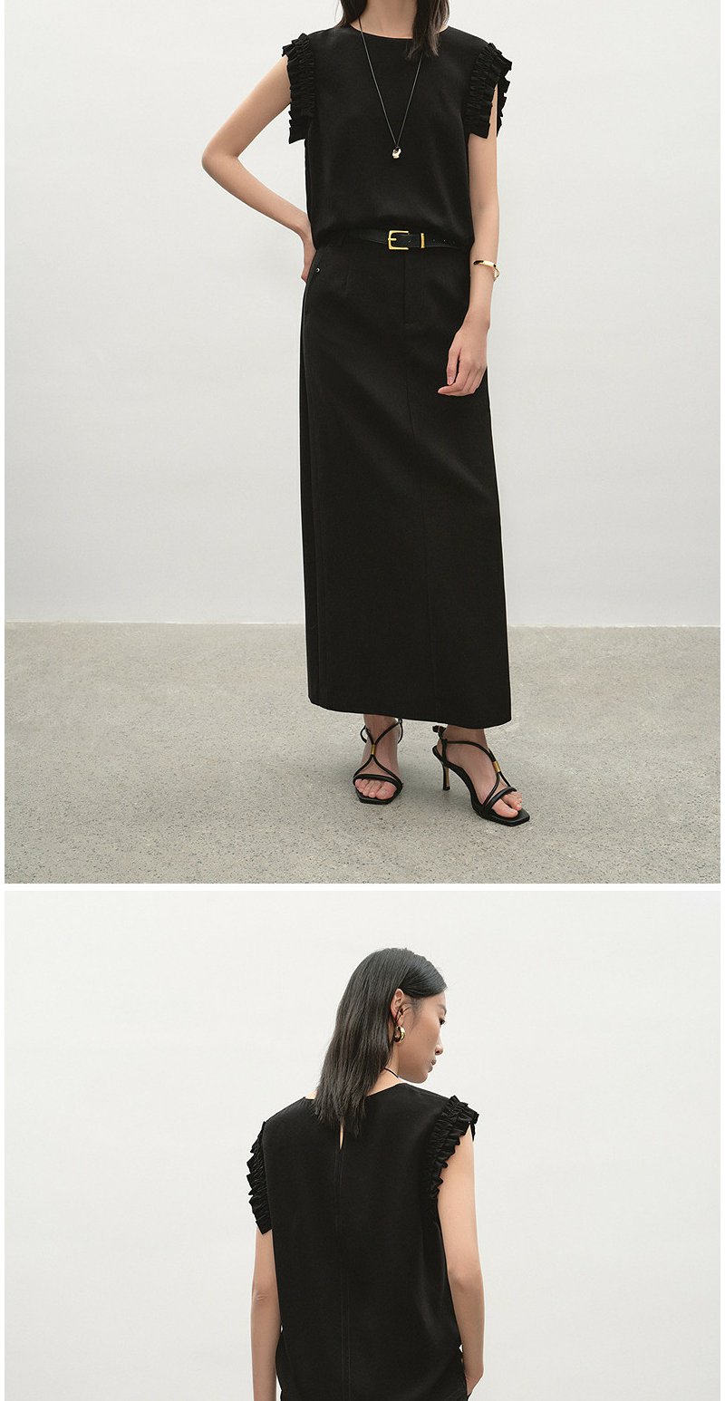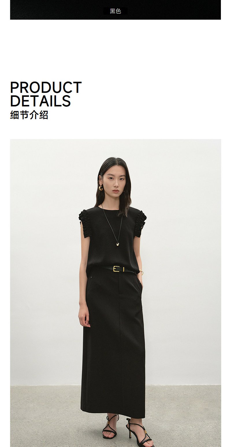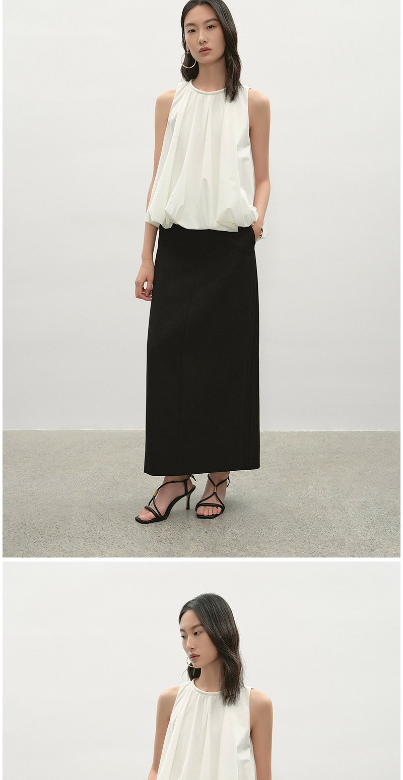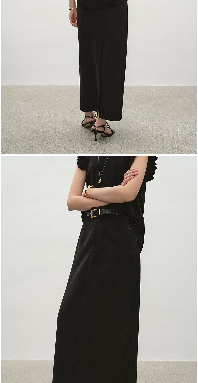 NEELLY纳俪商场同款夏新款简约廓形半身裙女通勤后开叉直筒A字裙N26044E04551