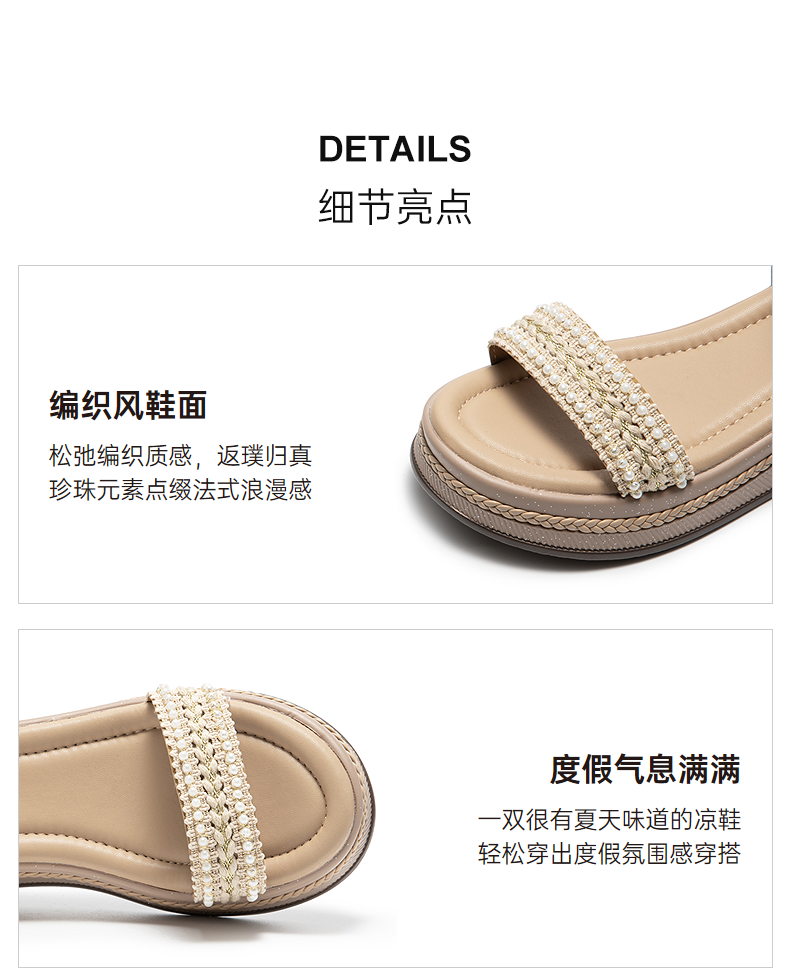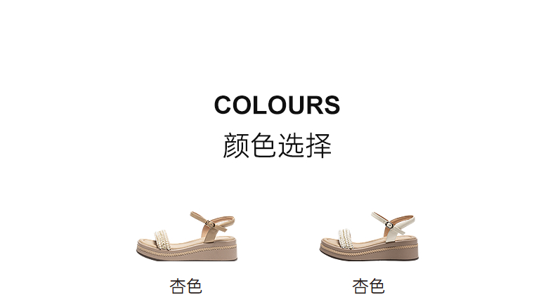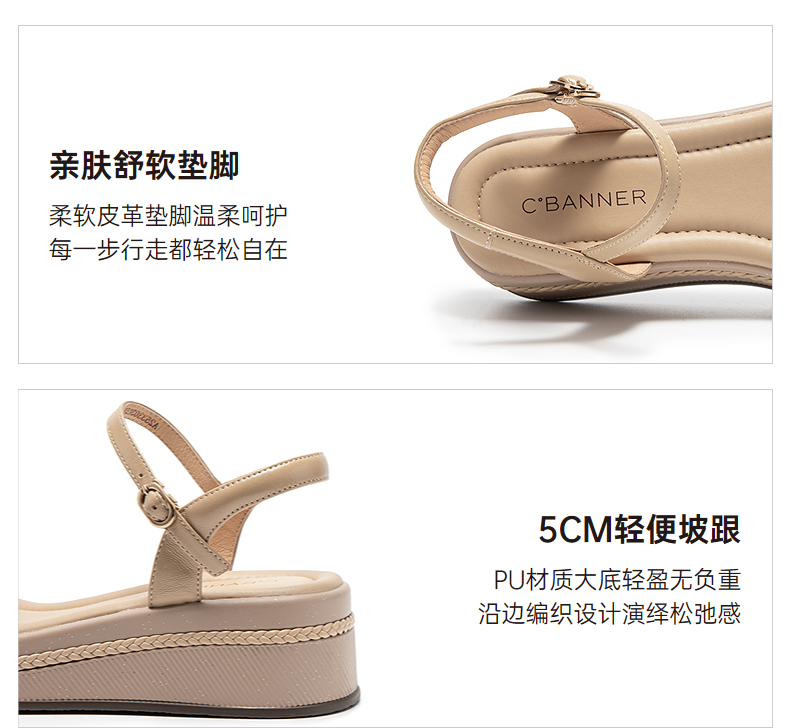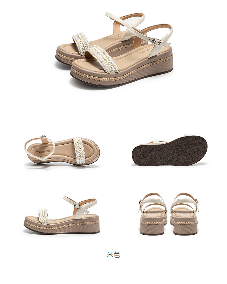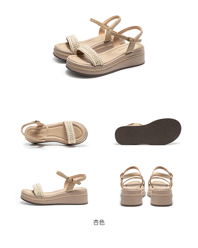 千百度厚底一字带休闲凉鞋女羊皮增高配裙子露趾凉鞋A25330305