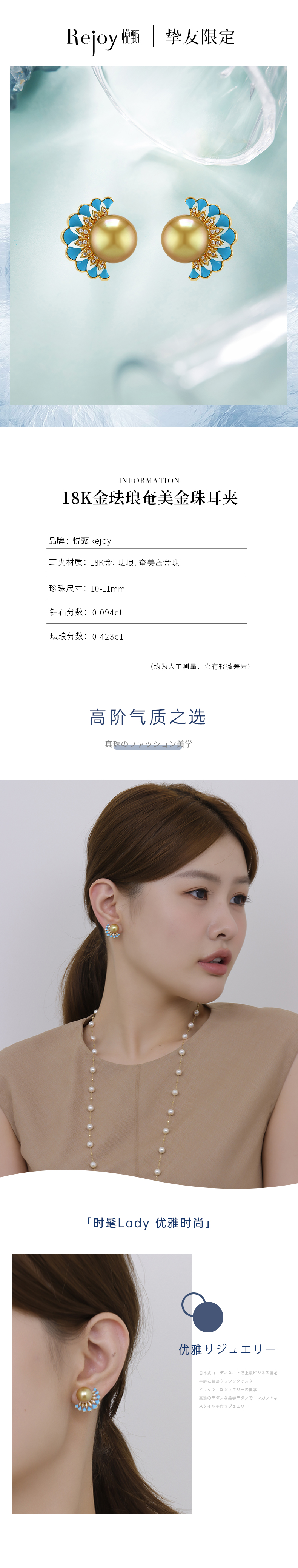 【挚友限定】高奢款-18K金珐琅奄美金珠耳夹 10-11mm