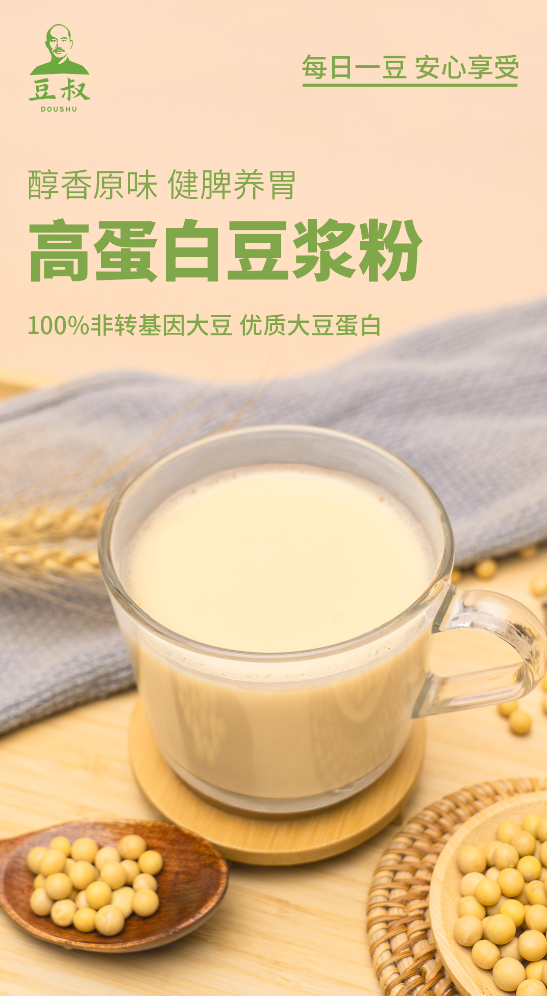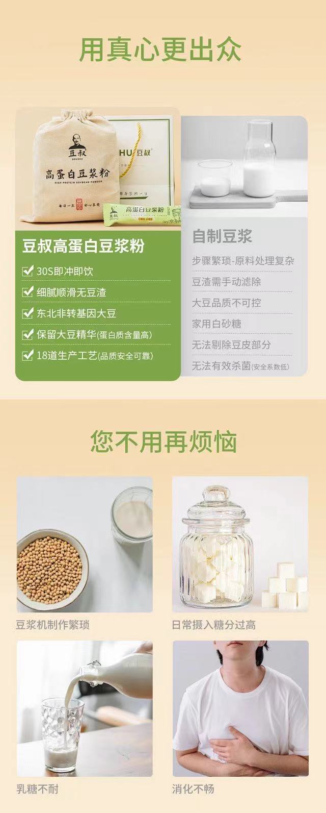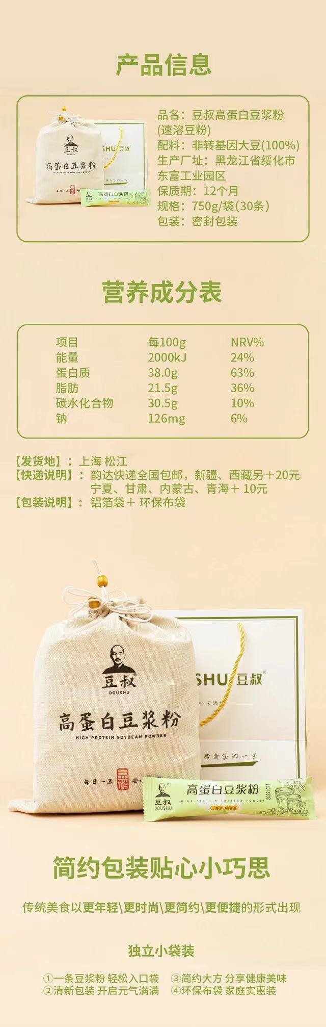 豆叔.高蛋白原味豆浆粉25g*30条—100%非转基因大豆 优质蛋白 醇香原味 健脾养胃!